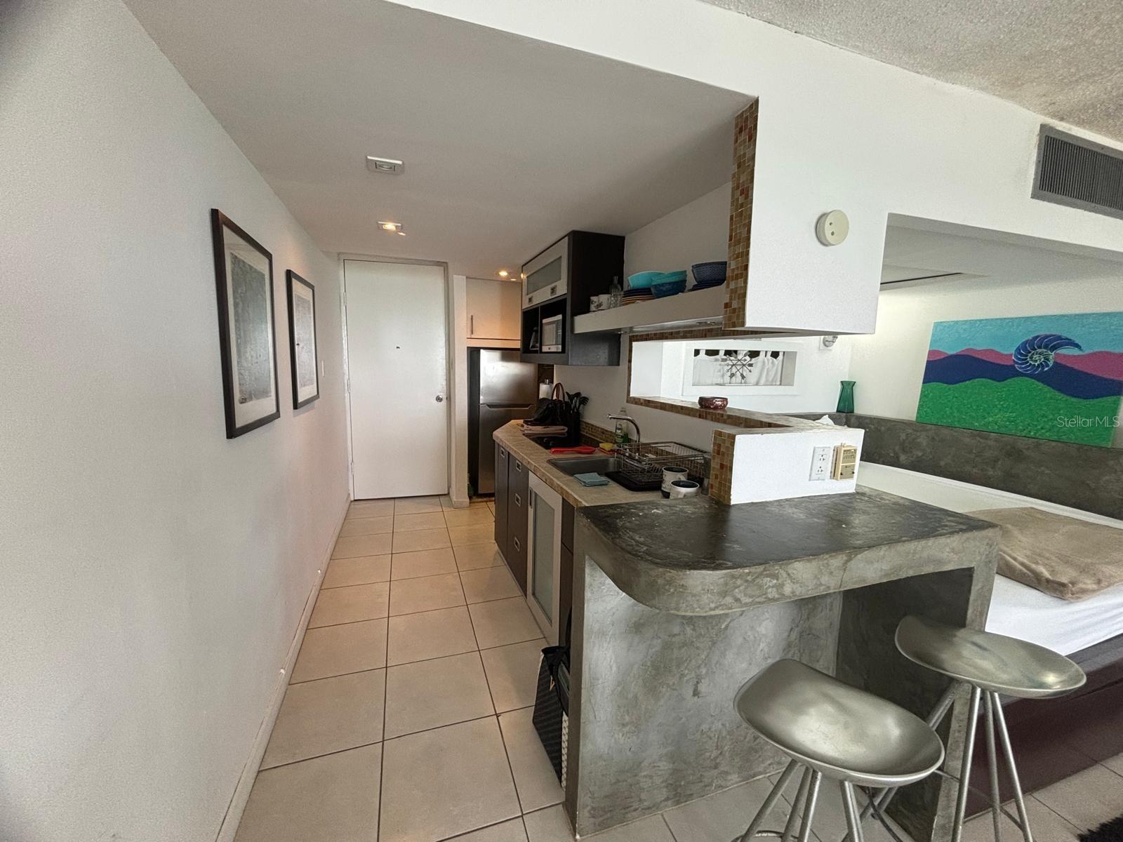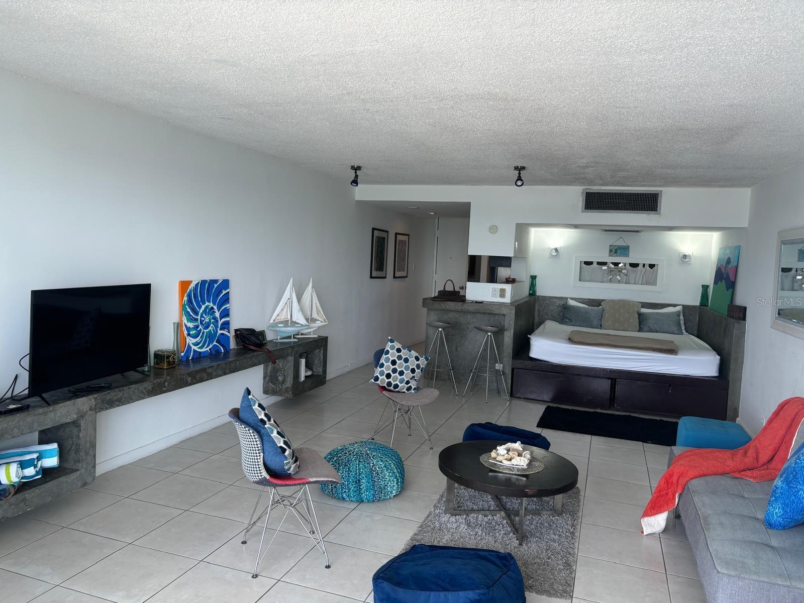APARTMENT WITH OCEAN VIEW Short- term rentals accepted This unique studio is located next to the iconic Hotel EL Conquistador Resort. Has access to the hotel's facilities, including the Coqui Water Park, ferry ride to famous Palomino Island, by acquiring a private club membership through the hotel. Open space apartment, large kitchen, bathroom, living room, central air conditioner, king size bed, balcony with ocean view. It has one parking space. Building has private security 24/7, power generator and private key to access the elevators.