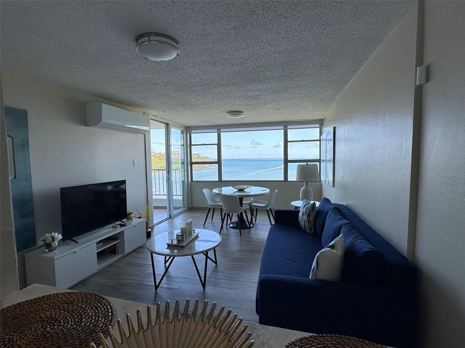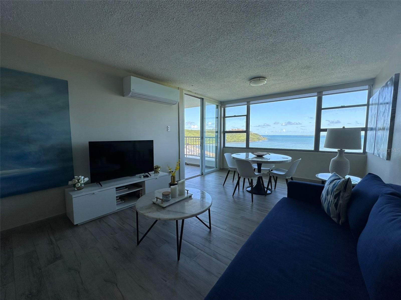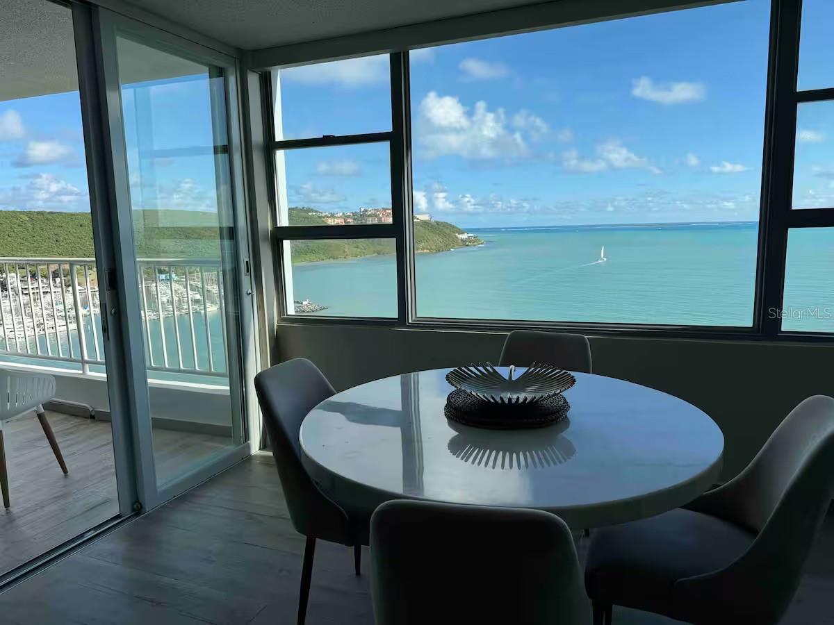 Completely remodeled apartment with a spectacular view of El Conquistador Hotel and the islands of Icacos and Palomino. Conveniently located near restaurants, marinas such as Puerto Chico and Villa Marina, Seven Seas beach, and more. The unit features 1 bedroom, 1 bathroom, living room, dining area, balcony, kitchen, and parking spaces. Includes the following appliances and furnishings: stainless steel stove and refrigerator, queen-size bedroom set, queen-size sofa bed, marble-top dining table, two mini split A/C units with Home Depot warranties and anti-corrosion protection, and a water heater. The complex offers visitor parking, an Olympic-sized pool, regular pool, tennis, pickleball, and basketball courts, a park with gazebos, mailbox areas, an activity room, and a laundry facility. HOA fee is $133.32, or $266.64 for Airbnb rentals. Sale not subject to appraisal.