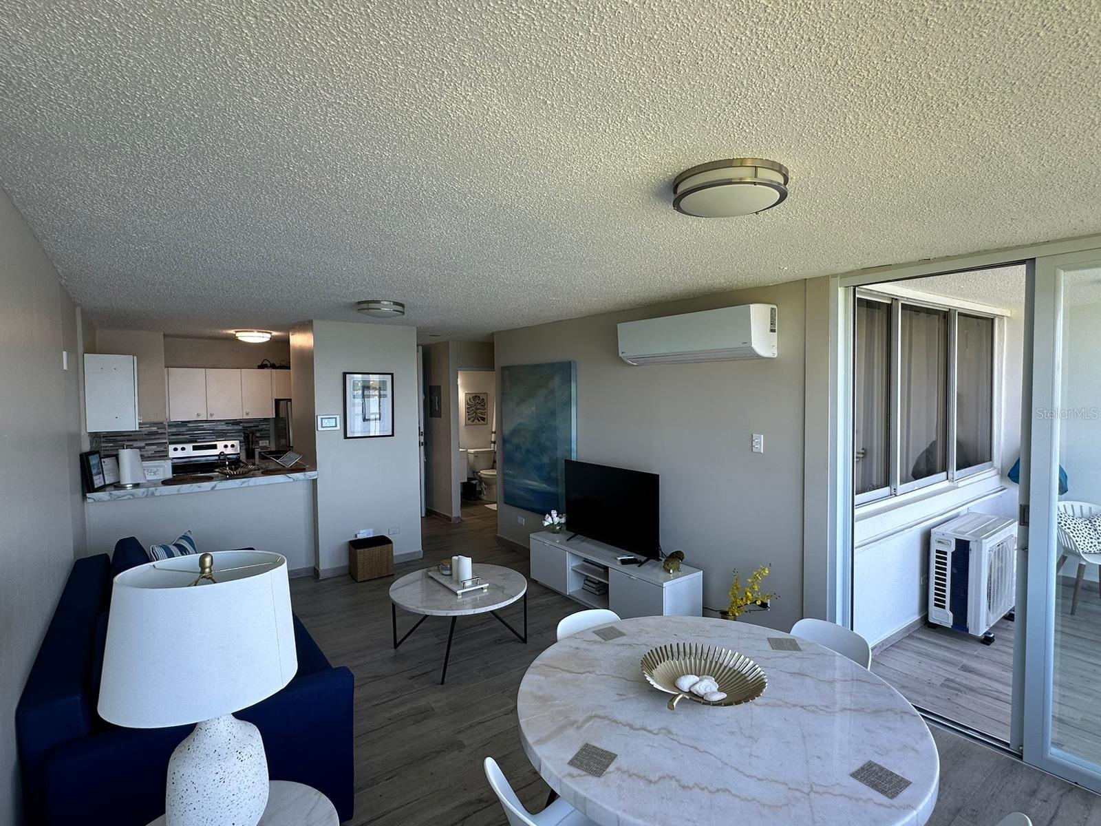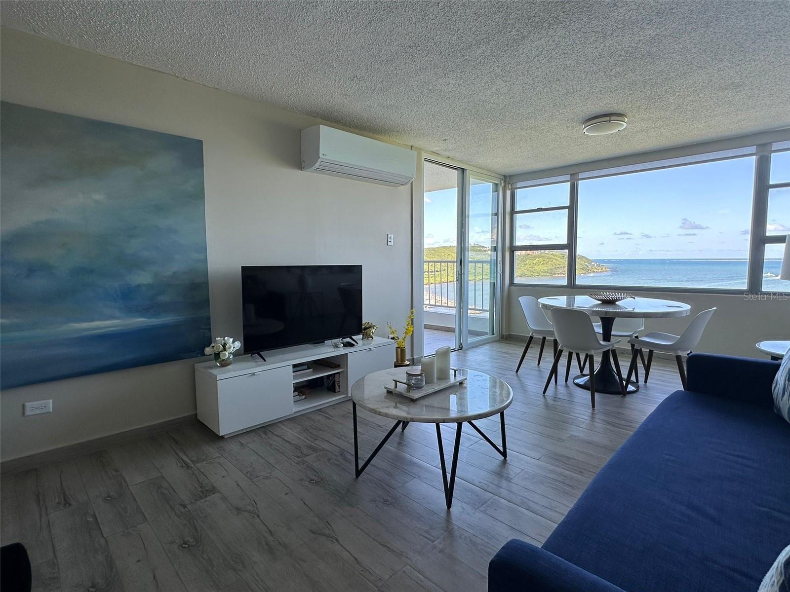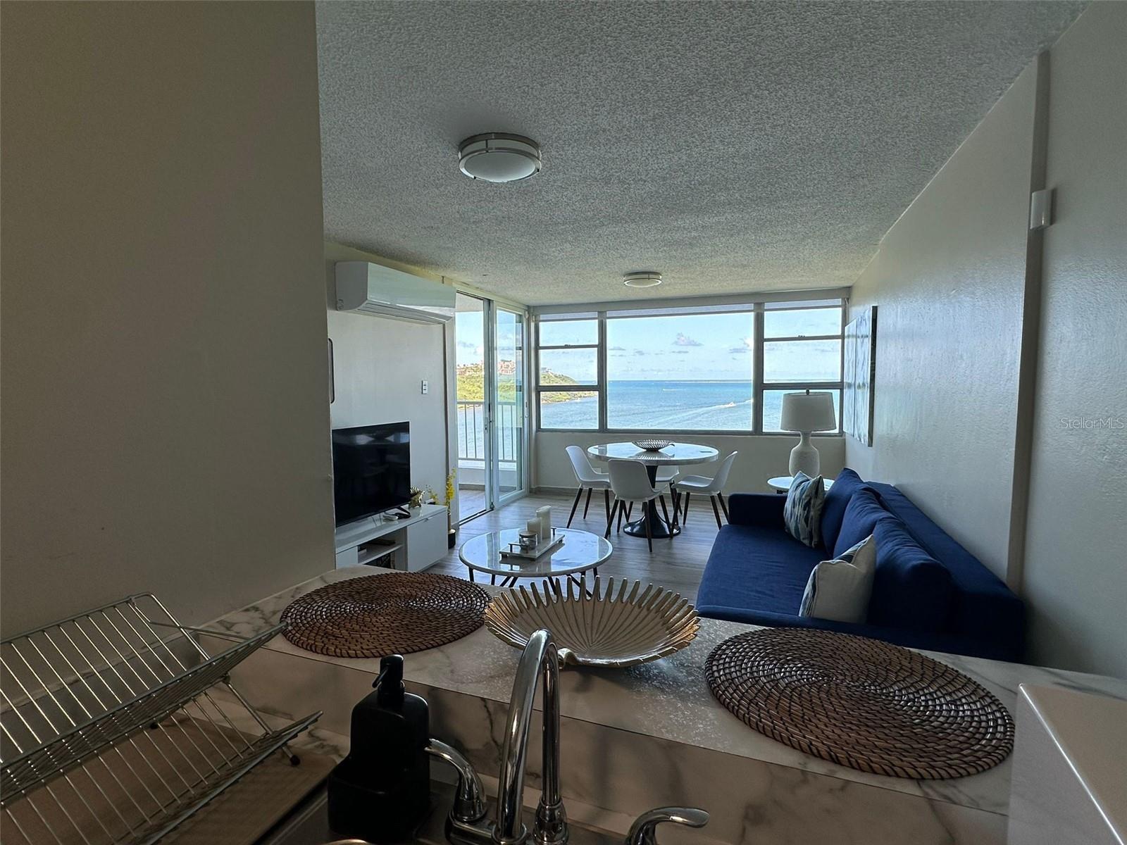 Completely remodeled apartment with a spectacular view of El Conquistador Hotel and the islands of Icacos and Palomino. Conveniently located near restaurants, marinas such as Puerto Chico and Villa Marina, Seven Seas beach, and more. The unit features 1 bedroom, 1 bathroom, living room, dining area, balcony, kitchen, and parking spaces. Includes the following appliances and furnishings: stainless steel stove and refrigerator, queen-size bedroom set, queen-size sofa bed, marble-top dining table, two mini split A/C units with Home Depot warranties and anti-corrosion protection, and a water heater. The complex offers visitor parking, an Olympic-sized pool, regular pool, tennis, pickleball, and basketball courts, a park with gazebos, mailbox areas, an activity room, and a laundry facility. HOA fee is $133.32, or $266.64 for Airbnb rentals. Sale not subject to appraisal.
