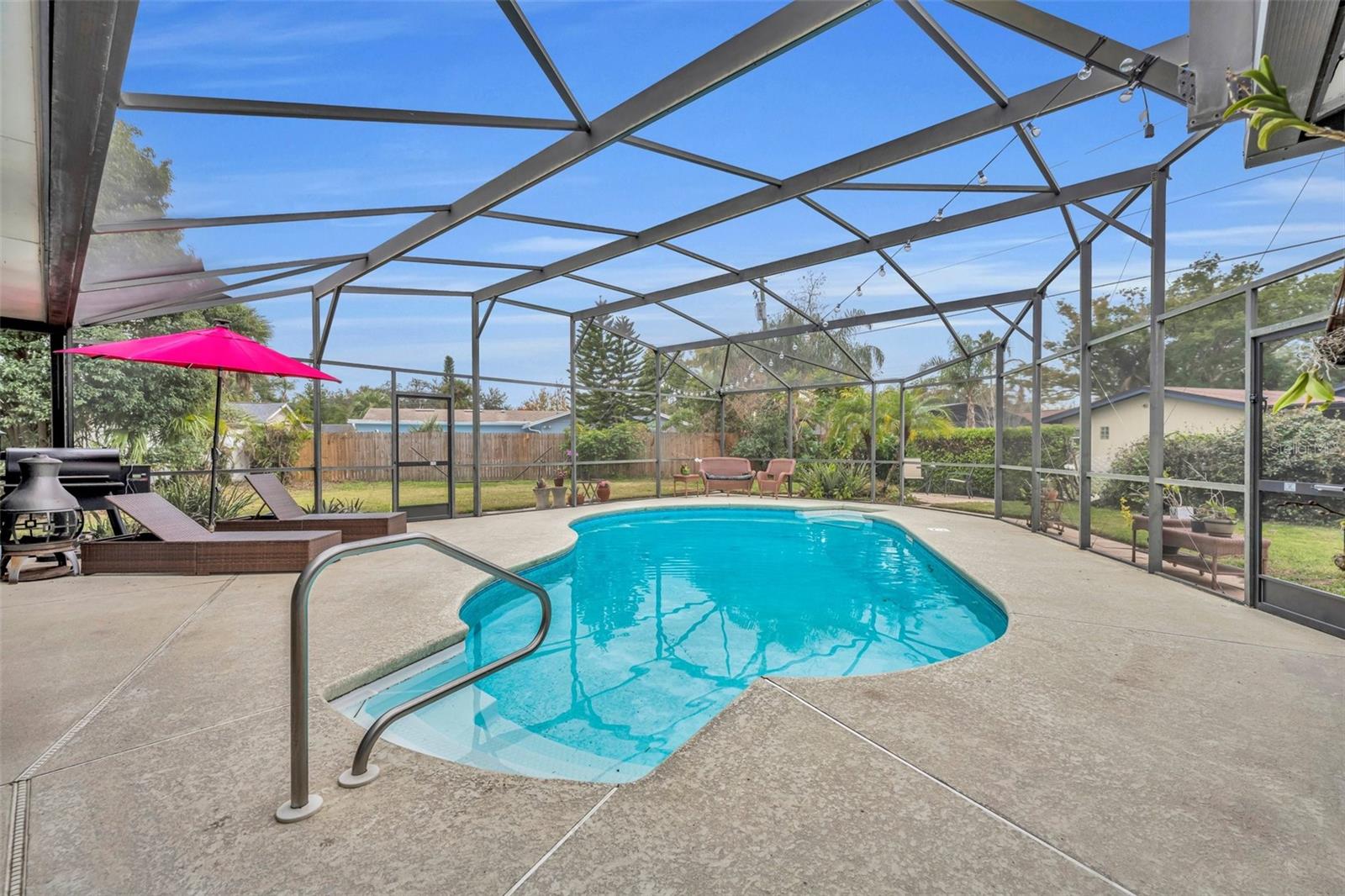 Nestled at the end of a peaceful cul-de-sac, this 4-bedroom, 2-bathroom home sits on a generous 0.30-acre lot and boasts impressive curb appeal. Recently refreshed with new landscaping and a freshly painted exterior, this property welcomes you home with style and comfort. Enjoy a flowing layout perfect for relaxation and entertaining, while the living and dining areas provide ample space for family gatherings. Newly installed plantation shutters in the front living room and beautiful new wood floors throughout creates a beautiful aesthetic. The kitchen, the heart of the home features upgraded appliances making cooking a breeze. A pass-through window seamlessly connects to the spacious patio, perfect for indoor-outdoor living. Retreat to the primary bedroom with its own en-suite bathroom, providing a tranquil escape after a long day. Step outside to a beautifully redone screened enclosure and sparkling pool with a salt filtering system. It’s the ideal spot for weekend barbecues, lounging in the sun, or enjoying an evening swim. In addition to accommodating two vehicles comfortably, this 2-car garage provides extra space for storage and laundry. A newly installed garage door opener with an outdoor keypad adds modern convenience. Situated near State Roads 436 and 1792, commuting and everyday errands are a breeze. English Estates Elementary is less than a mile away. A new roof in 2017 and an HVAC system from 2020 ensure peace of mind and energy efficiency for years to come. Don’t miss your chance to own this slice of Florida paradise. With its perfect blend of modern upgrades, superb location, and outdoor relaxation, this cul-de-sac home is ready to welcome you. Schedule a showing today and experience the best of comfort and convenience!