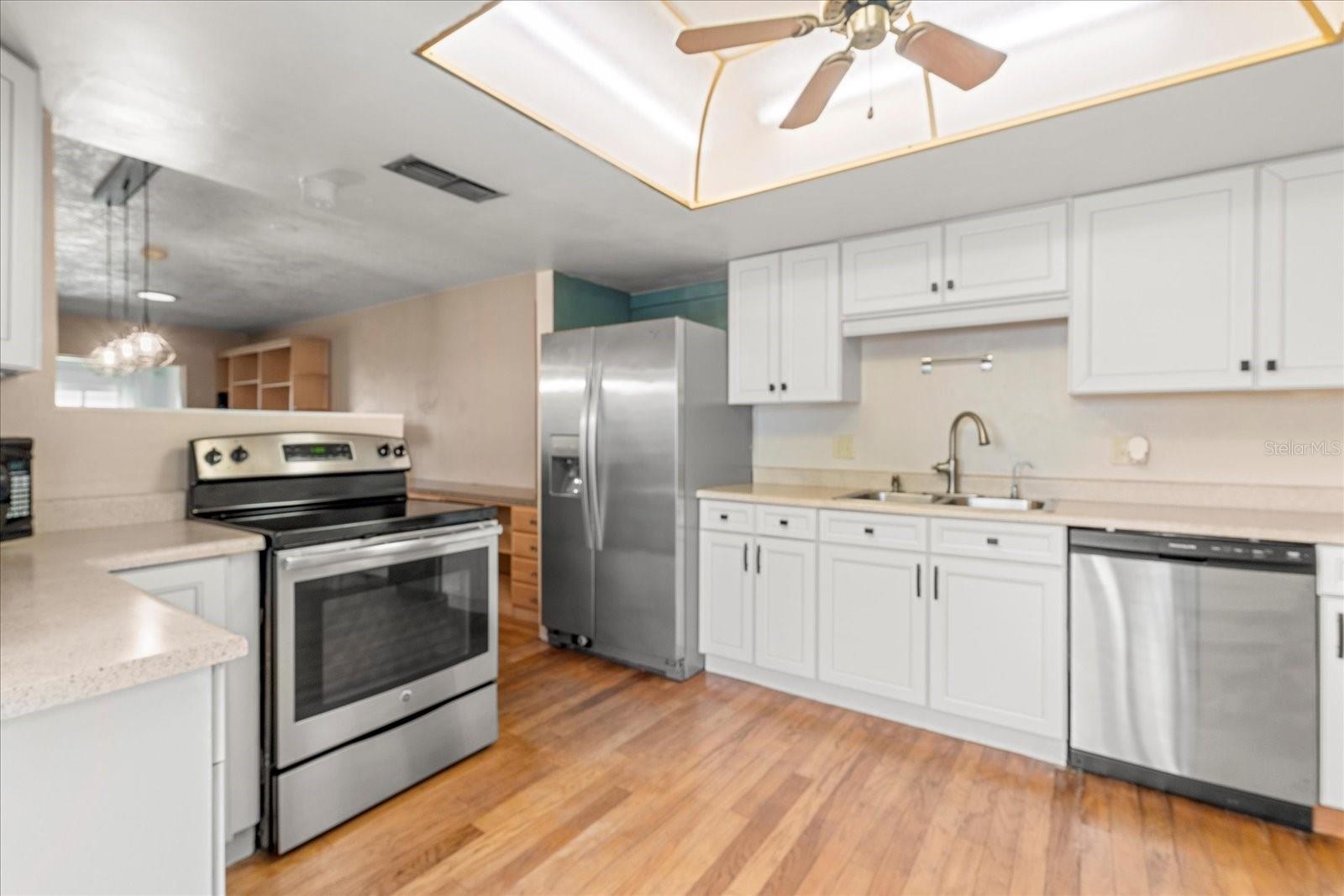 Discover the perfect blend of comfort and convenience in this corner lot one-story 3-bedroom, 2-bathroom with a private 2 car garage townhome! Nestled in the charming Lake of the Woods townhome community, this home boasts a spacious open floor plan, a contemporary kitchen and beautifully updated bathrooms. This inviting residence features an open-concept layout, stainless steel appliances in the modern kitchen, and a bright sunroom perfect for relaxing or entertaining. The private courtyard offers a peaceful outdoor retreat, ideal for morning coffee or evening gatherings. The spacious primary suite boasts a walk-in closet and an en-suite bath for ultimate comfort. Enjoy top-tier community amenities, including a fitness center, an indoor recreation room with pool and ping pong tables, a community library, and a scenic fishing pier. 2025 Roof, 2020 Condensing Unit, 2021 Air Handler, 2017 Water Heater. Don't miss your opportunity to call this beautiful townhome yours!