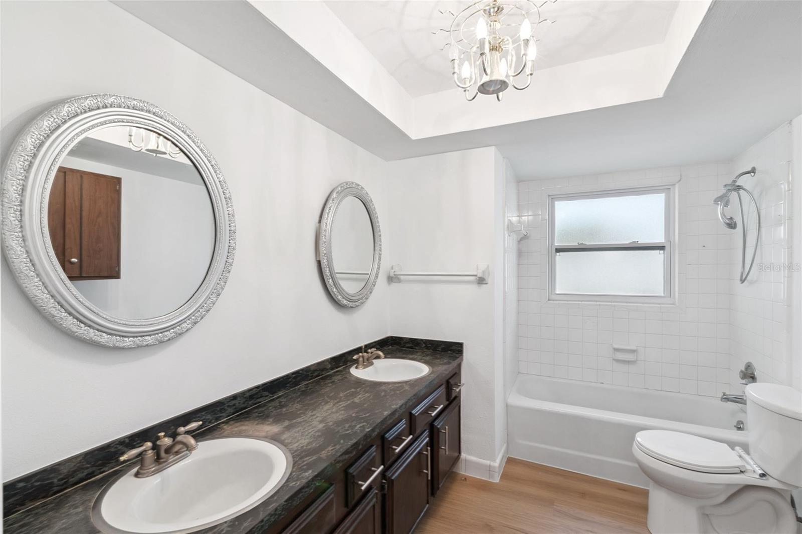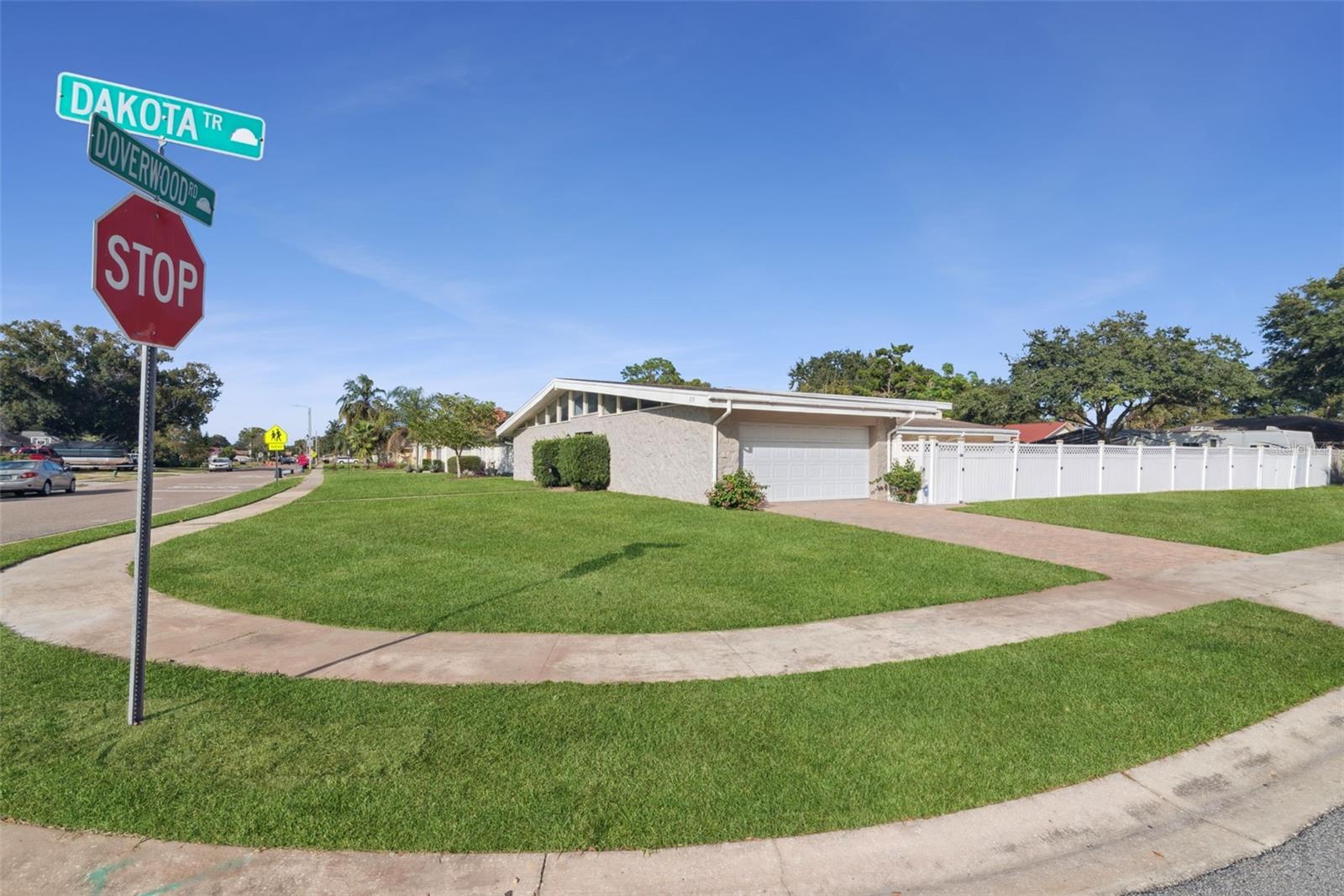 Discover timeless elegance and modern comfort in this stunning Mid-Century Modern home, beautifully situated on a corner lot in desirable English Woods—just a short walk to the elementary school. A pair of double front doors opens to a large formal entry that sets the tone for the home’s spacious design. Enjoy formal living and dining rooms, high vaulted ceilings, and neutral colors that create a bright, open atmosphere throughout. The home features newer NuCore waterproof laminate flooring, adding both beauty and durability. The large kitchen is a chef’s delight with stainless steel appliances, including a three-door refrigerator, Jenn-Air glass cooktop and oven, built-in microwave, handsome tile backsplash, and a cozy eat-in area. A large inside laundry room adds convenience, while the two-car side-entry garage provides ample parking. The primary suite offers a peaceful retreat with a vaulted ceiling, walk-in closet, and an adjoining sitting room, nursery, or office. Step into the expansive Florida room for extra living space or out to the sparkling pool with brick paver deck and roll-out sun shade awning, perfect for entertaining. The privacy-fenced yard features a double gate entry ideal for boat or RV parking, plus a storage shed for all your extras. Solid block construction offers lasting quality, style, and functionality—all in one exceptional package.