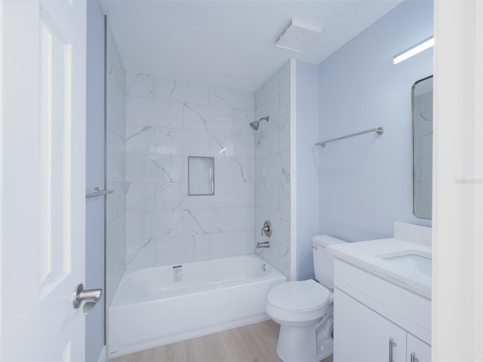 Stunning, Fully Remodeled 2-Bedroom Townhome in Lake of the Woods. Step inside this beautifully updated townhome and enjoy a like-new living experience from top to bottom. This 2-bedroom, 2-bath property has undergone a comprehensive remodel, offering modern style, energy efficiency, and worry-free living for years to come. Every major system and surface has been upgraded, beginning with a complete PEX repipe, new water heater, new roof in 2025, and all-new recessed LED lighting throughout. The home features new luxury vinyl plank flooring with elegant 5” baseboards and knockdown ceilings in every room for a clean, contemporary finish. This thoughtful floorplan includes a semi-private office, perfect for remote work, studying, or hobby space—adding valuable flexibility to the home. Both bathrooms were taken down to the studs and rebuilt, offering high-end craftsmanship and materials. Enjoy a new walk-in shower with tile enclosure and niche, new bathtub with tile surround and niche, new vanities with quartz counters, updated plumbing fixtures, mirrors, lighting, and new toilets. The primary bath is elevated with a double-sink vanity. The kitchen is a true showpiece, with the ceiling raised to 8 feet, creating a bright and open feel. You’ll love the all-new soft-close cabinetry, quartz countertops, large undermount stainless steel sink, and modern brushed-nickel hardware. A spacious pantry provides exceptional storage, and the extended countertop offers seating space for bar stools—perfect for casual dining or entertaining. The kitchen also features all stainless steel appliances, including a new slide-in range, microwave, and dishwasher; the French door refrigerator is just four years old. Additional improvements include new 6-panel doors throughout, new ceiling fans in every room, 2-inch faux wood blinds on every window, and rebuilt windows and sliding glass door for smooth operation and improved efficiency. Both bedrooms are spacious and feature large walk-in closets. Perfect for a roommate or having guests come to visit. Outside, enjoy a gated courtyard that provides privacy and a welcoming entrance, along with a garage for secure parking and extra storage. This is a rare opportunity to own a truly move-in-ready, completely renovated home in the highly desirable Lake of the Woods community. Don’t miss it!