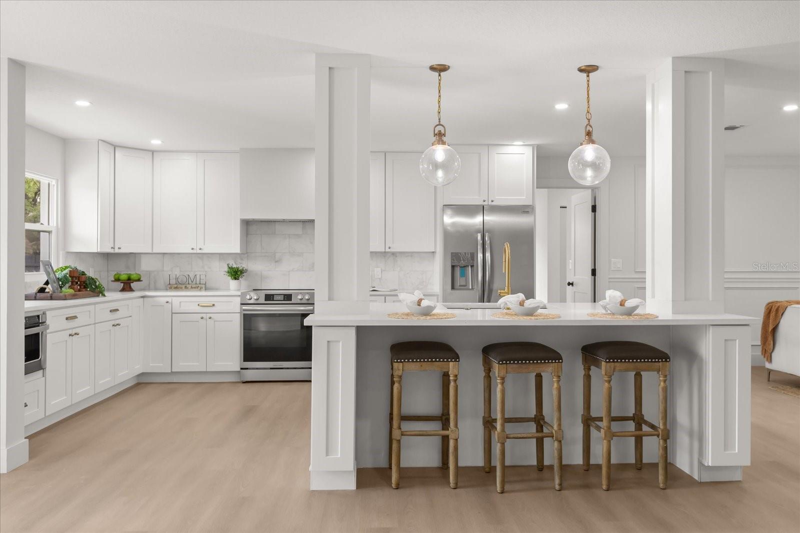 Completely Remodeled 2026 | New Roof | Single-Story | Split Floorplan | The redesigned kitchen features 42" shaker cabinetry, Calcutta quartz countertops, a marble backsplash, and new stainless steel appliances. Bathrooms have been completely remodeled with updated finishes. Luxury vinyl flooring extends through all common areas, complemented by LED recessed lighting and updated fixtures throughout. The open layout provides clear sight-lines between the kitchen and family room, creating a connected main living area. The pavers meet manicured lawns and fresh landscaping for a clean, contemporary finish that is 100% move-in ready. Additional features include an interior laundry room and a fenced backyard. Located near the Casselberry Greenway Trail, a scenic 5-mile path connecting four parks and two schools, including Casselberry Elementary and South Seminole Middle School. Convenient access to Winter Park, Maitland, and the Maitland Exchange, along with I-4, SR-417, UCF, and Full Sail University.