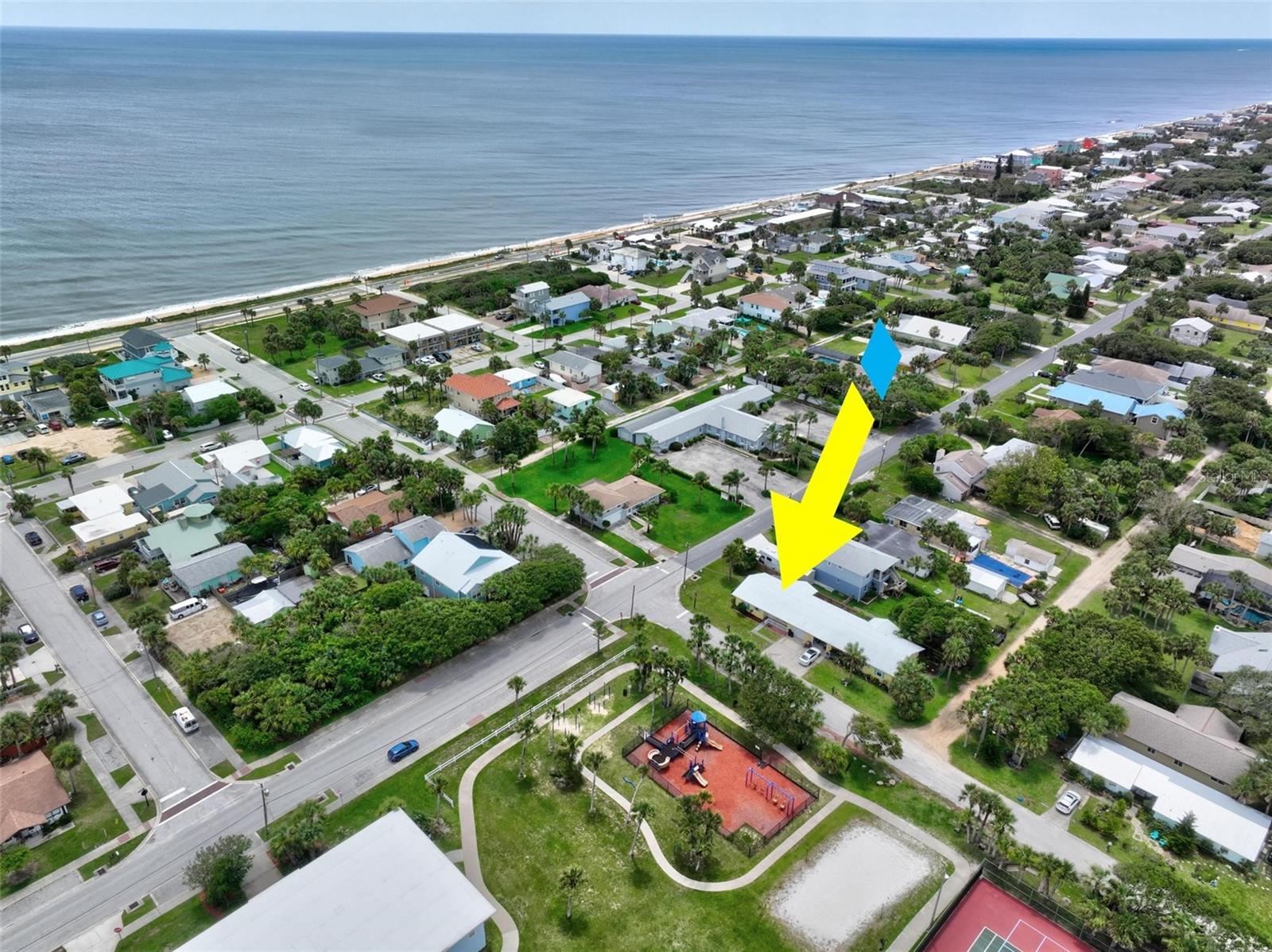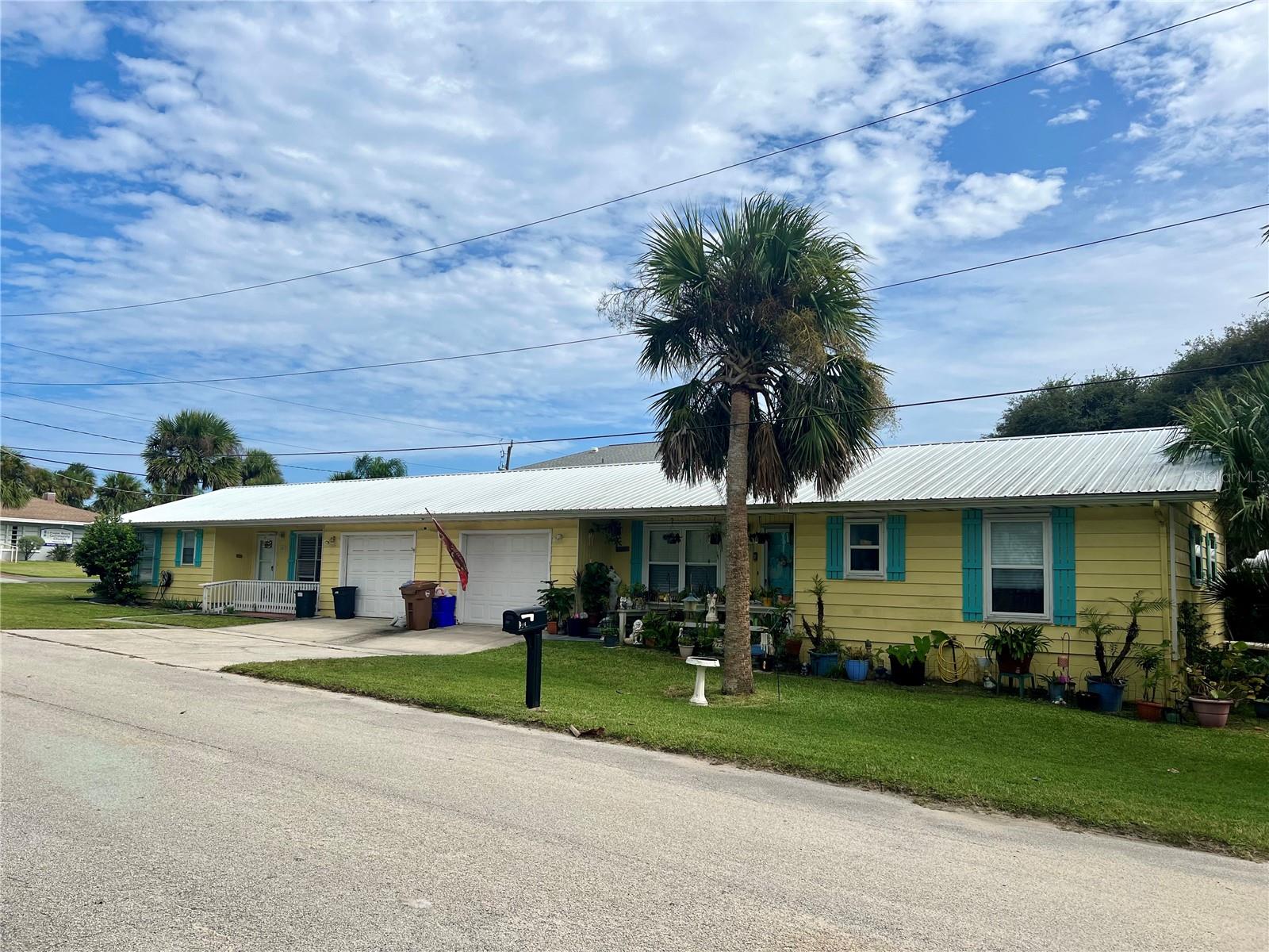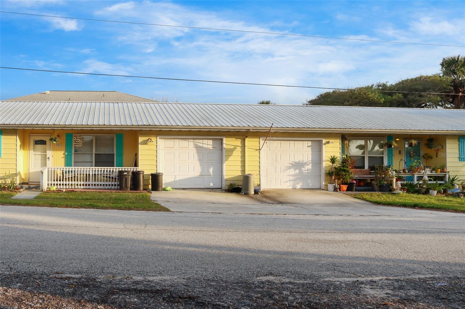 Seller will pay for or credit for a NEW ROOF!!! Rare Flagler Beach duplex for sale! 2 Bed 2 bath on each side, with each side having a 1-car garage in the middle! Buy as an investment, or move into one side and have the other side offset the rent! Each side has their own private fenced in yard. Tile flooring throughout entire duplex, no carpet. Right across the street from Wickline Park (park, tennis courts, basketball courts, and walking trail). 2 blocks from the beach and NEVER FLOODED! No flood insurance required. One side has been completely updated (New A/C, int. paint, light fixtures, ceiling fans, countertops, bathrooms). Other side is in great condition, with crown molding throughout, newer appliances. Both sides currently rented. Roof is not leaking but at end of life.