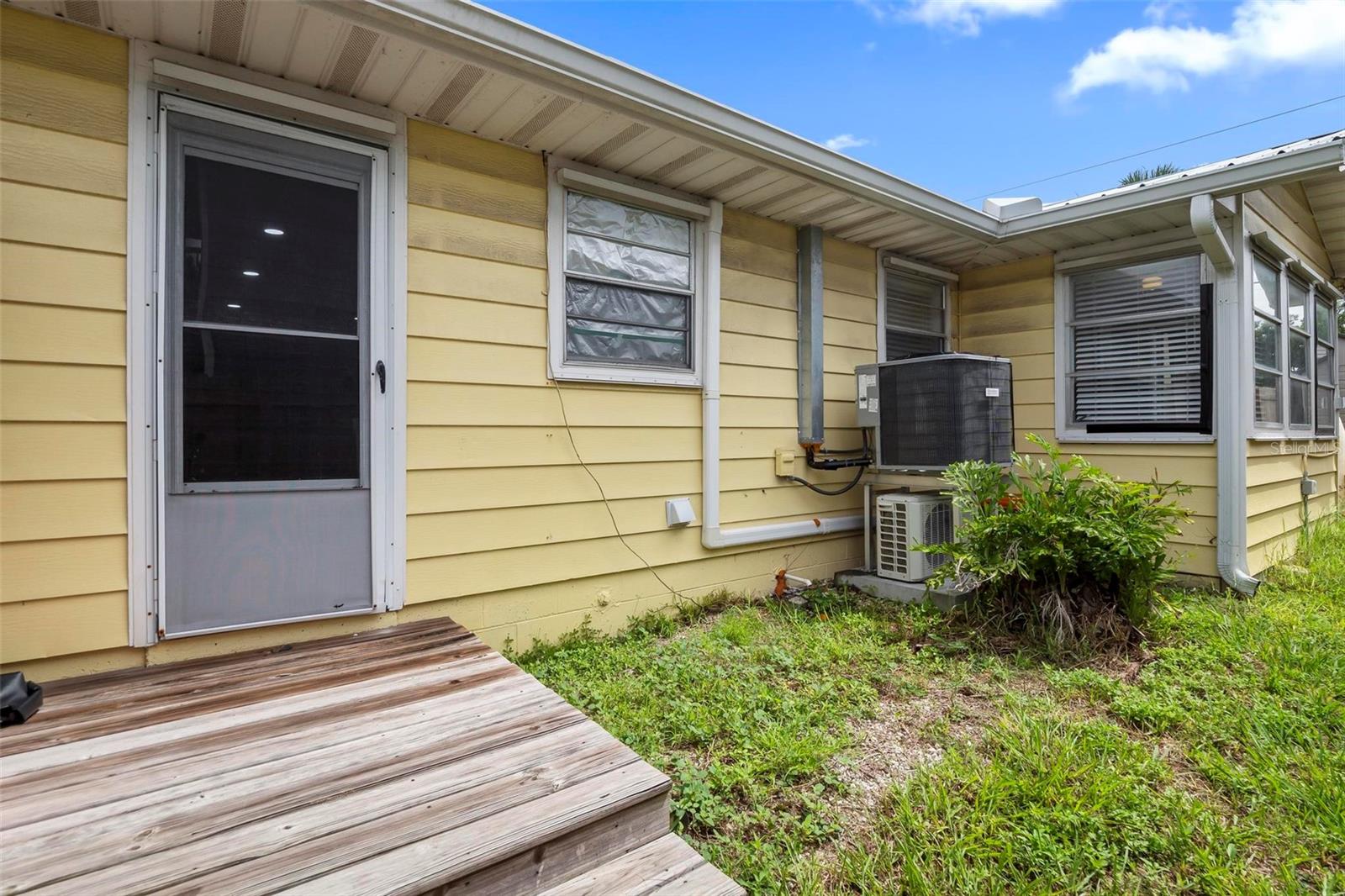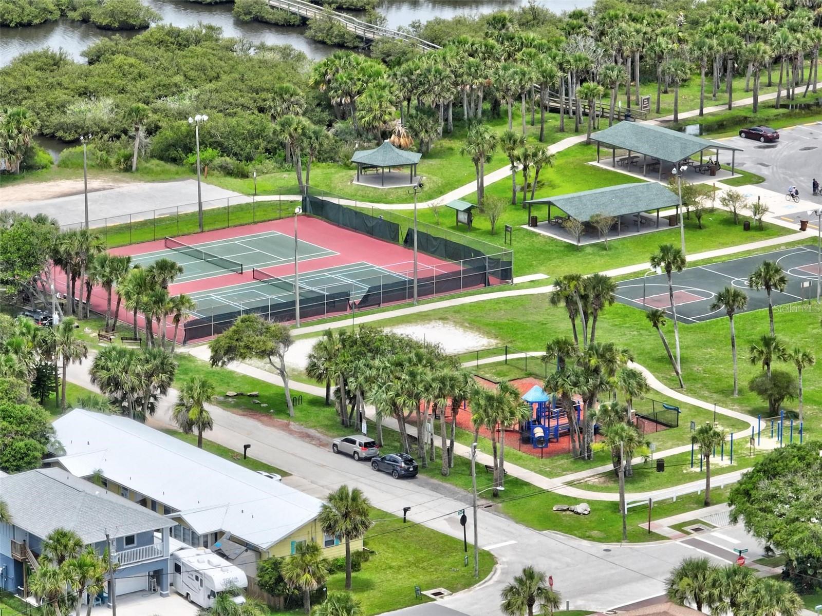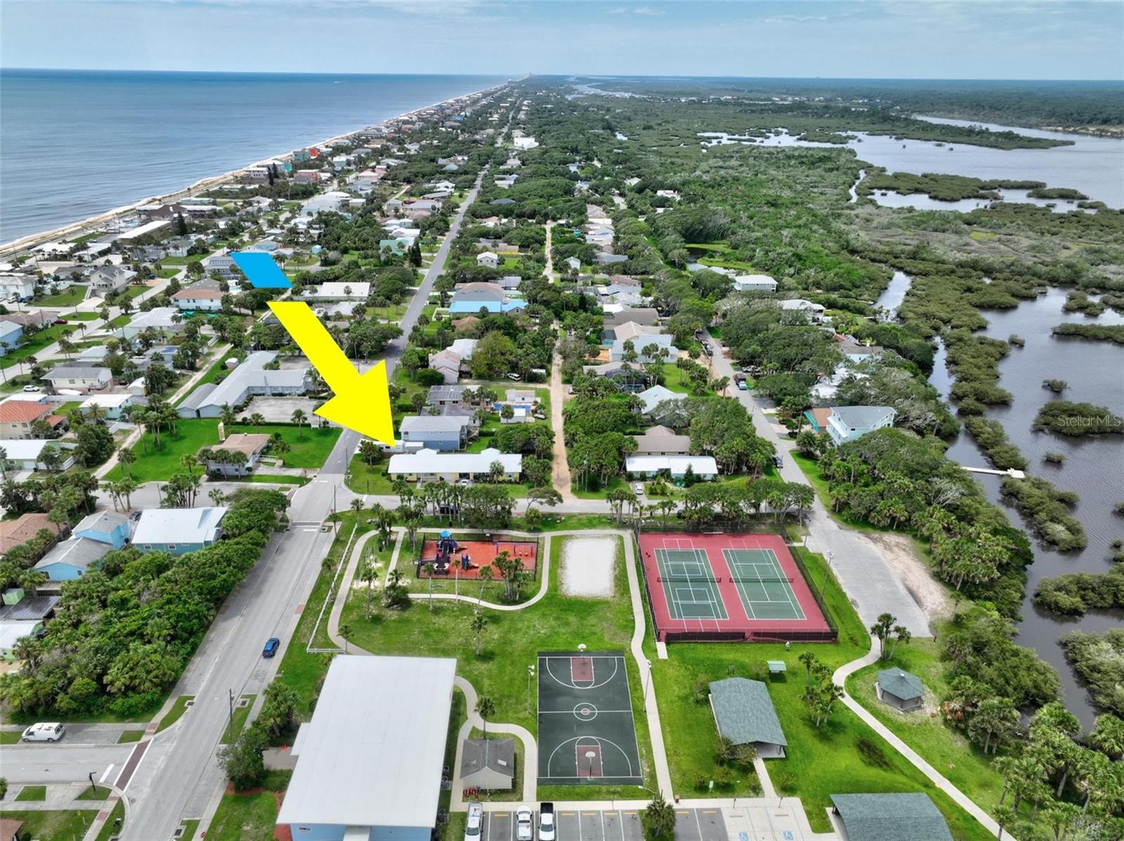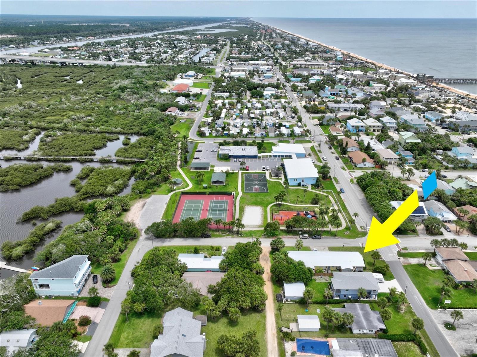 Seller will pay for or credit for a NEW ROOF!!! Rare Flagler Beach duplex for sale! 2 Bed 2 bath on each side, with each side having a 1-car garage in the middle! Buy as an investment, or move into one side and have the other side offset the rent! Each side has their own private fenced in yard. Tile flooring throughout entire duplex, no carpet. Right across the street from Wickline Park (park, tennis courts, basketball courts, and walking trail). 2 blocks from the beach and NEVER FLOODED! No flood insurance required. One side has been completely updated (New A/C, int. paint, light fixtures, ceiling fans, countertops, bathrooms). Other side is in great condition, with crown molding throughout, newer appliances. Both sides currently rented. Roof is not leaking but at end of life.