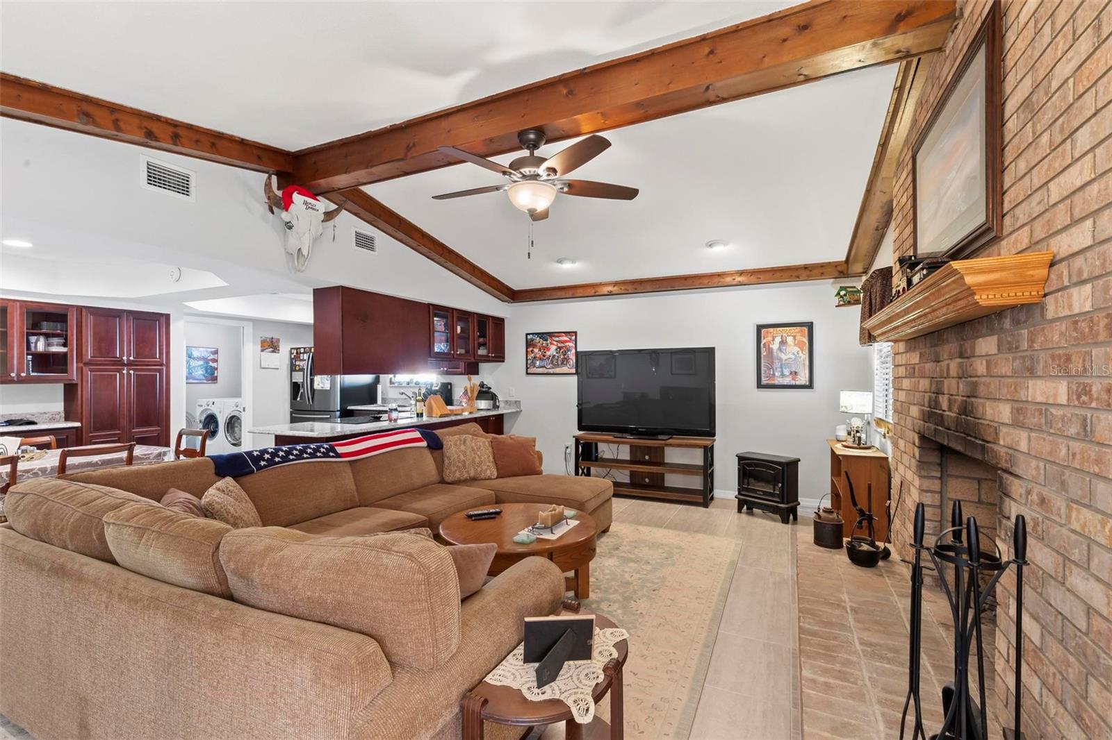 Beautiful, renovated brick home with huge master suite. This property boasts solid surface counter tops, fireplace, new roof in 2023, screened in back patio with an above ground pool. Only 2 short blocks to the beach! Don't miss this one!