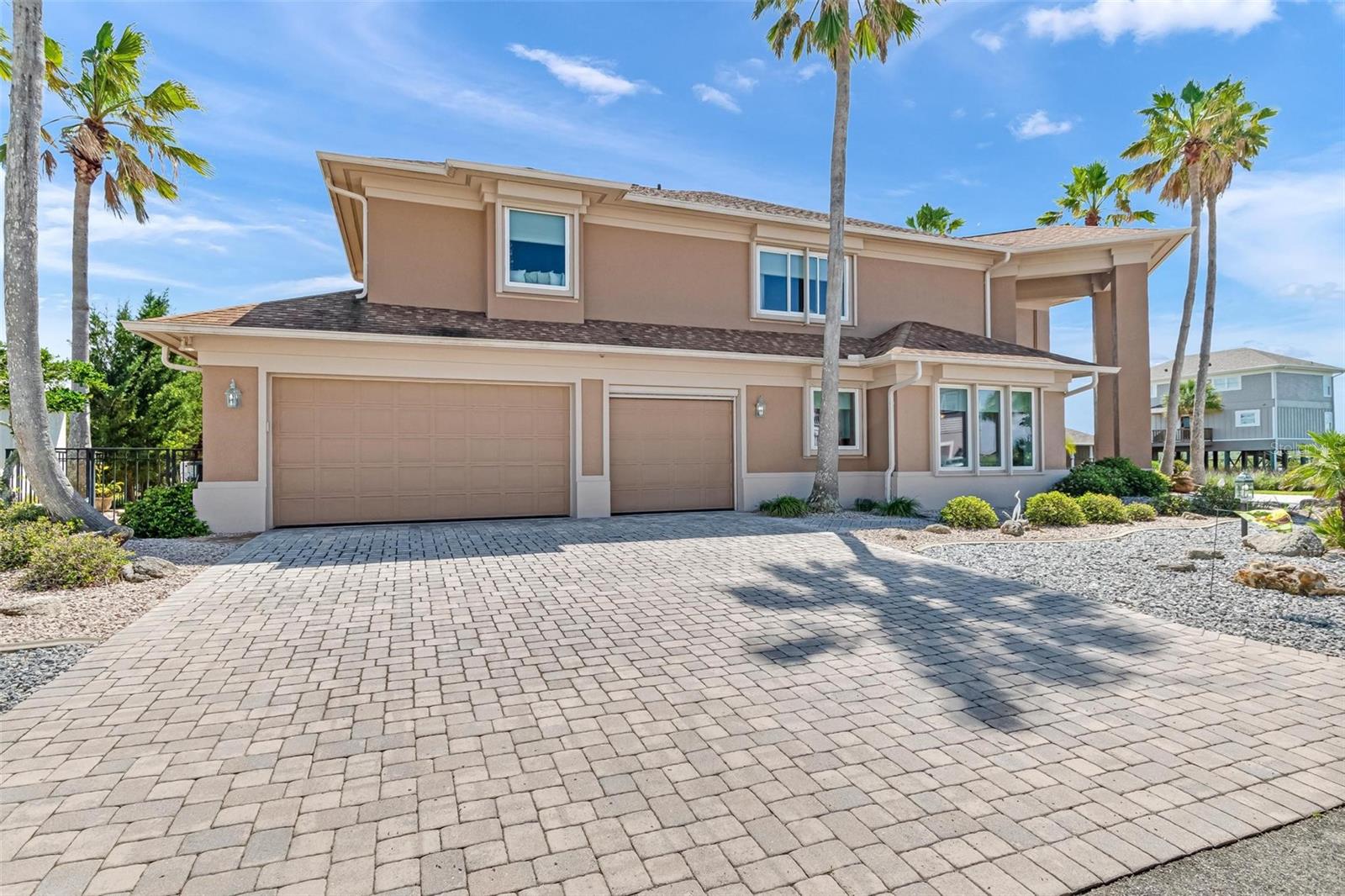Welcome to an EXQUISITE custom built home in a favored location three blocks from the pristine shores of Flagler Beach with its cinnamon-colored sand! This unique residence offers an unparalleled coastal living experience. Immediately enjoy captivating views of the Intracoastal waterway in which the front of the house provides a daily spectacle of maritime activity and natural beauty. The convenience of a variety of family and fine dining restaurants, along with weekly entertainment options, just minutes away, complements the charm of this coastal community. Spanning over 4,000 square feet, this spacious abode showcases 5 bedrooms and 4.5 baths, promising a lifestyle of luxury and comfort. The grand entry foyer sets the tone with a spectacular circular staircase and soaring 20' ceiling, while tray ceilings and crown molding grace the other areas of this magnificent home. The downstairs unfolds with a sunlit library room and an elegant formal living room featuring a stacked-stone fireplace, offering both warmth and impressive views of passing boats on the intracoastal. The enormous kitchen, adjacent to the formal dining room, showcases a butler's pantry with a dry bar and an inviting wine room, complemented by Jenn-air stainless steel appliances and granite countertops. The downstairs laundry room has been thoughtfully converted into a craft room, with a second laundry access conveniently located on the second floor. Ascending the grand staircase, the second floor reveals a primary bedroom retreat with a thoughtfully designed ensuite and walk-in closet, complete with a balcony providing breathtaking views of boats gliding by. On the opposite side, a second master bedroom with ensuite ensures privacy and luxury. Additionally accessed from the main hall are three more spacious bedrooms that extend your family needs. The outdoor oasis of this residence is equally impressive, featuring a refreshing in-ground pool with a built-in spa, a private sauna room, and an aluminum fence enclosure for added exclusivity. A quaint side paver patio leads into the welcoming Florida room with a sports bar, creating the perfect setting for entertaining or relaxation. The property also boasts a three-car garage with upgraded flooring, a circular paver driveway, a whole-house generator, motorized storm shutters, central vacuum, and a host of recent upgrades, including new gutters in 2023, exterior paint in 2018, and Roof / 2-zone HVAC/ and kitchen appliances all replaced in 2017. The windows, sliding door, and pool were resurfaced in 2015, ensuring that this home seamlessly blends sophistication with modern convenience. Inquire about a private showing today, this is a must see. With the recent price adjustment this home has great value!