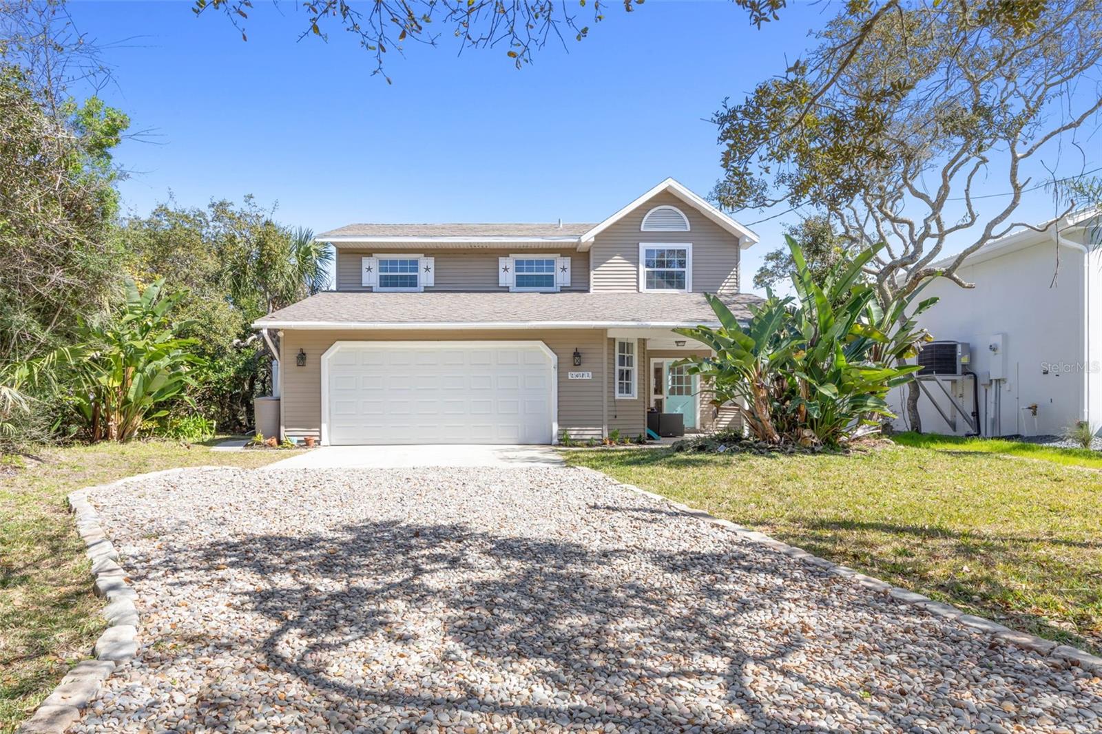 Discover your own charming beachside paradise on a serene, secluded street surrounded by lush tropical foliage, including swaying bamboo and fruitful trees. This exquisite two-story, 3-bedroom, 2.5-bathroom home was meticulously crafted with Florida's coastal climate in mind, ensuring a harmonious blend of indoor-outdoor living. Flooded with natural light, the residence showcases stunning hardwood floors and soaring vaulted ceilings, and a natural wood burning cozy fireplace, creating an airy ambiance throughout. Step into the gorgeous kitchen, equipped with top-of-the-line stainless steel appliances, luxurious granite countertops, and a hand-selected mother-of-pearl backsplash, adding a touch of elegance to every meal. Entertain in style within the expansive dining area, adorned with a breathtaking mother-of-pearl chandelier, sure to captivate guests and residents alike. Every corner of this home exudes meticulous attention to detail and craftsmanship. A versatile office/studio space awaits, offering a dedicated area for remote work or creative pursuits. With its adaptable design, this space effortlessly transforms to accommodate guests, ensuring both productivity and hospitality. Step into the generously-sized living room, where gatherings and socializing take center stage. The inviting atmosphere is enhanced by the convenient half-bath on the ground floor, providing added convenience for residents and visitors alike. Retreat to the upper level to discover a sanctuary of tranquility. The serene bedrooms and baths offer a peaceful respite from the day's activities, while the luxurious master suite beckons with its own private en-suite bathroom, offering the ultimate in relaxation and comfort. Whether you're seeking a quiet space to work, a cozy spot to unwind with loved ones, or a peaceful haven for restful sleep, this home offers the perfect balance of versatility and luxury. Come experience the epitome of coastal living in this exquisite residence. Step outside into your own private outdoor oasis, where coastal living meets serene relaxation. This charming home offers an expansive outdoor living space that beckons you to embrace the coastal lifestyle and savor the gentle sea breezes. The spacious patio provides the ideal setting for al fresco dining, morning coffee, or simply unwinding with a good book while listening to the soothing sounds of nature. Surrounded by lush tropical foliage, including swaying palms and fragrant flowers, this outdoor retreat offers a peaceful escape from the hustle and bustle of everyday life. As the sun sets over the horizon, gather around the fire pit with family and friends to share stories and toast marshmallows under the starlit sky. Or, take a leisurely stroll to the nearby beach, just moments away, where you can sink your toes into the warm sand and bask in the beauty of the ocean. Whether you're hosting a barbecue, practicing yoga in the morning sun, or simply lounging in a hammock with a refreshing drink in hand, this outdoor living space is the perfect sanctuary for embracing the laid-back coastal lifestyle. Come experience the magic of outdoor living in Flagler Beach and create lasting memories in this coastal paradise. Words alone cannot capture the true magnificence of this hidden gem nestled in Flagler Beach. Come experience the unparalleled beauty and serenity of this coastal retreat firsthand. *** Owner Financing Available ***