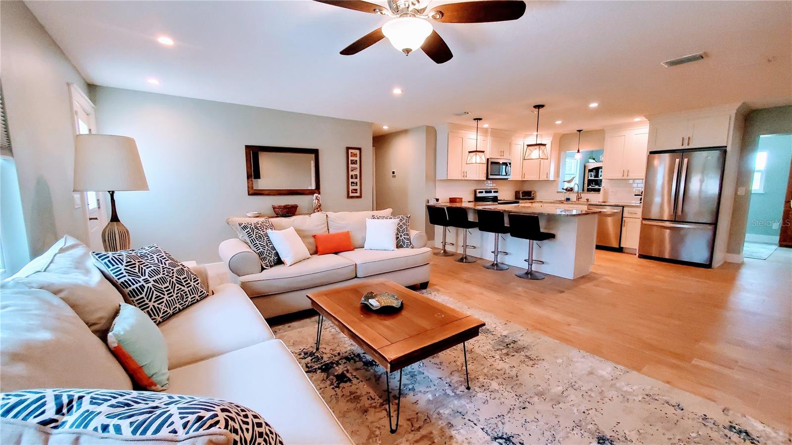 Wonderful opportunity to own a Coastal charmer! This remodeled 3 bedroom 2 bath home with separate office/4th bdrm is located in a quiet area of Flagler Beach. The completely upgraded kitchen features shaker style cabinets with ample storage space, granite countertops, tiled backsplash and stainless steel appliances. Both bathrooms have been tastefully remodeled. Interior has been recently repainted. Additional updates include new electrical panel (8/2023), new doors throughout, new water heater, newer duct work (8/2021), impact glass windows installed (10/2018), HVAC replaced (10/2018) and roof replaced with architectural shingles (6/2017). This beachside gem displays an open great room layout & beautiful kitchen. House sits on an oversized property surrounded by Florida natural landscape. Catch a view of the wildlife & enjoy stunning sunsets over the marsh or relax around the fire pit on those cooler evenings. You won't be disappointed. Don't delay! See it today! *Once the home of 4X World Pro Surfing Champion*