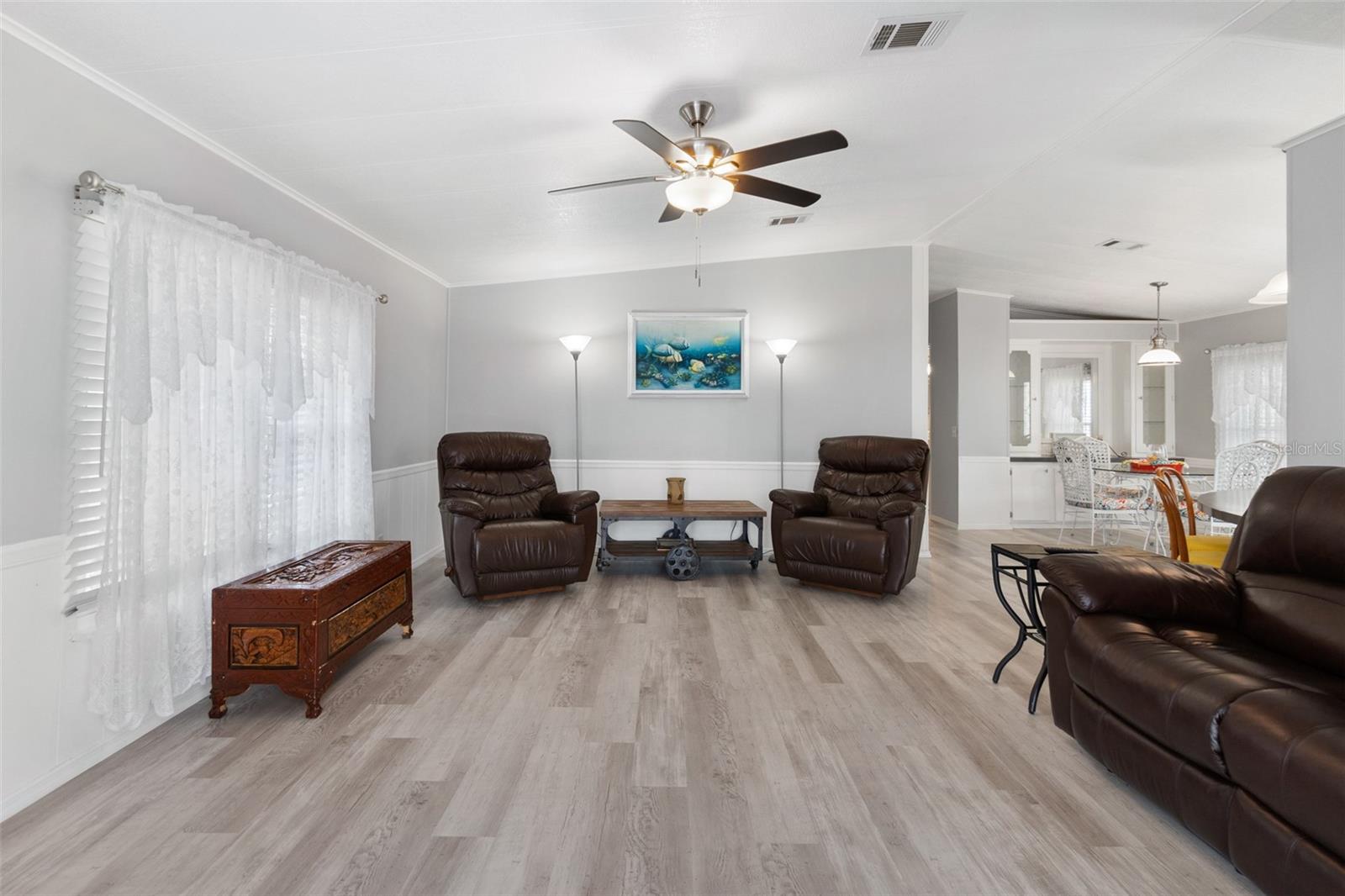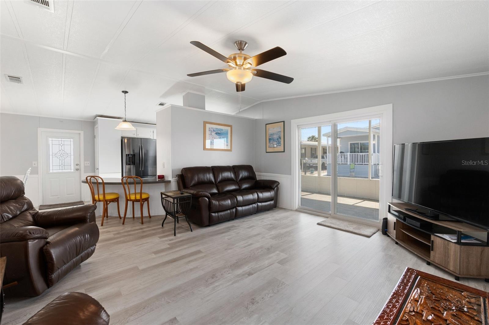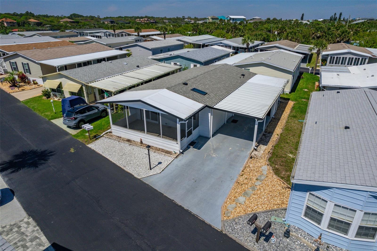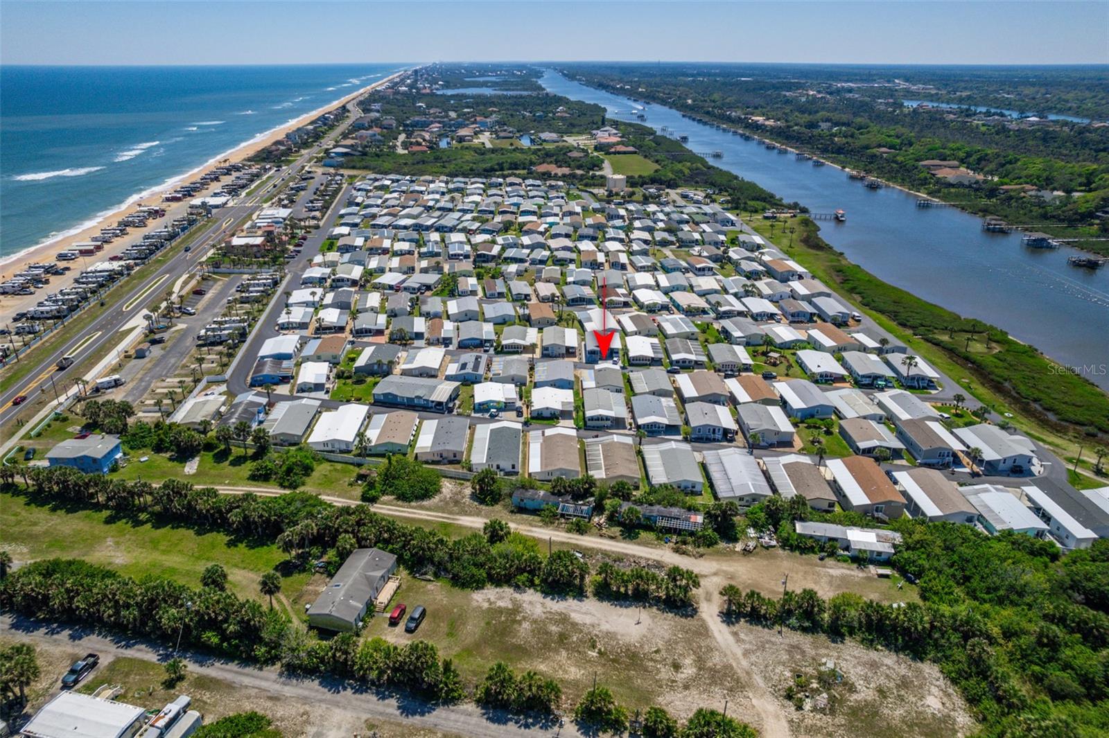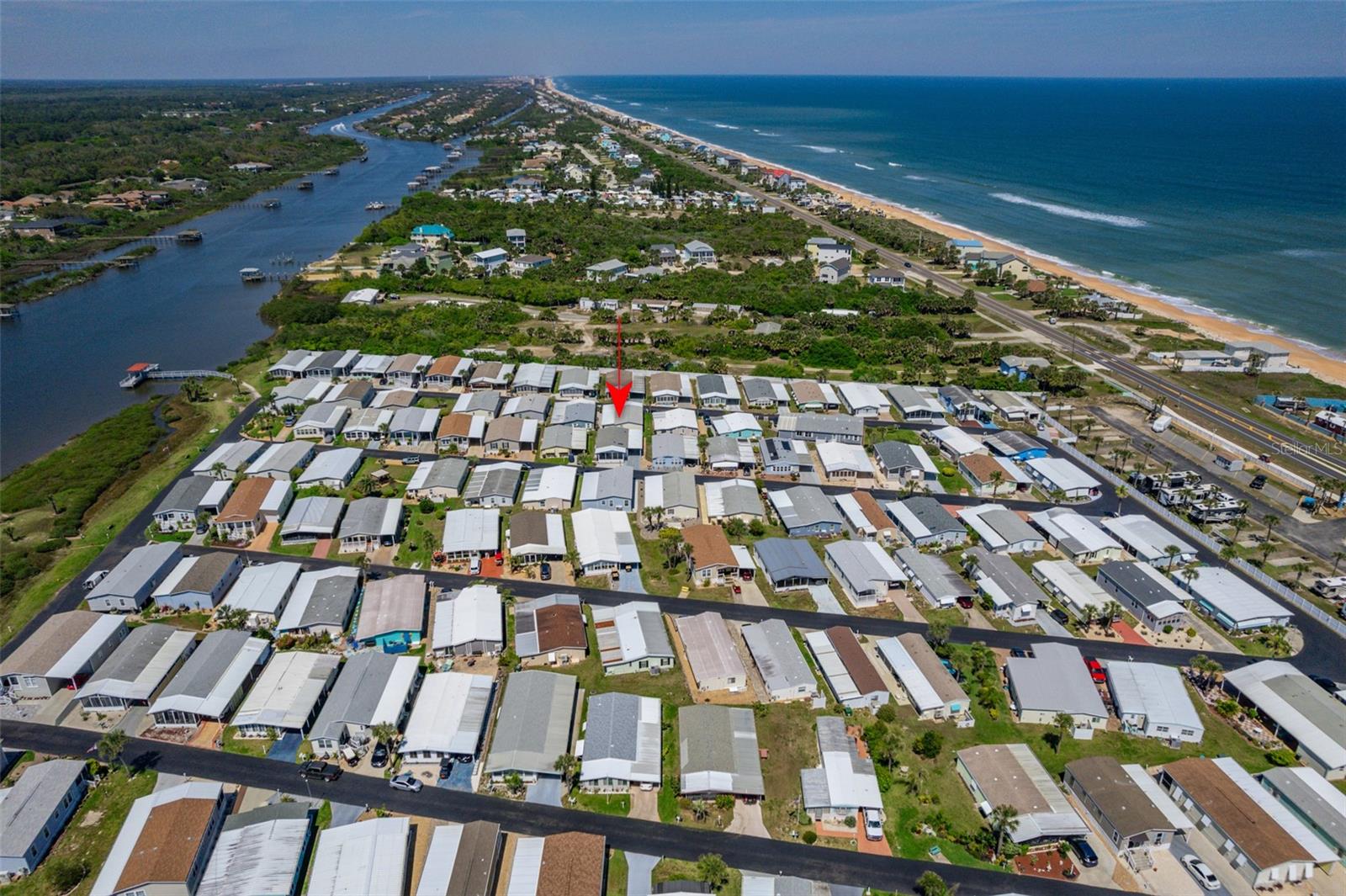 Adorable updated Beachside Bungalow, fully furnished/turnkey all that is missing is you! Whether you are looking for a full time residence or a place to escape the cold winters this may be the home for you! This 2 bedroom/2bath home offers soft neutral colors throughout , high ceilings, stainless steel appliances and all of the updating has been done for you making this truly move in ready home. All of the rooms are spacious, from the kitchen and living rooms to the bedrooms and bathrooms you will enjoy the amount of space this home offers! There is a 10x20 screened in front porch, the perfect spot to enjoy the cross breezes and visit with your neighbors as they walk by. You can enjoy the sunsets over the intracoastal waterway every evening with a quick stroll down to the end of your street. The covered carport has enough room for 2 cars and there is a storage shed at the end of the driveway. All of the furniture and appliances stay with the home as well as all the home furnishings. Bathroom remodel in 2016, screen porch added 2017, roof replaced 2018 and A/C in 2023. This move in ready home is offered in Surfside Estates, an active 55+ Manufactured Home Community that is nestled between the Atlantic Ocean and the Intracoastal Waterway. Surfside Estates is a Resident Owned land share Community which means there is no lot rent! When you purchase your home in Surfside Estates you own a share of this beautiful beachside community. The monthly maintenance fee is $160/month and includes wi-fi, internet, cable, yard maintenance, management and use of all the facilities. There is an inground heated/cooled pool, fitness room, library, shuffleboard court and rooftop deck. The Social Club offers many activities to get involved as much or as little as you like. Friday night bingo, men's and lady's cards, pool tables and large screen TV for all your sporting events. Exercise classes and water aerobics. Walk to the beach across the street or ride your bike or golf cart to one of the 2 docks to enjoy fishing or just relax and enjoy the boats and dolphins go by. There is kayak storage, a BBQ Pit and gazebo with a view of the Intracoastal. The quaint neighboring town of Flagler Beach is just a few minutes down the road, where you will find a variety of shops and restaurants to choose from. Just over the bridge you will find shopping, restaurants, hospitals and doctors. You will fall in love with this adorable home and this special community! (patio furniture, area rugs and potted plants do not convey with home)