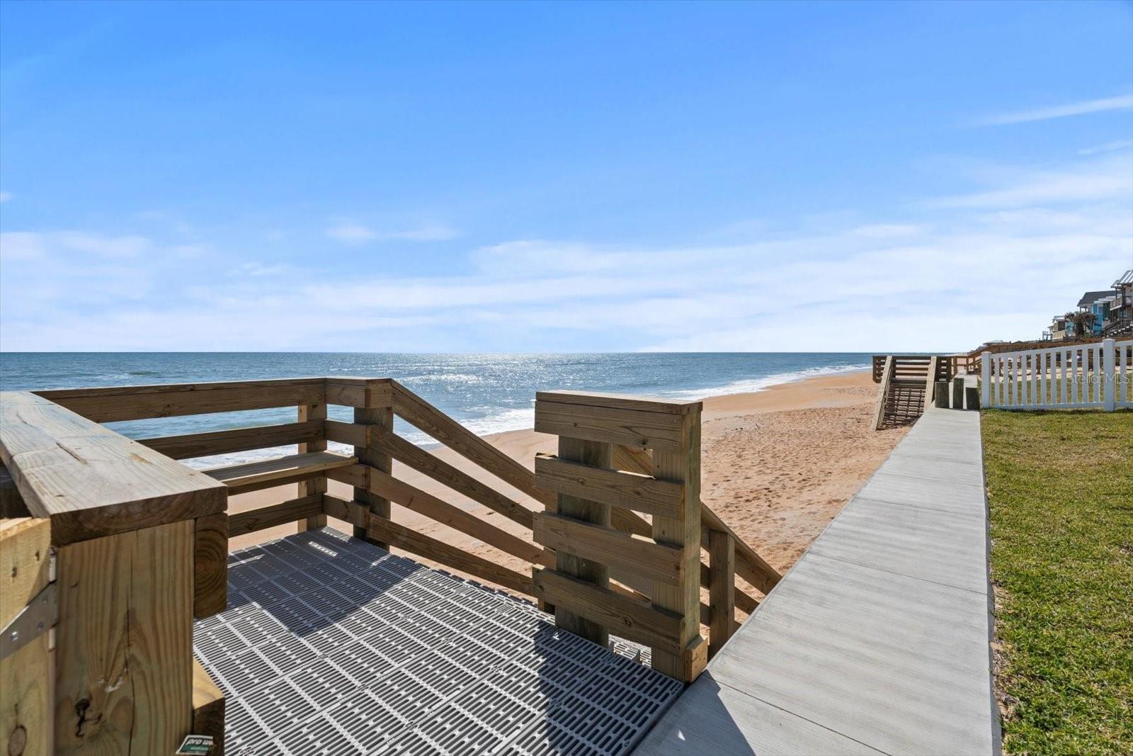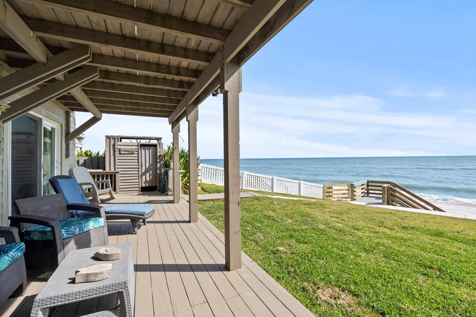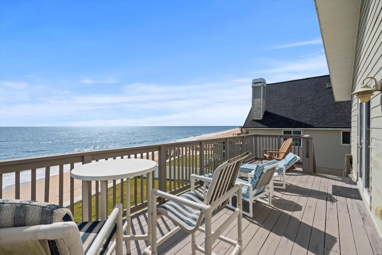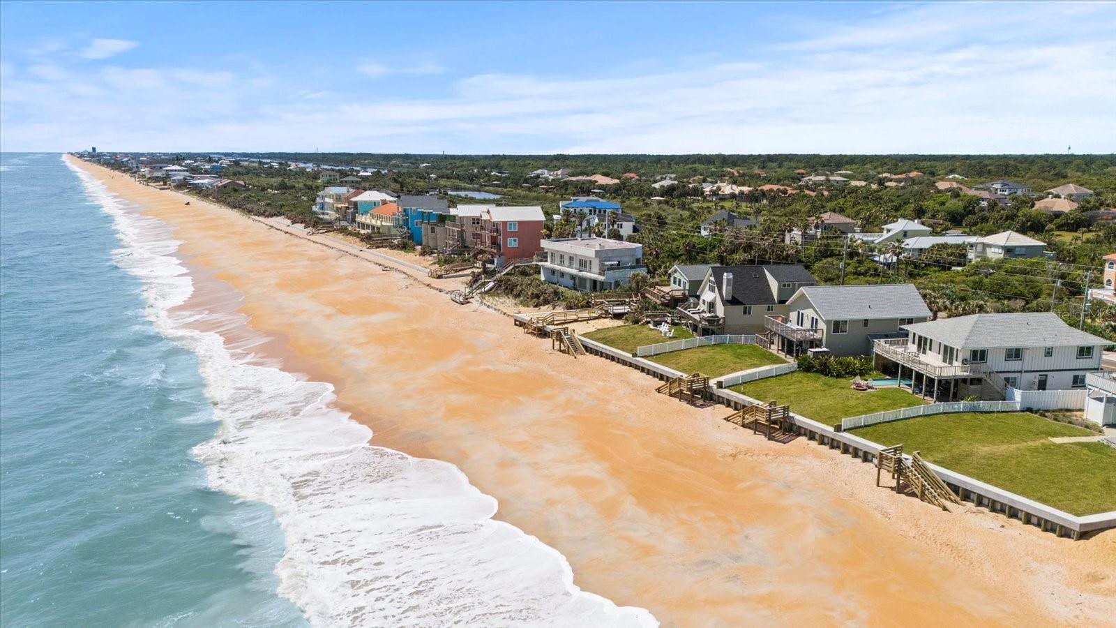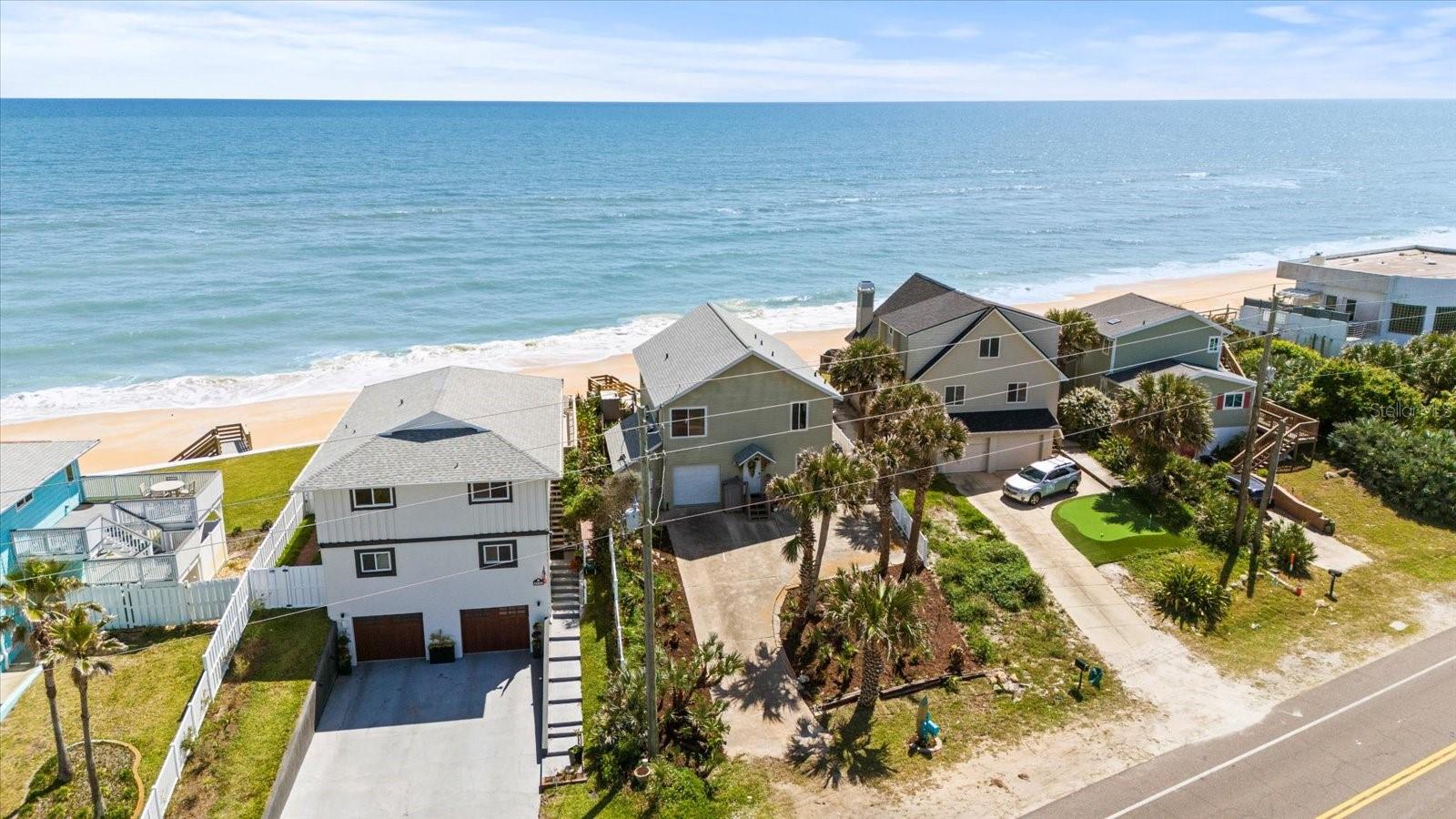 BACK ON MARKET DUE TO FINANCING FALLING THROUGH - THIS HOME HAS UNPARELLED OCEAN VIEWS - Nestled along the pristine shores of the Atlantic Ocean on the north end of Flagler Beach, this stunning two-story residence boasts unparalleled ocean views and luxurious living. As you drive up to this oceanfront retreat you will notice the freshly landscaped yard and privacy that is accomplished by it's elevation. You will be wowed by the breathtaking views from every angle as you enter. With four bedrooms, 2.5 baths, and a fluid open floor plan, this home is a perfect blend of comfort and beach-style living! The heart of the home features a recently updated kitchen with stainless appliances and solid wood cabinets, seamlessly flowing into a spacious living area. This open space is framed by an abundance of windows, allowing natural light to reflect on the coastal palette of the interior. Step outside onto the expansive deck, an ideal spot for entertaining or relaxing while listening to the soothing sounds of the waves. The deck also offers a front-row seat to the area's natural beauty, including frequent sightings of pelicans, sea birds and sea turtles. Take a short walk out the backyard and down a newly built beach stairway and let your feet take up the sand between your toes, then rinse off in your enclosed outdoor shower A NEWLY CONSTRUCTED SEAWALL, BUILT IN 2023, provides peace of mind by protecting the property. Step back inside and take the stairs to another level of paradise. The primary suite is a retreat within itself. Grab your coffee, step outside the double doors that open to the 2nd-floor full-size deck, and watch the sunrise! 3 other bedrooms offer another level of serenity and open views creating a vibrant backdrop to everyday living. A newly updated guest bath boasts trendy tile and a spa-like feel. No concerns with insuring as the home has a ROOF INSTALLED IN 2022 and a NEW TRANE HVAC 8/2024, so retreating to a cool home after a day at the beach will be refreshing! Located in the scenic area of Flagler Beach, this home offers a unique opportunity to own a piece of paradise with every modern convenience at your fingertips. The home offers so many options: Primary residency, a combo of vacation getaways with income options, or strictly investment opportunities. Don't miss out on this Oceanfront GEM, Coastal living at it's finest. Schedule your showing today - floor plans and video are available.
