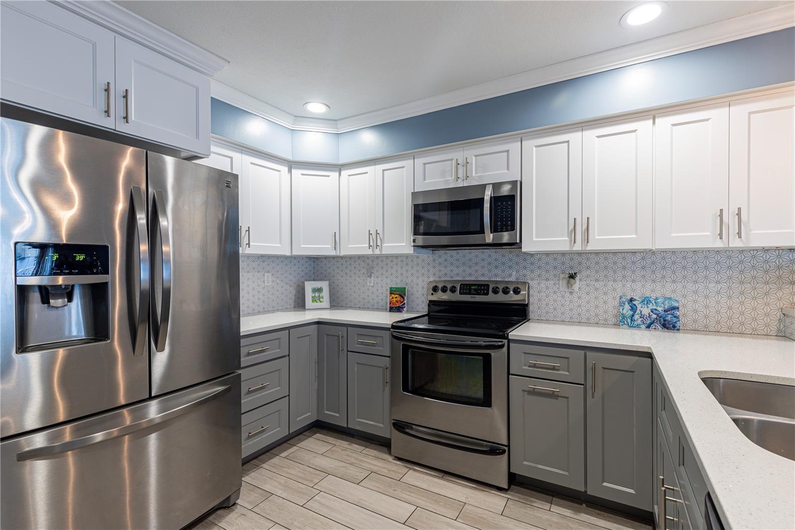 The exceptional affordability of 83 Ocean Palm Villas S by the beach makes it an ideal property for primary residence, rental investment, or a secondary home. Situated within a short distance of the ocean and just steps away from the pool and Intracoastal waterway, this corner unit townhome boasts a prime location! The property includes a one-car garage and has been fully remodeled to exude absolute gorgeousness. The upgraded kitchen features stainless steel appliances, coastal cabinets, and stunning quartz countertops. Its open concept layout is perfect for entertaining, seamlessly connecting the kitchen to the living room and rear patio. A convenient full bathroom downstairs is ideal for guests or for quick access after a pool session just outside the sliding glass door. Upstairs, two bedrooms provides ample closet and storage space. The primary bedroom is spacious and includes a balcony for enjoying peaceful moments while watching passing boats. Within the Ocean Palm Villas community, residents have access to a pristine pool, tennis courts, and a kayak ramp with storage facilities. Experience maintenance-free living and embrace the Flagler Beach lifestyle at Ocean Palm Villas! Seller is offering a $750.00 home warranty. Buyers must be approved by HOA.
