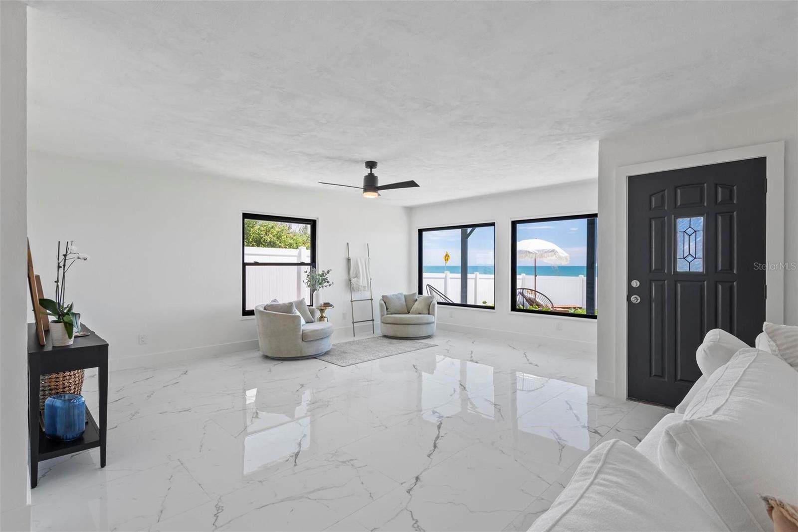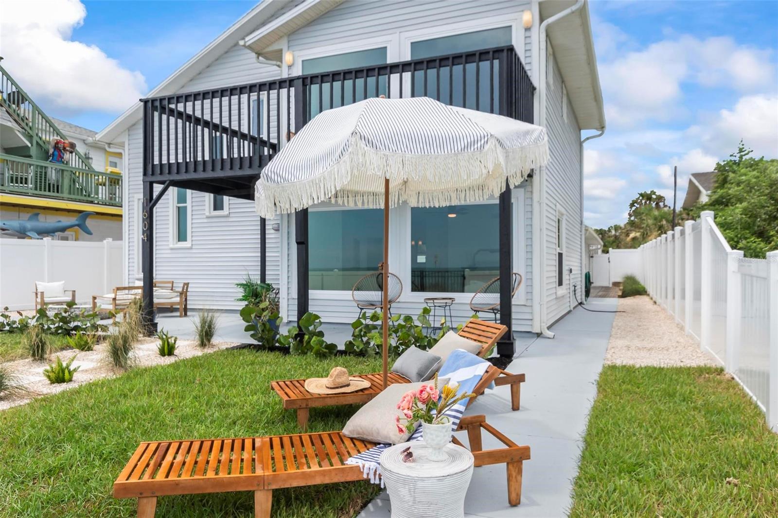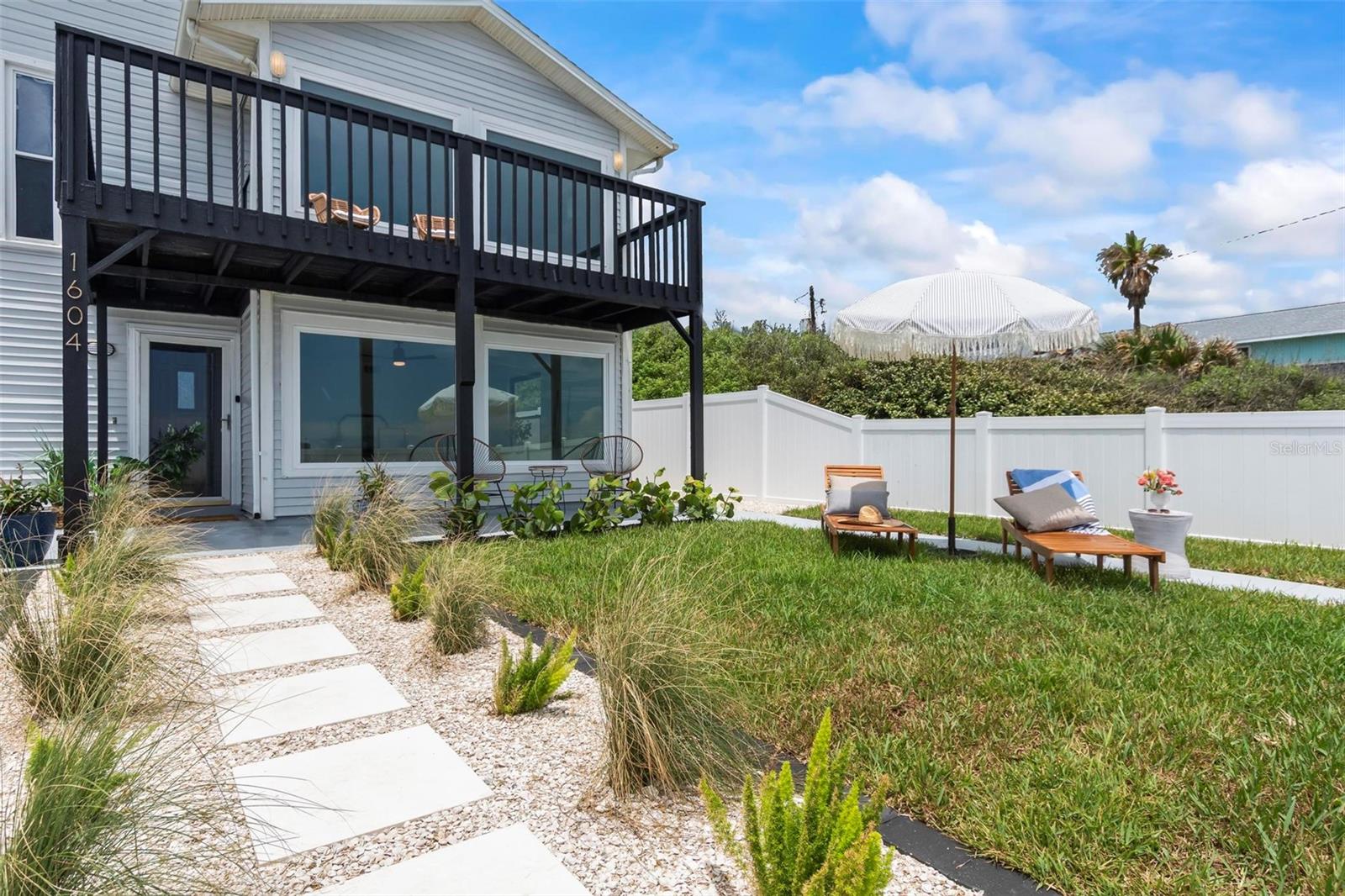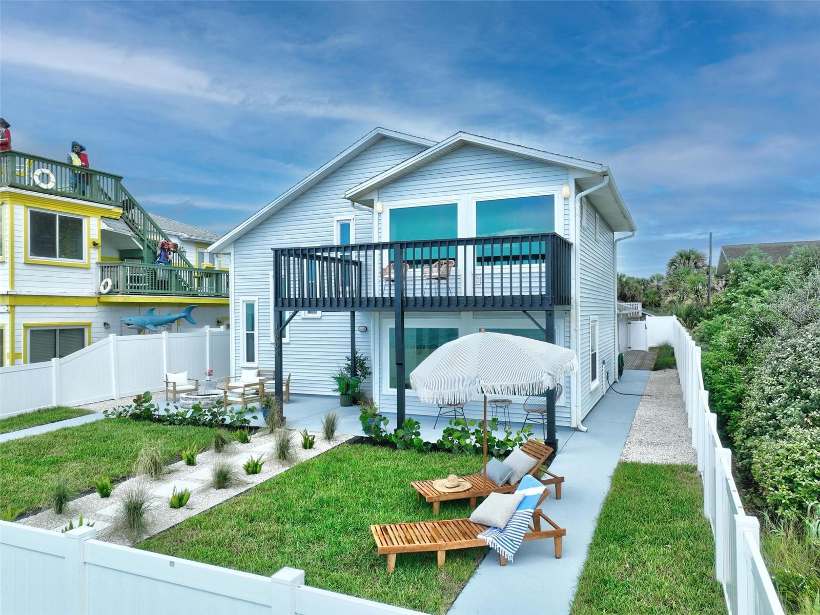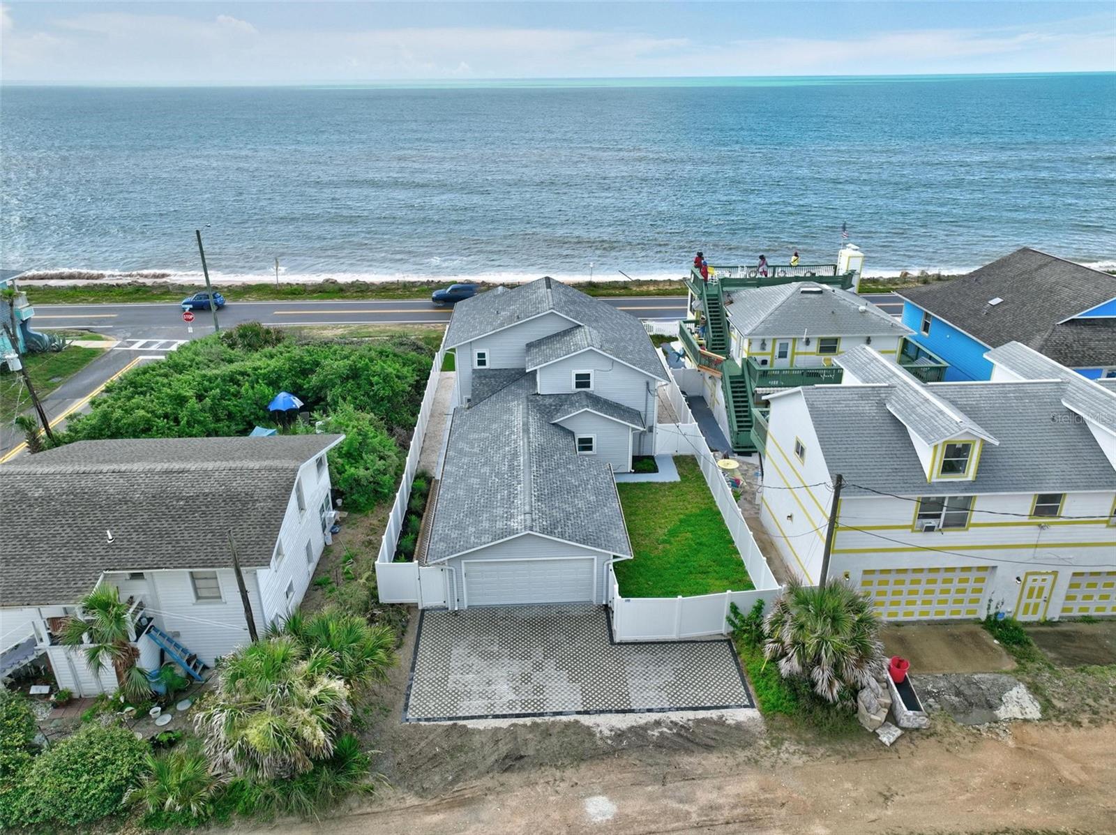 Coastal Living at Its Finest: Your Dream Oceanfront Home in Flagler Beach Welcome to 1604 S Ocean Shore Blvd, Flagler Beach, where coastal elegance meets modern luxury. This exquisitely remodeled single-family home promises a lifestyle of tranquility and beauty, with sweeping views of the Atlantic Ocean and the soothing sound of waves as your daily soundtrack. Step inside to discover gleaming new flooring and a beautifully fenced yard, perfect for entertaining and enjoying the ocean breeze. The property features a convenient two-car garage with alley access, ideal for storing all your beach essentials. New pavers and thoughtfully designed landscaping create an inviting outdoor space, complete with a fire pit for cozy evenings by the ocean. The heart of the home is a completely remodeled kitchen, boasting sleek quartz countertops, a portable expandable island, and four-piece Whirlpool stainless steel appliances. The large laundry room includes a new Whirlpool washer and dryer, ensuring convenience and style. Every detail has been considered in the 100% hard flooring, featuring new tile and luxury vinyl throughout—no carpet. The master suite offers twin sinks in a custom vanity, his and her closets, and a private front-viewing deck to enjoy the ocean vistas. This three-bedroom, three-bathroom home includes a bonus room perfect for an office and ample space in the backyard to add a pool, transforming it into your personal oasis. Additional updates include a new water heater, 6 Whirlpool Stainless appliances (including the washer and dryer), modern light fixtures, custom vanities and cabinets, and quartz countertops. Located just a short stroll or bike ride from the Flagler Beach Pier, restaurants, the new Compass by Margaritaville Hotel, and shopping, this property offers the best of beachside living. With direct access to the beach just a couple hundred feet from your door, all you need are your flip-flops to move right in. Experience the unique blend of small-town charm and modern conveniences in Flagler Beach, a welcoming seaside community known for its relaxed atmosphere and vibrant outdoor activities. Make this dream home yours and start living the coastal lifestyle you’ve always desired.