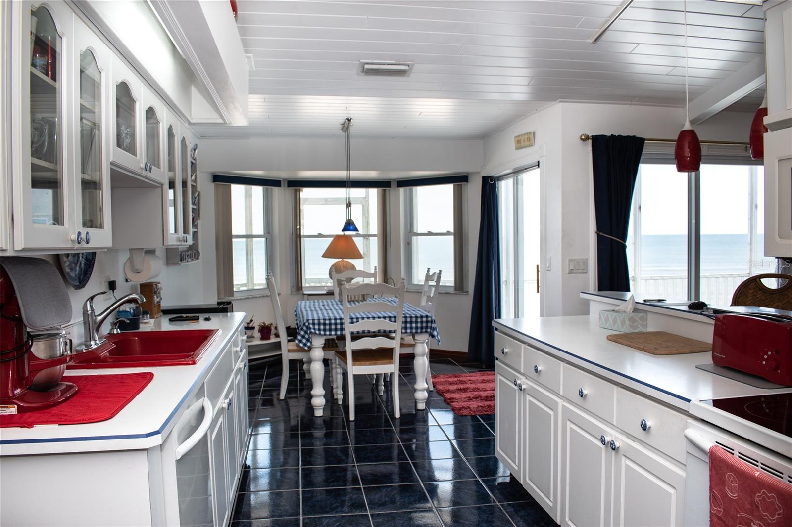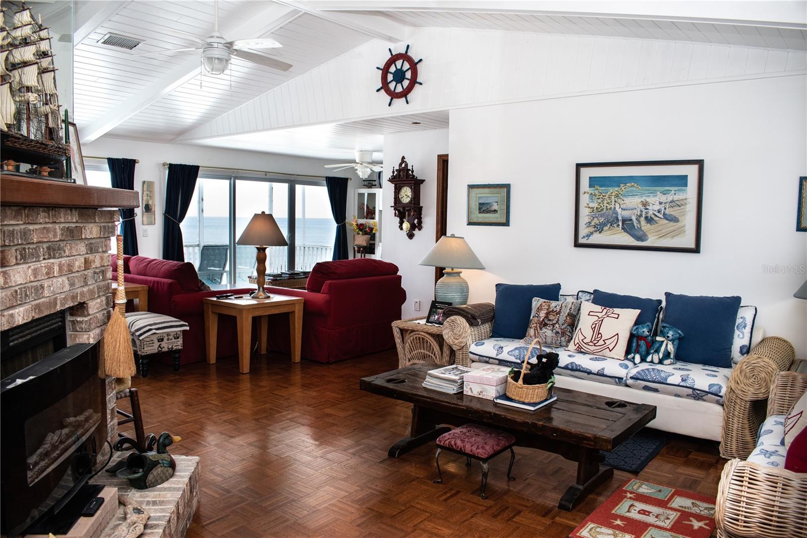 This direct oceanfront property offers a breathtaking view and an impressive range of features. As you enter, you'll be greeted by a charming breakfast nook and a bar area, perfect for enjoying your morning coffee or entertaining guests. The kitchen is a true work of art, featuring a beautiful gallery style design with a porcelain red kitchen sink has white cabinets. Upstairs, you'll find a spacious balcony that overlooks the expansive direct oceanfront lot, which spans nearly half an acre. The beading board ceilings add a touch of elegance to the space. The first floor boasts two bedrooms and two bathrooms, each offering stunning direct ocean views. The oversized living room and family room feature a cozy fireplace, creating a warm and inviting atmosphere. The owner's suite is designed with comfort in mind, featuring oversized closets and a luxurious en suite bathroom. The guest suite also offers a stylish bathroom, with tile and marble cultured finishes. All appliances, including the washer and dryer, are included and conveniently located upstairs. Downstairs, you'll find ample storage space, three additional bedrooms, a full bathroom, and a gathering room. The back deck provides the perfect spot to enjoy the direct ocean views. This remarkable home also features a three-car garage, ensuring plenty of space for your vehicles and storage needs. Don't miss this incredible opportunity to own a piece of direct oceanfront paradise in Flagler Beach.
