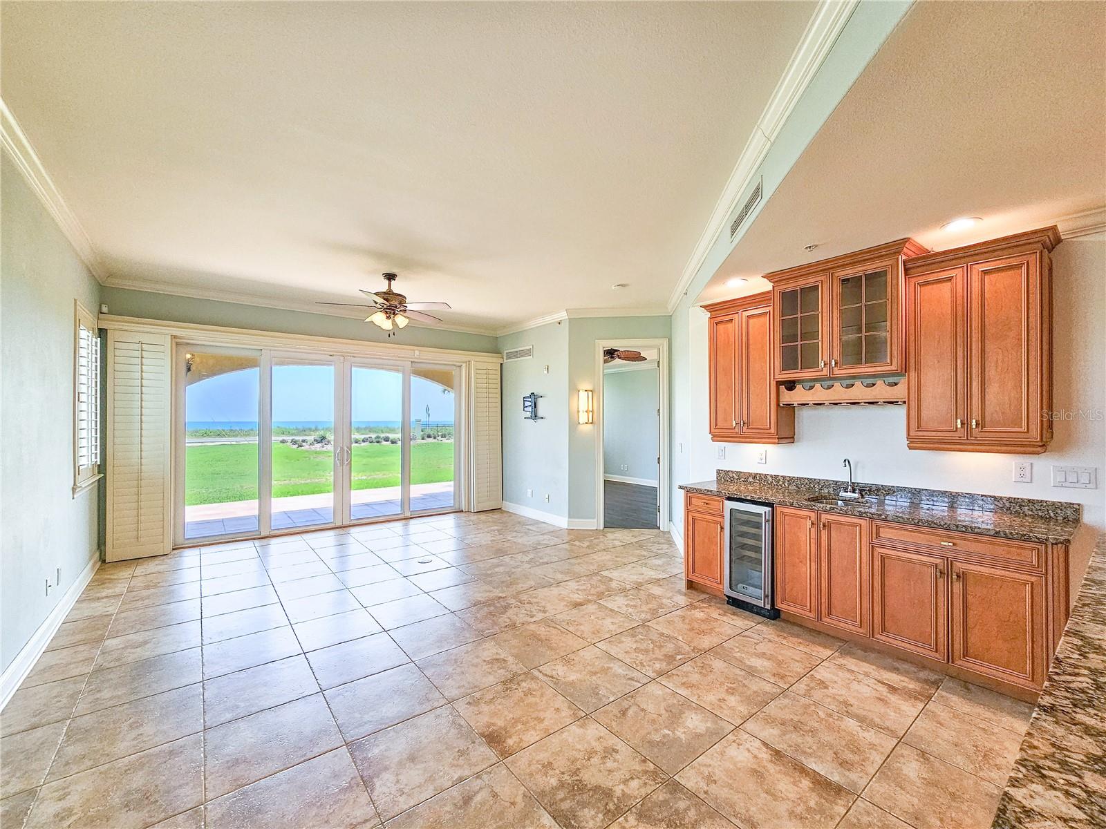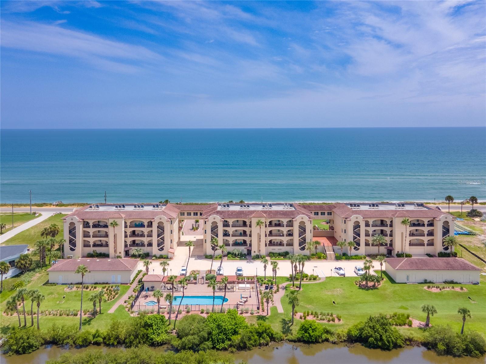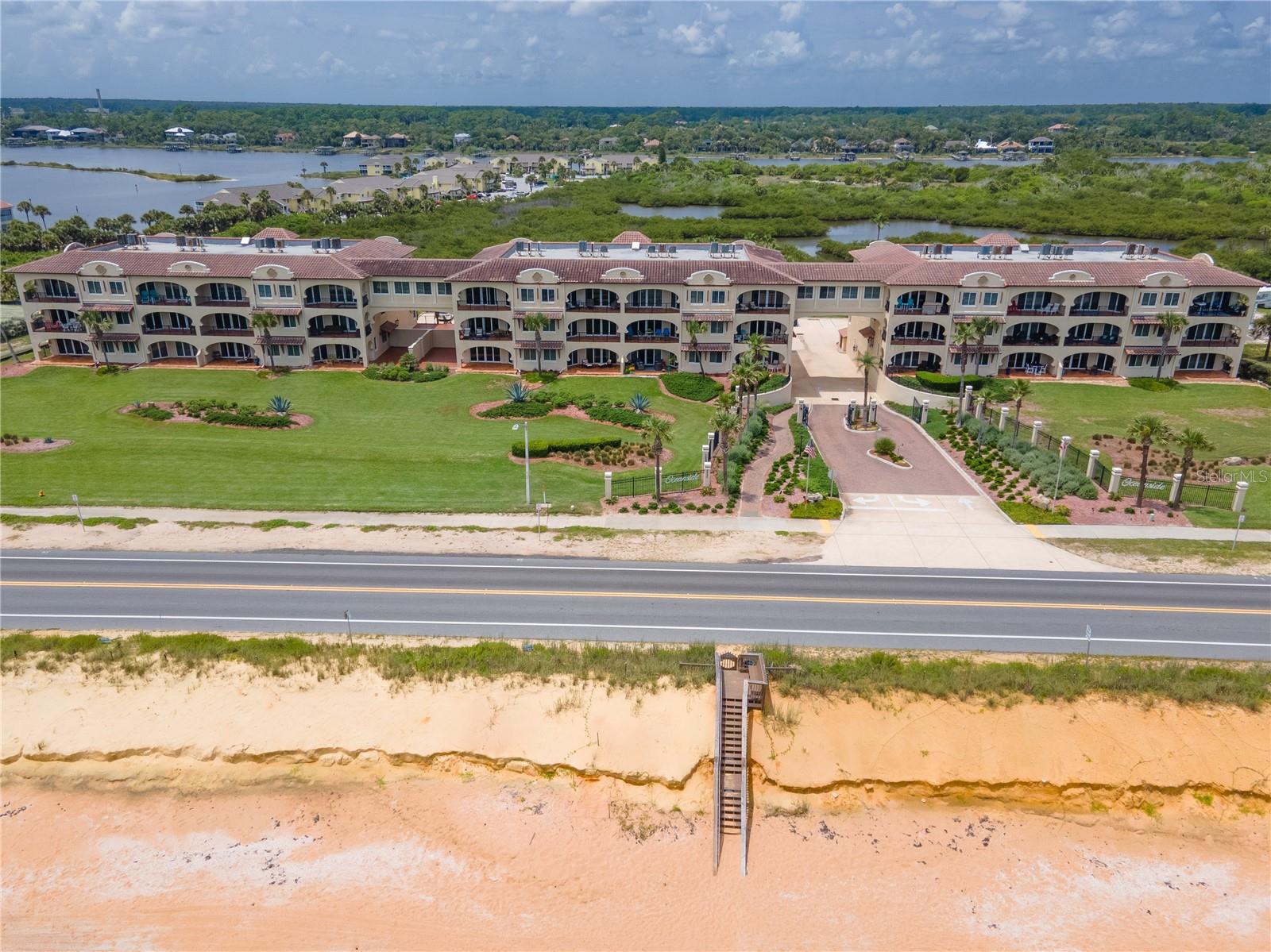 Great price improvement on this condo with magnificent ocean views! 7-day vacation rentals permitted. Luxurious, spacious, first floor 3-bedroom, 3-bathroom end unit condo. Healthy HOA reserves offer financial peace of mind – see attachment. Enjoy the ultimate in beachside relaxation in this meticulously maintained condominium at Oceanside on the beautiful north end of Flagler Beach. Oceanside is well known as the very best condominium community in all of Flagler Beach. Your beach access offers a private walk-over just steps from your large, covered patio. A lovely, heated pool and spa features an expansive deck space. Intracoastal Waterway access is available from the kayak launch. Walking in from the covered entry, ocean views and natural light flood the open living space. Subtle beach tones in the travertine floor tiles and paint set a coastal mood. Ten-foot ceilings and crown moldings, custom plantation shutters and designer-style gold lighting fixtures add contemporary elegance. A large kitchen features solid wood cabinetry and granite countertops with a breakfast bar. Stainless-steel appliances include a built-in wall microwave and oven. The adjacent dining nook offers space for a large dining table and the wet bar with wine refrigerator is perfect for entertaining. The primary bedroom features ocean views and luxury vinyl plank flooring. A jetted soaking tub, walk-in tiled shower, private water closet, dual vanity and large walk-in closet complete the master suite. The split floor plan offers 2 additional bedrooms, each with a full bath, providing privacy and comfort for family and visitors. A laundry room with ample storage, countertops and utility sink complete the unit. This well insulated condo with hurricane impact glass provides security and energy efficiency. 2 designated parking spots plus locked storage are in the garage below. This community is pet friendly, allowing 2 pets per unit. Washington Oaks Gardens State Park, Marineland, a boat launch and many other parks and trails offer recreation. Downtown Flagler Beach invites to you walk, bike or drive under a mile and easily stroll to the dozens of unique eateries and shops, the beachside boardwalk and pier. Palm Coast offers shopping and services in a concentrated district just a short drive over the bridge. Daytona Beach is a 23-mile drive south, with an International Airport, more shopping and all the excitement that Daytona Beach is famous for. Historic St. Augustine is a stunningly beautiful 30-mile drive north on A1A, through the Matanzas Inlet area and beachside towns along the way. Make this wonderful condo your home and enjoy all that this amazing coastal area offers.