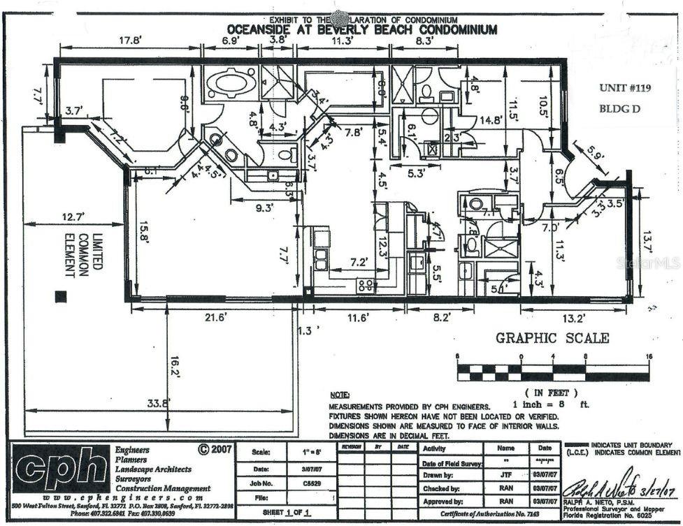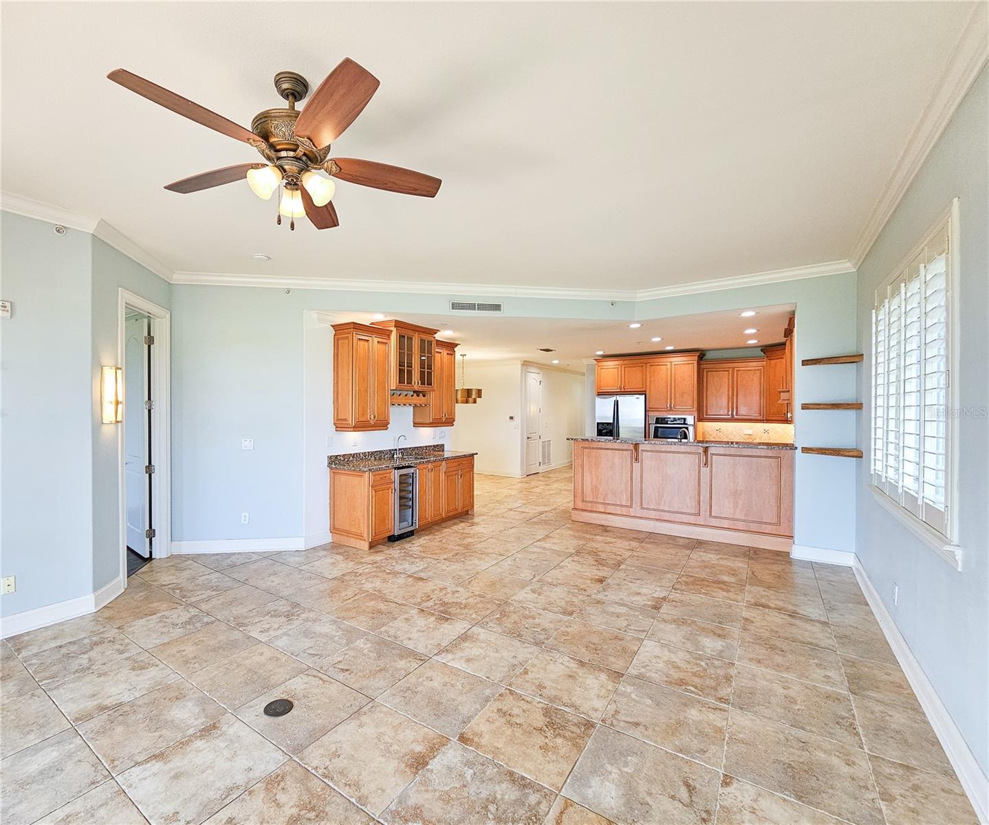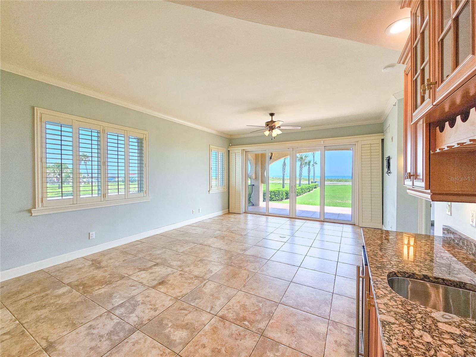Great price improvement on this condo with magnificent ocean views! 7-day vacation rentals permitted. Luxurious, spacious, first floor 3-bedroom, 3-bathroom end unit condo. Healthy HOA reserves offer financial peace of mind – see attachment. Enjoy the ultimate in beachside relaxation in this meticulously maintained condominium at Oceanside on the beautiful north end of Flagler Beach. Oceanside is well known as the very best condominium community in all of Flagler Beach. Your beach access offers a private walk-over just steps from your large, covered patio. A lovely, heated pool and spa features an expansive deck space. Intracoastal Waterway access is available from the kayak launch. Walking in from the covered entry, ocean views and natural light flood the open living space. Subtle beach tones in the travertine floor tiles and paint set a coastal mood. Ten-foot ceilings and crown moldings, custom plantation shutters and designer-style gold lighting fixtures add contemporary elegance. A large kitchen features solid wood cabinetry and granite countertops with a breakfast bar. Stainless-steel appliances include a built-in wall microwave and oven. The adjacent dining nook offers space for a large dining table and the wet bar with wine refrigerator is perfect for entertaining. The primary bedroom features ocean views and luxury vinyl plank flooring. A jetted soaking tub, walk-in tiled shower, private water closet, dual vanity and large walk-in closet complete the master suite. The split floor plan offers 2 additional bedrooms, each with a full bath, providing privacy and comfort for family and visitors. A laundry room with ample storage, countertops and utility sink complete the unit. This well insulated condo with hurricane impact glass provides security and energy efficiency. 2 designated parking spots plus locked storage are in the garage below. This community is pet friendly, allowing 2 pets per unit. Washington Oaks Gardens State Park, Marineland, a boat launch and many other parks and trails offer recreation. Downtown Flagler Beach invites to you walk, bike or drive under a mile and easily stroll to the dozens of unique eateries and shops, the beachside boardwalk and pier. Palm Coast offers shopping and services in a concentrated district just a short drive over the bridge. Daytona Beach is a 23-mile drive south, with an International Airport, more shopping and all the excitement that Daytona Beach is famous for. Historic St. Augustine is a stunningly beautiful 30-mile drive north on A1A, through the Matanzas Inlet area and beachside towns along the way. Make this wonderful condo your home and enjoy all that this amazing coastal area offers.
