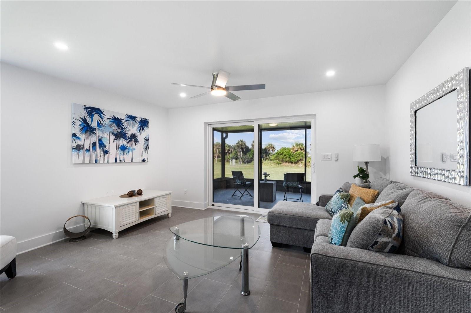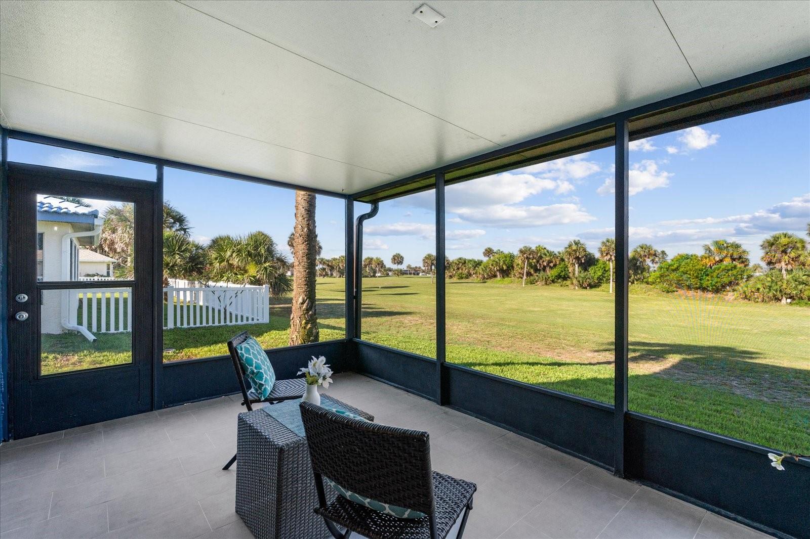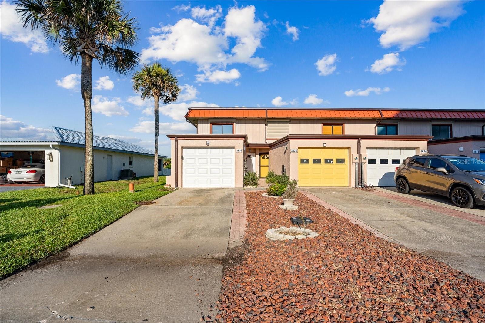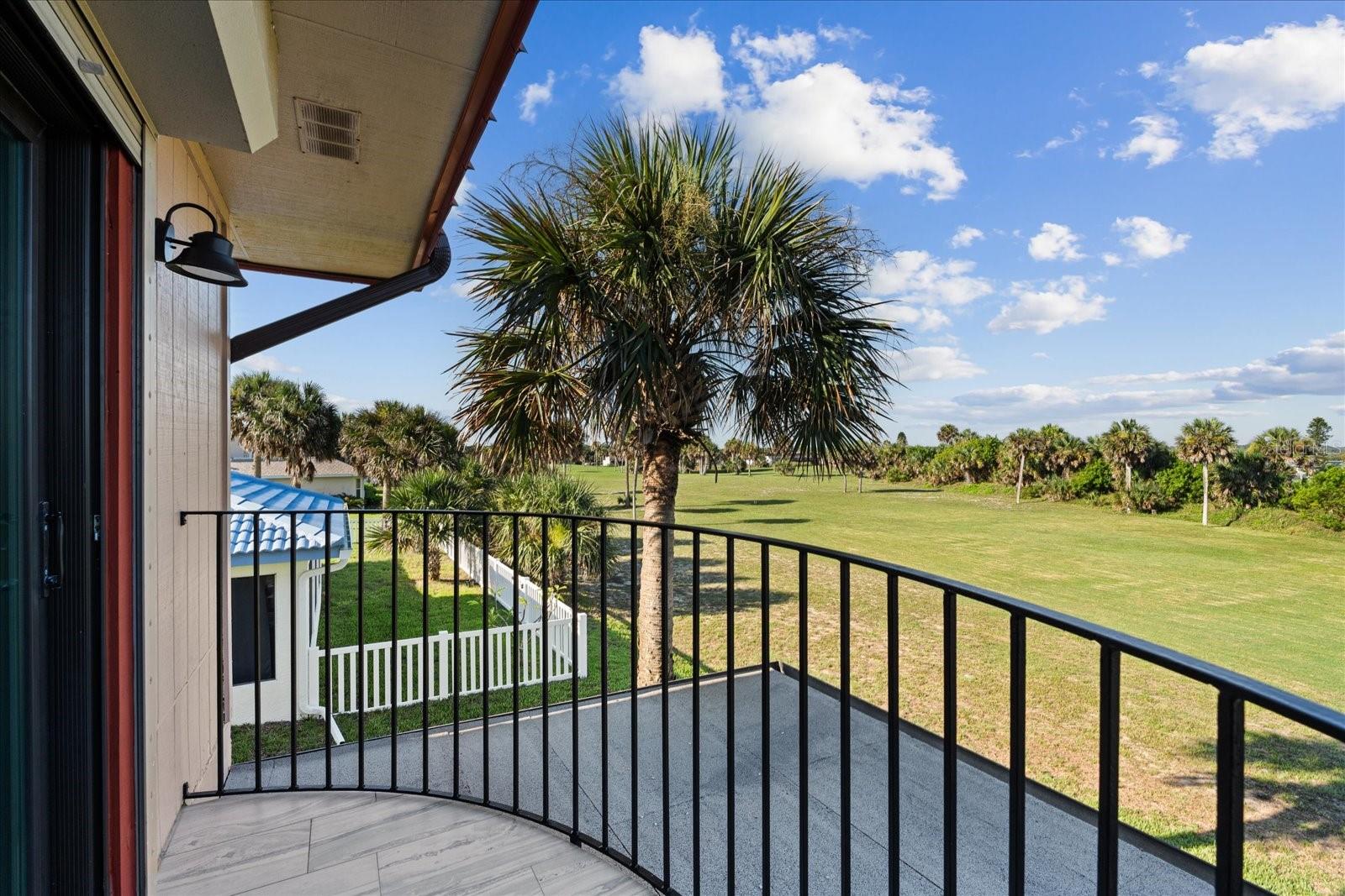Few cities charm to the extent of Flagler Beach, and this stunning end-unit townhome located there is no exception! From the moment you step through the front door, you’ll be captivated by the luxurious renovations and high-quality finishes. This townhome offers a complete top-to-bottom renovation, featuring top-of-the-line designer tile throughout the lower living area and all bathrooms. The kitchen is a chef's dream, with a gorgeous backsplash, pot filler, built-in oven, counter cooktop, and a huge island perfect for entertaining or meal preparation. Custom cabinetry with soft-close features and granite countertops add a touch of elegance. The home also features a wet bar and a stainless steel over-range vent hood. Step out onto the rear screened patio, overlooking the first hole of the golf course, and enjoy the ocean breezes with your morning coffee or soak up the sunset with a glass of wine in this peaceful setting each evening. The home includes two bedroom suites, each with its own spa-like full bathroom, offering a retreat of luxury and comfort. The upstairs balcony off the second bedroom suite provides a lovely view of the golf course. Additional features include a one-car garage for parking and extra storage for your beach gear and golf clubs, elegant fixtures, ceiling beam, and decorative built-ins on the custom-designed staircase leading to the second floor. The primary suite offers lovely peekaboo ocean views, enhancing the serene atmosphere of this home. A tankless hot water heater ensures efficiency and convenience. This beautiful townhome is both cozy and spacious enough for year-round living or perfect as a part-time vacation residence, just steps across the street from breathtaking Flagler Beach. Conveniently located between Gamble Rogers and North Peninsula state parks, outdoor enthusiasts can enjoy activities such as bicycling, birding, boating, camping, fishing, hiking, paddling, swimming, and wildlife viewing. You’re just a short drive away from the center of Flagler Beach, where a variety of dining options, shopping, craft brewery, ice cream shops, and breakfast spots await. With this one-of-a-kind townhouse, experience all the special touches that make this home uniquely elegant and inviting. Don’t miss the opportunity to make this remarkable townhome your own!