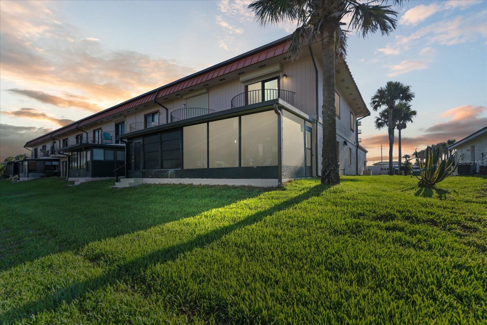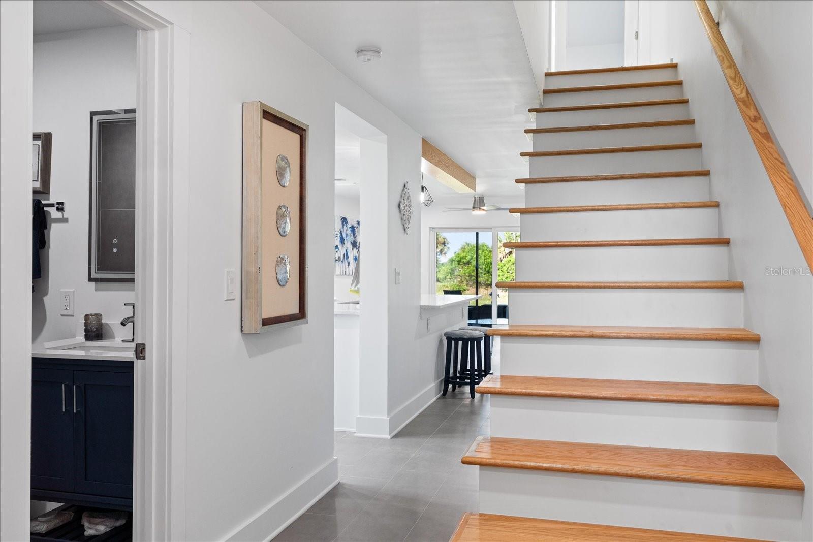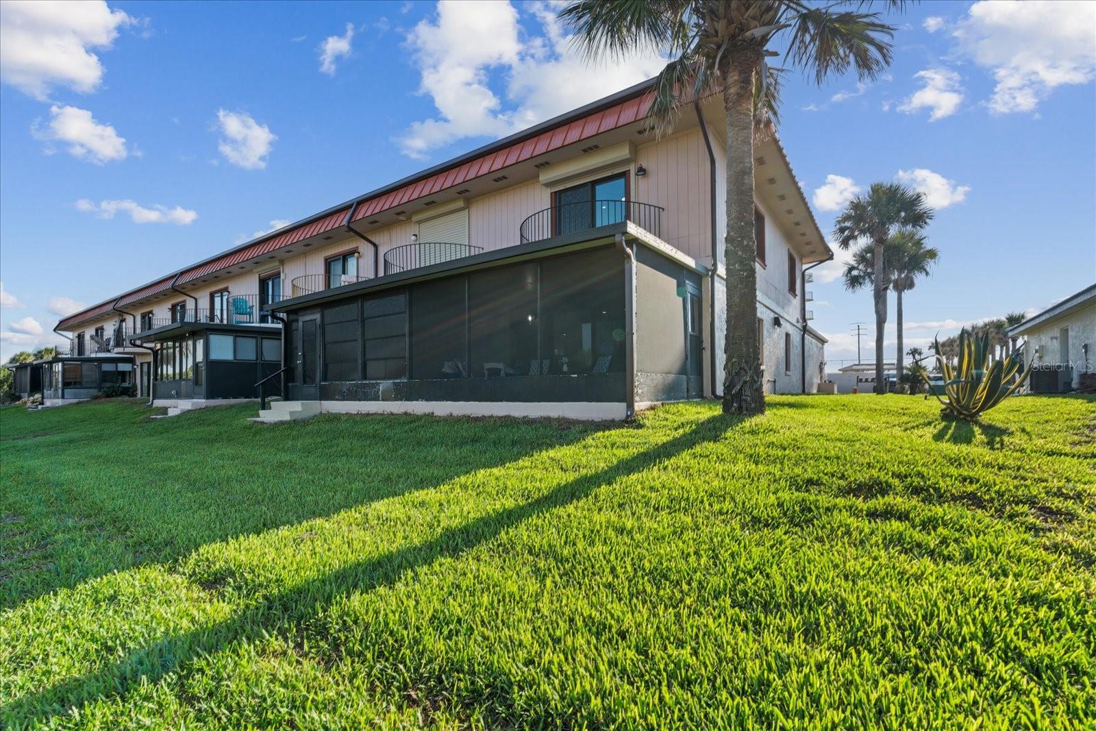 Few cities charm to the extent of Flagler Beach, and this stunning end-unit townhome located there is no exception! From the moment you step through the front door, you’ll be captivated by the luxurious renovations and high-quality finishes. This townhome offers a complete top-to-bottom renovation, featuring top-of-the-line designer tile throughout the lower living area and all bathrooms. The kitchen is a chef's dream, with a gorgeous backsplash, pot filler, built-in oven, counter cooktop, and a huge island perfect for entertaining or meal preparation. Custom cabinetry with soft-close features and granite countertops add a touch of elegance. The home also features a wet bar and a stainless steel over-range vent hood. Step out onto the rear screened patio, overlooking the first hole of the golf course, and enjoy the ocean breezes with your morning coffee or soak up the sunset with a glass of wine in this peaceful setting each evening. The home includes two bedroom suites, each with its own spa-like full bathroom, offering a retreat of luxury and comfort. The upstairs balcony off the second bedroom suite provides a lovely view of the golf course. Additional features include a one-car garage for parking and extra storage for your beach gear and golf clubs, elegant fixtures, ceiling beam, and decorative built-ins on the custom-designed staircase leading to the second floor. The primary suite offers lovely peekaboo ocean views, enhancing the serene atmosphere of this home. A tankless hot water heater ensures efficiency and convenience. This beautiful townhome is both cozy and spacious enough for year-round living or perfect as a part-time vacation residence, just steps across the street from breathtaking Flagler Beach. Conveniently located between Gamble Rogers and North Peninsula state parks, outdoor enthusiasts can enjoy activities such as bicycling, birding, boating, camping, fishing, hiking, paddling, swimming, and wildlife viewing. You’re just a short drive away from the center of Flagler Beach, where a variety of dining options, shopping, craft brewery, ice cream shops, and breakfast spots await. With this one-of-a-kind townhouse, experience all the special touches that make this home uniquely elegant and inviting. Don’t miss the opportunity to make this remarkable townhome your own!