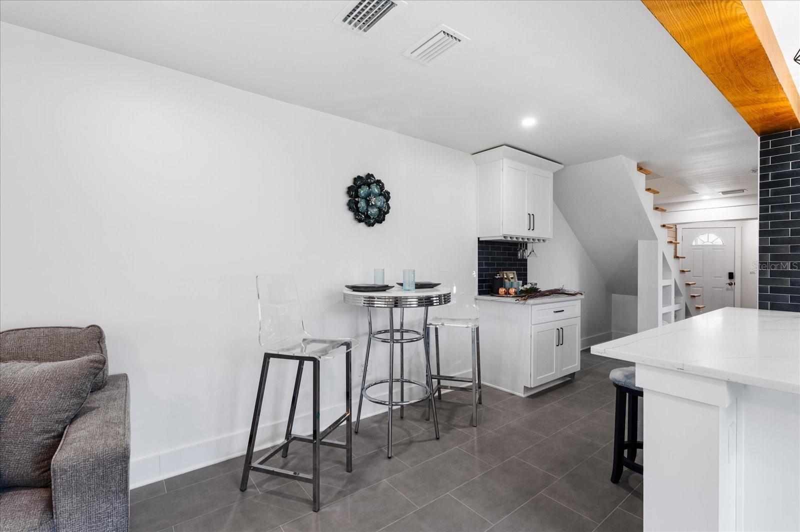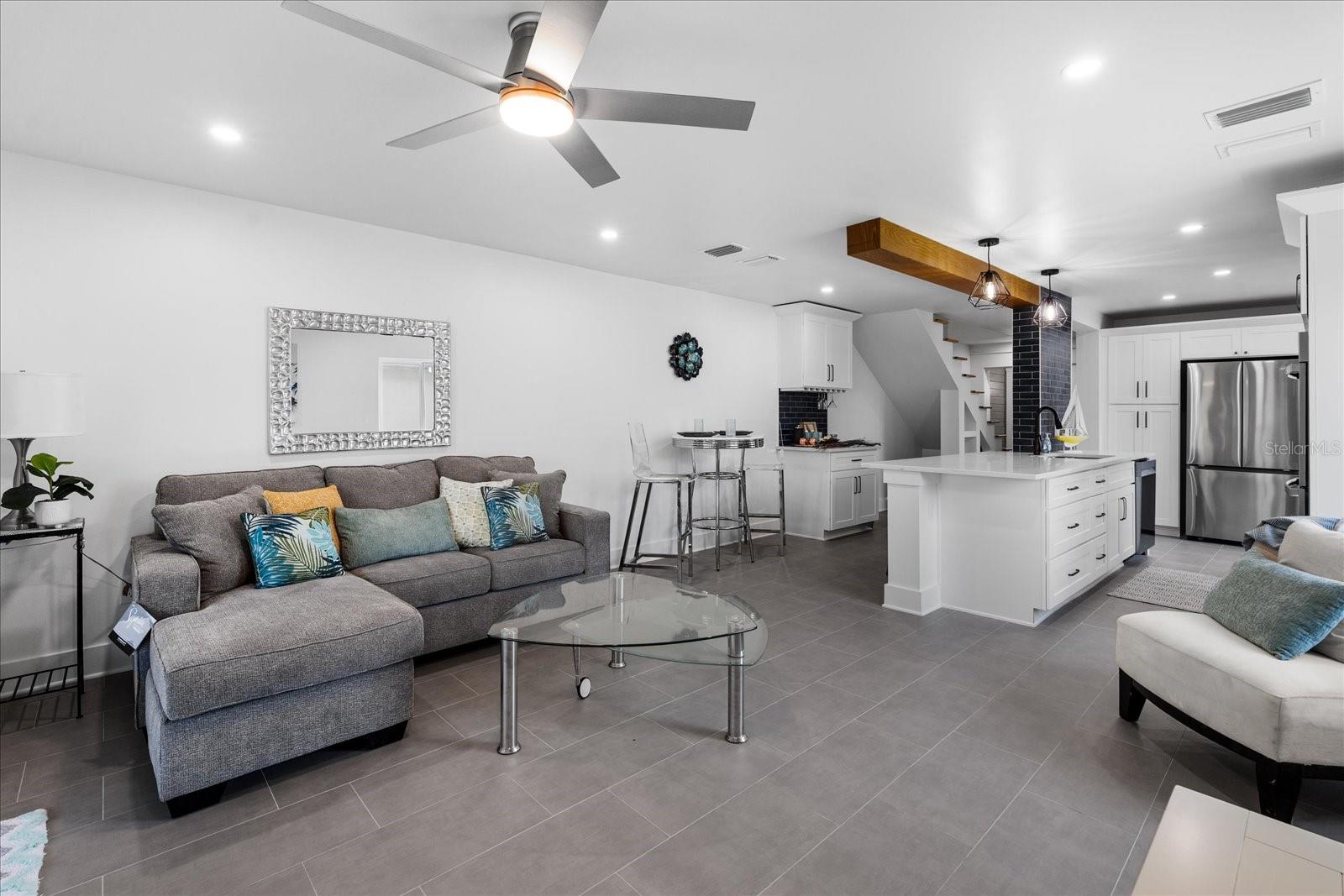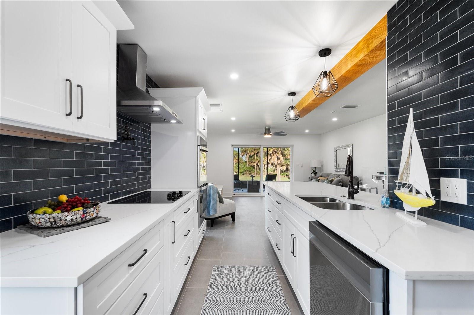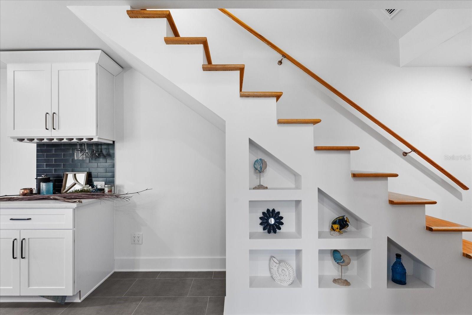 Few cities charm to the extent of Flagler Beach, and this stunning end-unit townhome located there is no exception! From the moment you step through the front door, you’ll be captivated by the luxurious renovations and high-quality finishes. This townhome offers a complete top-to-bottom renovation, featuring top-of-the-line designer tile throughout the lower living area and all bathrooms. The kitchen is a chef's dream, with a gorgeous backsplash, pot filler, built-in oven, counter cooktop, and a huge island perfect for entertaining or meal preparation. Custom cabinetry with soft-close features and granite countertops add a touch of elegance. The home also features a wet bar and a stainless steel over-range vent hood. Step out onto the rear screened patio, overlooking the first hole of the golf course, and enjoy the ocean breezes with your morning coffee or soak up the sunset with a glass of wine in this peaceful setting each evening. The home includes two bedroom suites, each with its own spa-like full bathroom, offering a retreat of luxury and comfort. The upstairs balcony off the second bedroom suite provides a lovely view of the golf course. Additional features include a one-car garage for parking and extra storage for your beach gear and golf clubs, elegant fixtures, ceiling beam, and decorative built-ins on the custom-designed staircase leading to the second floor. The primary suite offers lovely peekaboo ocean views, enhancing the serene atmosphere of this home. A tankless hot water heater ensures efficiency and convenience. This beautiful townhome is both cozy and spacious enough for year-round living or perfect as a part-time vacation residence, just steps across the street from breathtaking Flagler Beach. Conveniently located between Gamble Rogers and North Peninsula state parks, outdoor enthusiasts can enjoy activities such as bicycling, birding, boating, camping, fishing, hiking, paddling, swimming, and wildlife viewing. You’re just a short drive away from the center of Flagler Beach, where a variety of dining options, shopping, craft brewery, ice cream shops, and breakfast spots await. With this one-of-a-kind townhouse, experience all the special touches that make this home uniquely elegant and inviting. Don’t miss the opportunity to make this remarkable townhome your own!