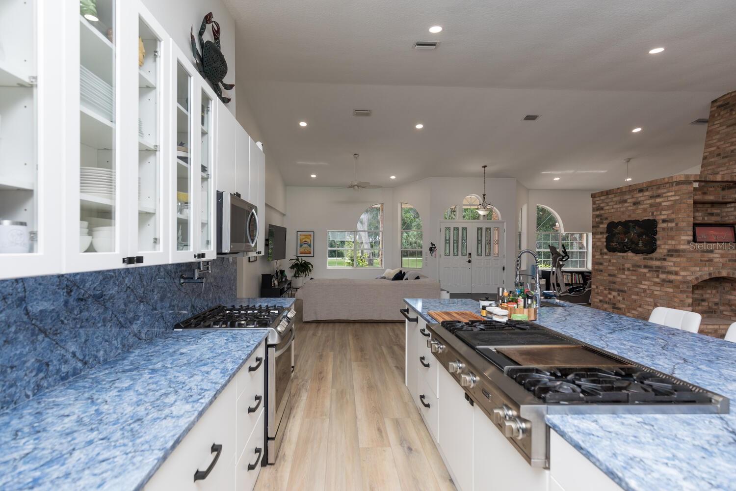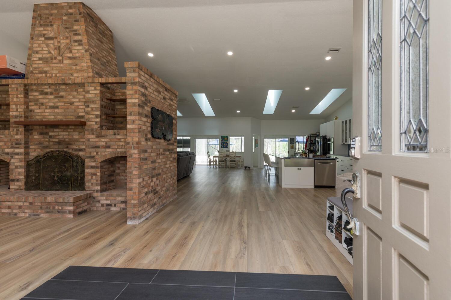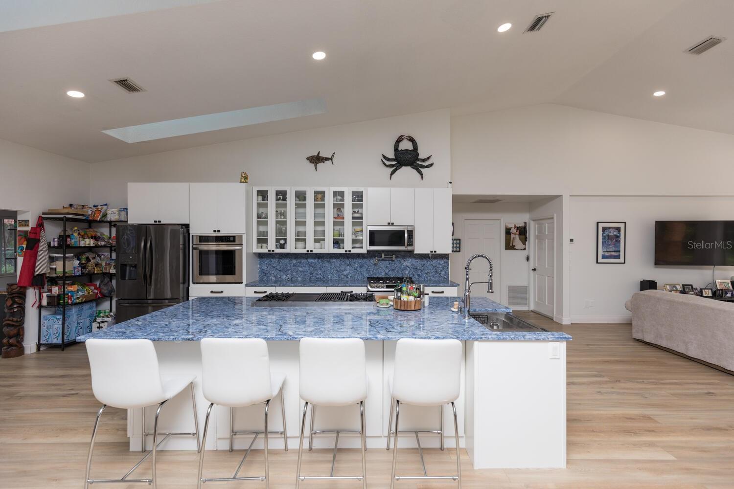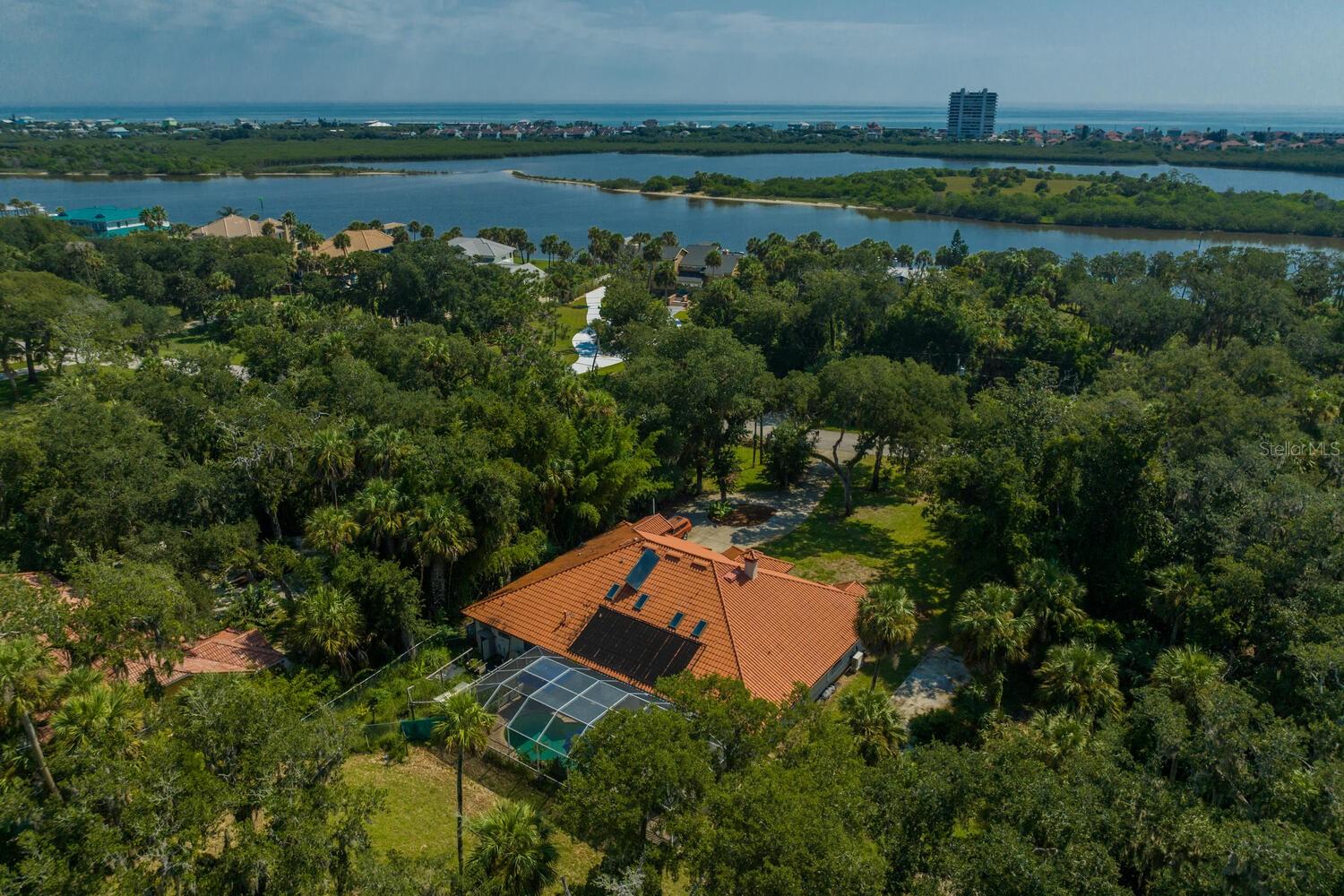 Estuary-front pool home located across from the Intracoastal Waterway on prestigious Lambert Ave offering privacy, picturesque natural setting and wildlife. NEW ROOF COMING MAY 2025 - One level with 4 bedrooms, 3 baths, 3520sf and open floor plan, this beautifully renovated home has much natural light from the multitude of oversized windows and glass doors. NEW Chef’s Kitchen – two ranges, pot filler, two ovens, remodeled with white cabinets and blue quartz tops include drawers and abundant storage options. Display glass cabinets on uppers. 11’x5.5’ kitchen island with farm sink, 48” Viking range and Bosch dishwasher. Enjoy the outdoor space with oversized screened lanai with solar heated saltwater pool overlooking a large backyard leading to the saltwater marsh. Enclosed outdoor shower. Fenced area next to screened lanai may be used for a garden or an enclosed play area for children and pets. Large primary bedroom with large walk-in closet, walk-in shower. Three guest rooms with ample storage and two bathrooms. New 5-ton HVAC and 3 new mini-split AC units in all three guest rooms, Aquasana full house water filter system and salt free conditioner, double sided brick fireplace, new wood grain luxury vinyl floors throughout with no transitions, bar with ice and wine cooler, large laundry room with XL 40”x18” multi-purpose utility sink. "X" Flood zone so flood insurance is NOT required. Parks within walking distance offer tennis/pickleball, soccer field, racket ball court, basketball courts, and skate park, kayak launch and fishing in the Intracoastal. The Atlantic Ocean and beach is just over the bridge. Access to Intracoastal with kayaks/SUP, Flagler Beach restaurants and shops are nearby as well as Publix. Enjoy Florida's serene coastal lifestyle and amazing sunset views! A MUST SEE !