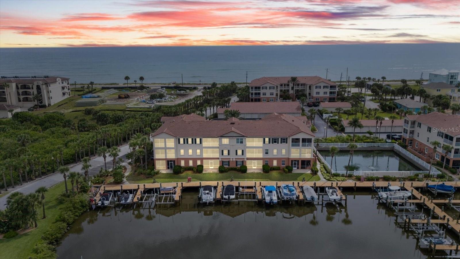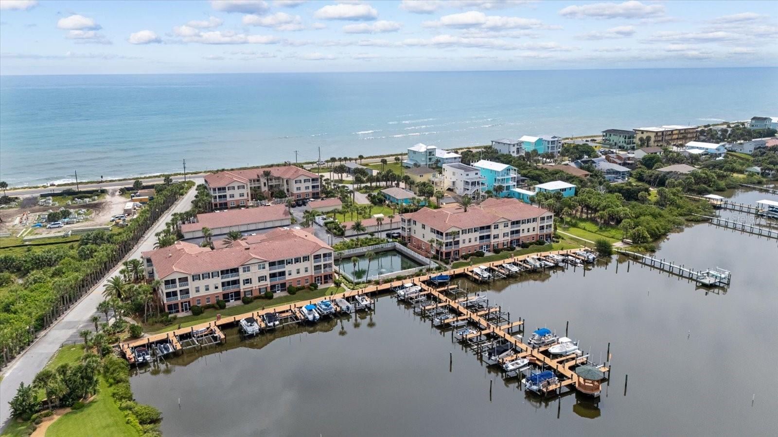 Boaters and Beach Lovers this is the property for you! HIGH AND DRY - NO FLOODING HERE! MOTIVATED SELLER- Marina Bay is one of the very few properties in Florida that is ocean to Intracoastal and has its own marina and you will have your own deeded boat slip. Brand new AC unit and the furniture is negotiable. Marina Bay has it all - wake up and walk across the street to watch the sunrise over the ocean, then jump on your boat and take a ride down the Intracoastal. This area has some of the most beautiful sceneries on the Intracoastal and the ocean. Come home and take a swim in the ocean or dip in the pool and then you can sit under the gazebo and watch the sunset over the Intracoastal while watching the dolphins play. This is an end unit with lots of light on the second floor with a detached garage just outside the condo. This is a two bedroom, two bath condo which has plantation shutters on each window, the floors are engineered hard wood and the kitchen is updated with granite countertops and SS appliance plus a brand new HVAC APRIL 2025. Flagler Beach is known for its small town beach atmosphere where the preferred mode of transportation is via golf cart. Flagler Beach has an abundance of beachside restaurants, bars, coffee houses, ice cream shops and a farmers market on the weekends. Flagler Beach/Palm Coast is also known for its many parks, hiking trails, golf courses and plenty of places for boating, kayaking and fishing. If you are looking for the true Florida lifestyle - this is it! Flagler is a 40 minute drive to the beautiful St. Augustine to the North, a 40 minute drive to Daytona to the South and approximately an hour to Orlando or Jacksonville. Your new Boat slip is #41. Live where most vacation! Monthly condo fees are $985 per month and the condo fees INCLUDE your water, internet and cable bills. Marina fees are $125 per month. Furniture is negotiable.