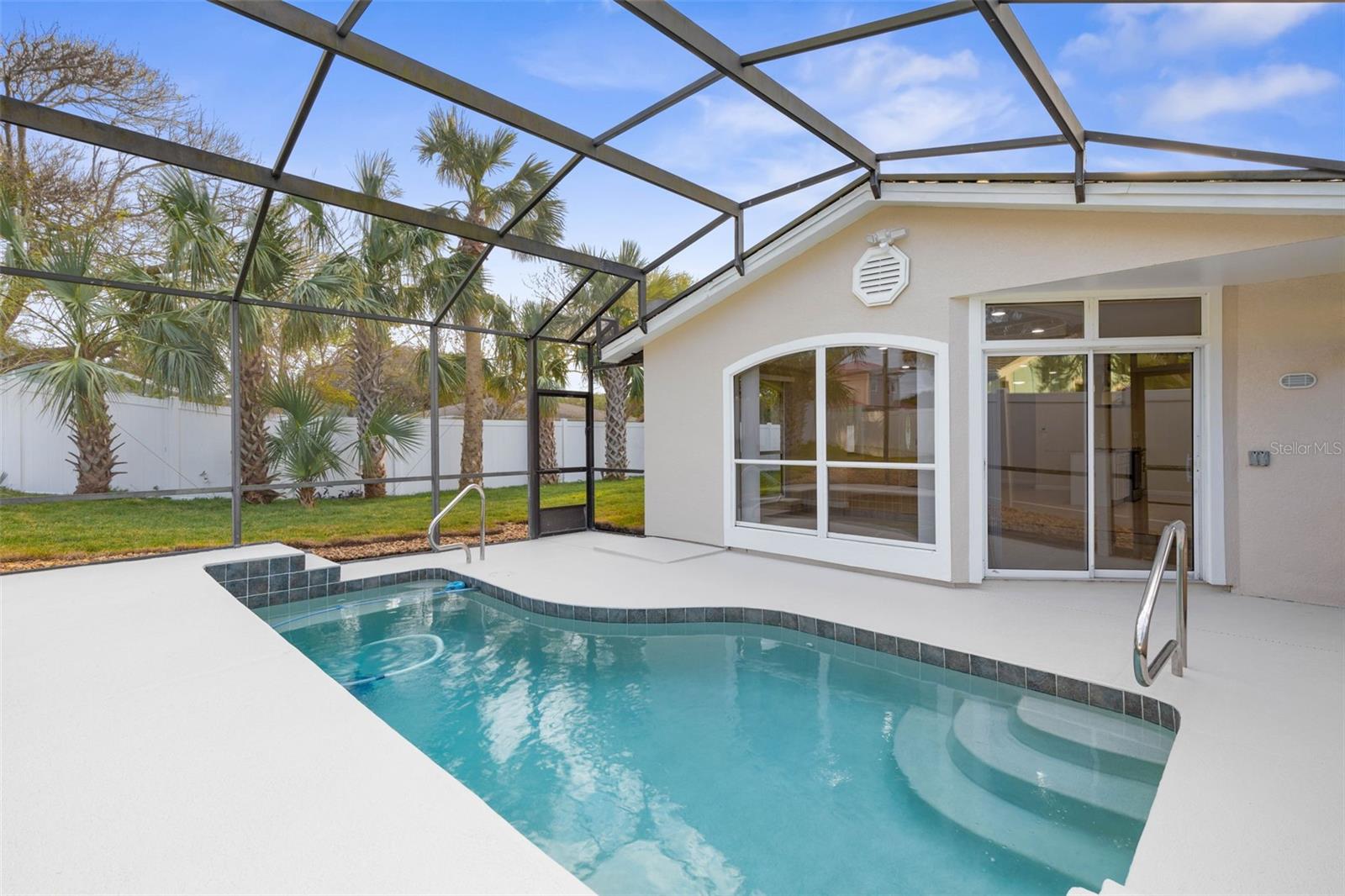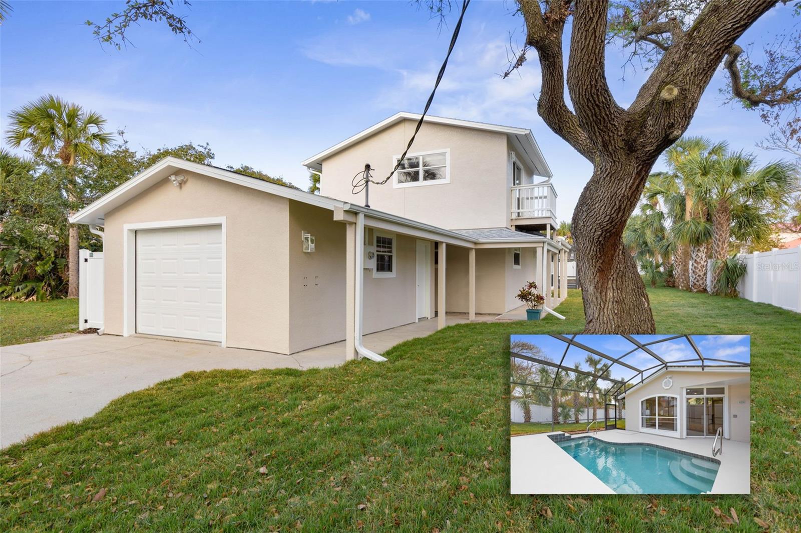 Discover your dream home in the heart of Flagler Beach! This beautifully updated 3-bedroom, 2-bath pool home combines modern upgrades with the charm of coastal living. Situated in a NON-FLOOD ZONE, this property offers peace of mind and stunning curb appeal thanks to its upgraded landscaping, new exterior stucco and paint, fresh new sod, and brand-new vinyl fencing. Inside, you’ll find a newly renovated kitchen, fresh interior paint, and a brand-new HVAC system. A new garage door completes the list of upgrades, ensuring this home is truly move-in ready. The spacious primary suite occupies the upper level, providing a private retreat, while the lower level features two additional guest bedrooms and a full bathroom. Step outside into your own private oasis! The solar-heated pool and screened lanai create the perfect setting for year-round entertaining. The expansive backyard offers plenty of space for outdoor fun and relaxation. This meticulously updated home is a rare gem in Flagler Beach. Don’t miss your chance to own this slice of paradise—schedule your showing today!