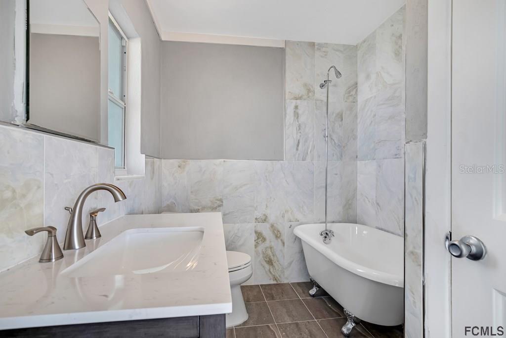 Great opportunity to buy a beach house with ocean views from this spacious three-bedroom,3 1/2 bath two-story home. The new roof and kitchen, including cabinets, countertops, stainless steel appliances, flooring, and bathrooms, are painted inside and out! One bedroom downstairs and two upstairs. Watch the sunrise or relax on the upstairs balcony with direct ocean views! Beautiful views of the Intracoastal Waterway and sunsets from the back deck! Walk across the street to the beach, where you can access an uncrowded beach, or a couple of blocks the other way down to the Intracoastal waterway access. You will love the beachside Florida lifestyle and the quaint city of Flagler Beach - close to shops, restaurants, a fishing pier, and golf courses. Zoning of this property allows the option for short-term rentals, allowing the opportunity to generate income when you can't be at the beach!