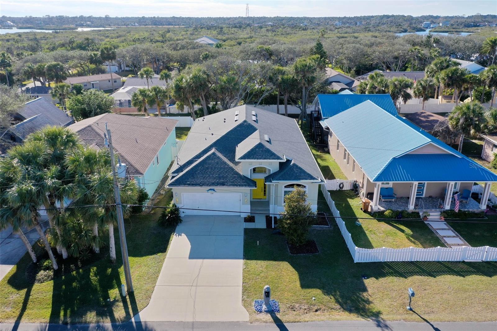 Coastal living awaits in this stunning 3-bedroom, 2-bathroom home with 2,096 square feet of thoughtfully designed living space in the heart of Flagler Beach, just two blocks from the ocean and in a non flood zone. Inside, you'll find a spacious and inviting dining room, perfect for hosting family gatherings or dinner parties. The gourmet kitchen is a centerpiece of the home, featuring sleek stainless steel appliances, stunning granite countertops, elegant cabinetry, and abundant workspace for preparing meals. The home offers ample-sized bedrooms, each with generous closet space, providing comfort and practicality. The luxurious primary suite is a private retreat with a spa-like bathroom that includes a double vanity and a walk in shower. Adjacent to the primary suite is a versatile flex space, ideal for an office, workout room, nursery, or creative studio. Step outside to a large, fully fenced outdoor space that’s perfect for kids, pets, or entertaining. The covered patio provides the ideal spot to relax, unwind, and enjoy the beautiful beach weather and refreshing ocean breezes. Conveniently located just two blocks from the beach and within walking distance to shops and restaurants, this home combines style, comfort, and convenience in one incredible package. Whether you’re lounging at home, exploring the vibrant Flagler Beach community, or strolling along the shoreline, this property delivers the best of coastal living. Don’t miss the opportunity to make this exceptional beachside retreat your forever home!