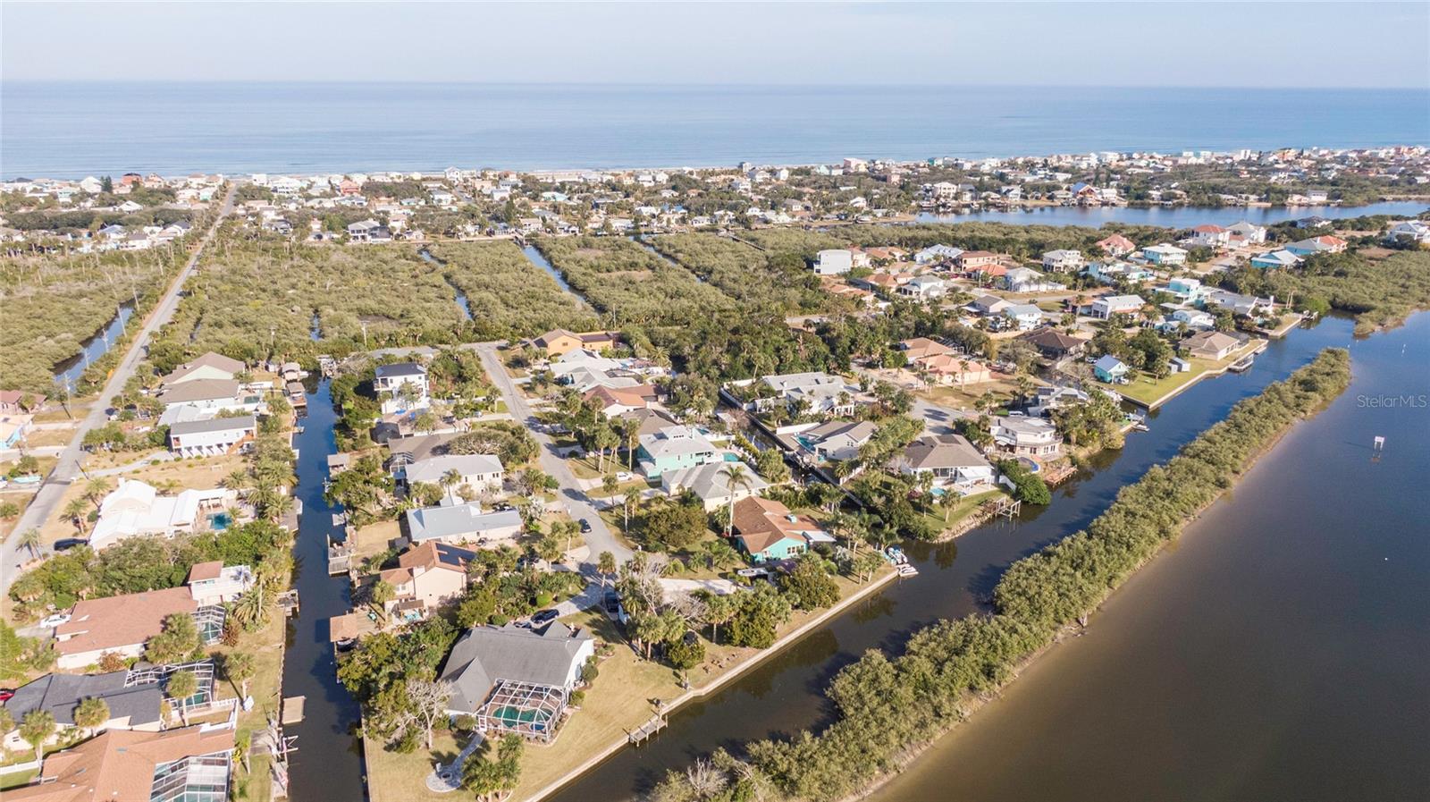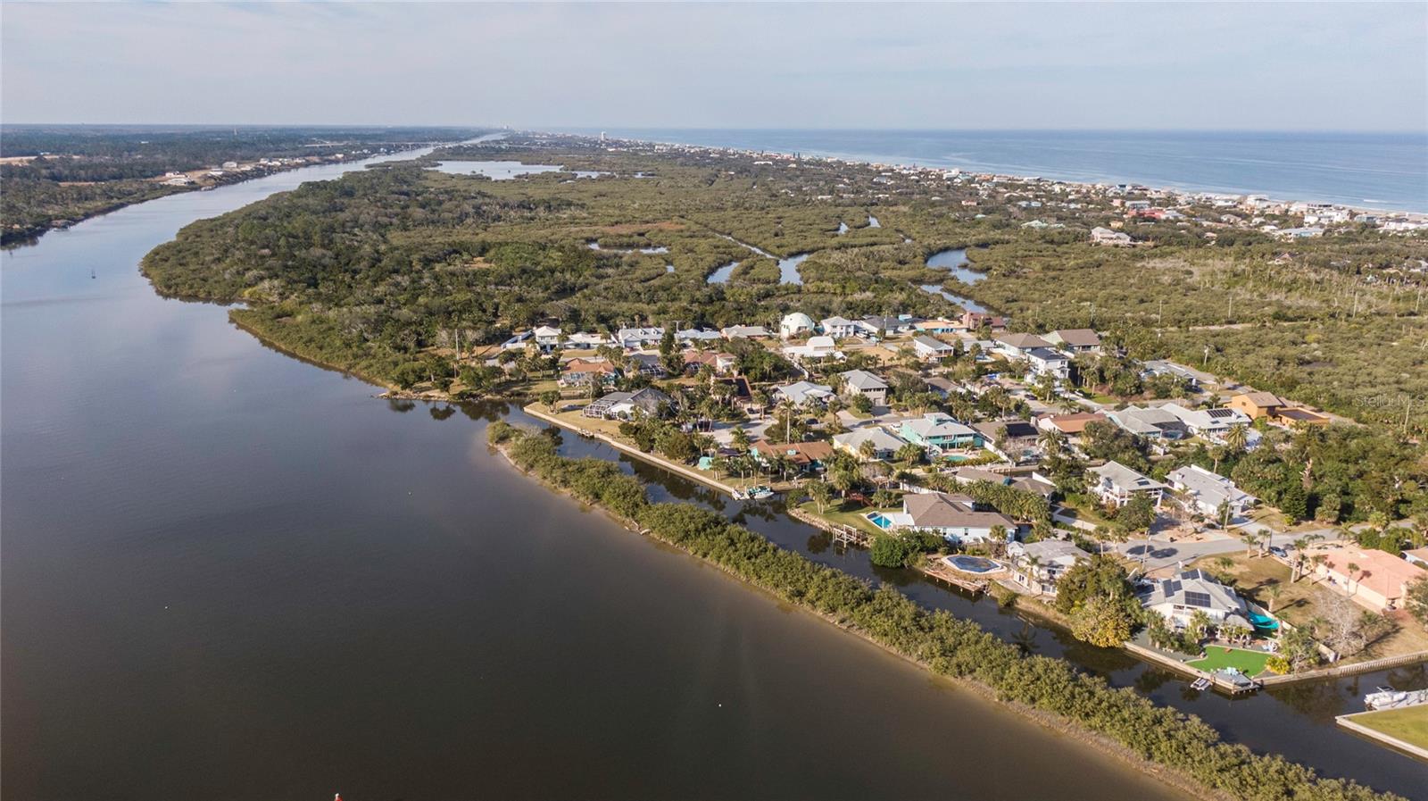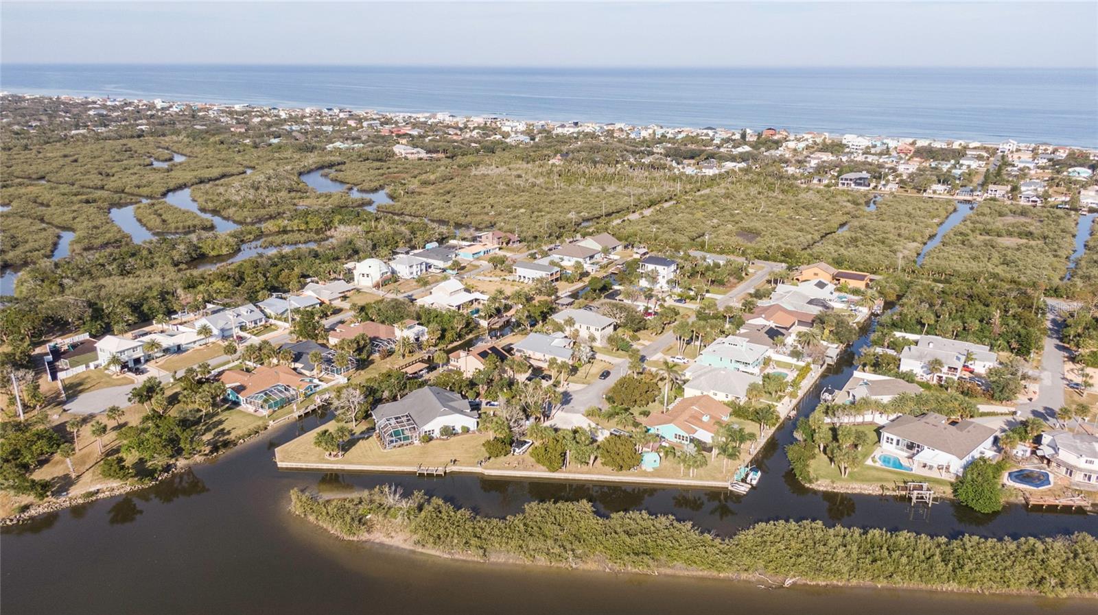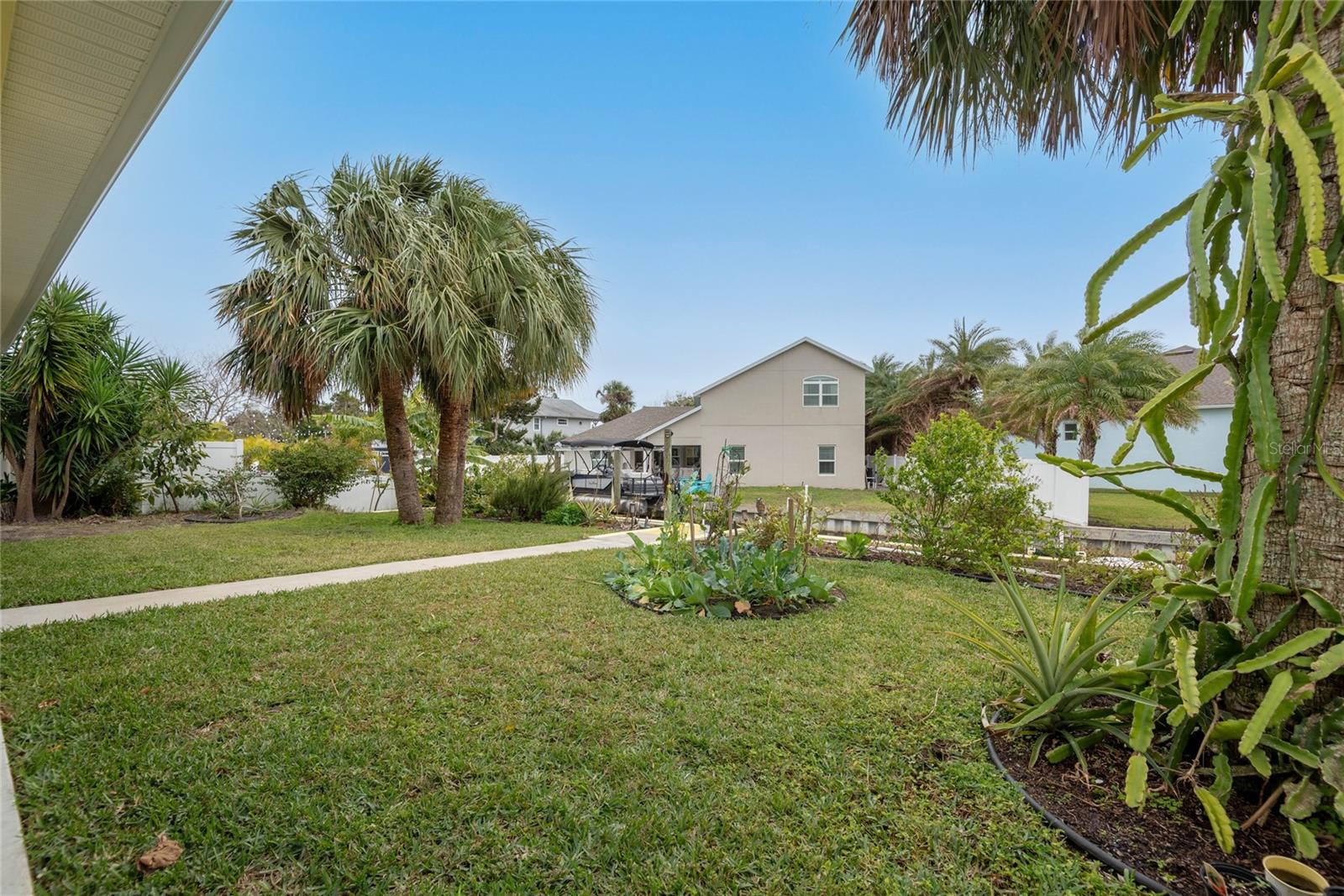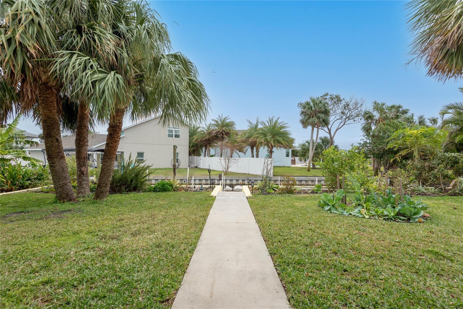 This WELL CARED CUSTOM BUILD 3-bedroom in Flagler Beach, 2-bath home offers 2,013 sq. ft. of living space (3,051 total sq. ft.) and was built in 2015. Located just two houses away from the ICW, this property is in a serene cul-de-sac with low traffic. The oversized 2-car garage and high-and-dry lot provide peace of mind, with no history of flooding and low-cost flood insurance. The open floor plan features a designer kitchen with ample storage, perfect for entertaining. After a long day of work, retreat to a lovely primary bedroom en-suite featuring dual walk-in closets with built in shelving and drawers. Dual vanities and a large tiled walk in shower. Step outside to your private tropical oasis, a nature enthusiast's, gardener's and surfer's paradise surrounded by lush foliage including herbs and fruit trees, ideal for relaxing, birdwatching or hosting guests. A must-see for anyone looking to live the waterfront lifestyle where you can throw a line in your back yard or walk to the beach and of course BOATING FROM YOUR OWN BACKYARD!