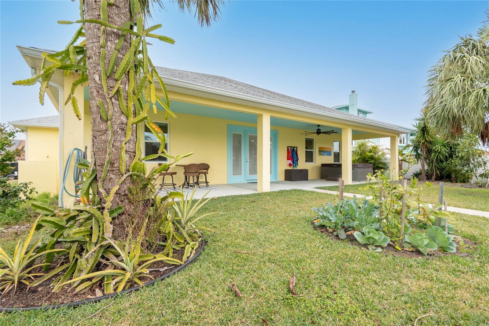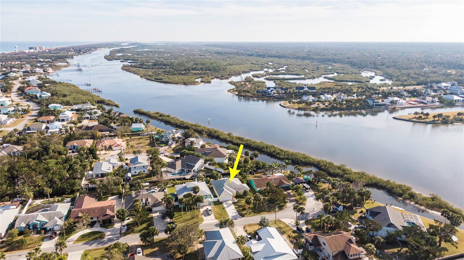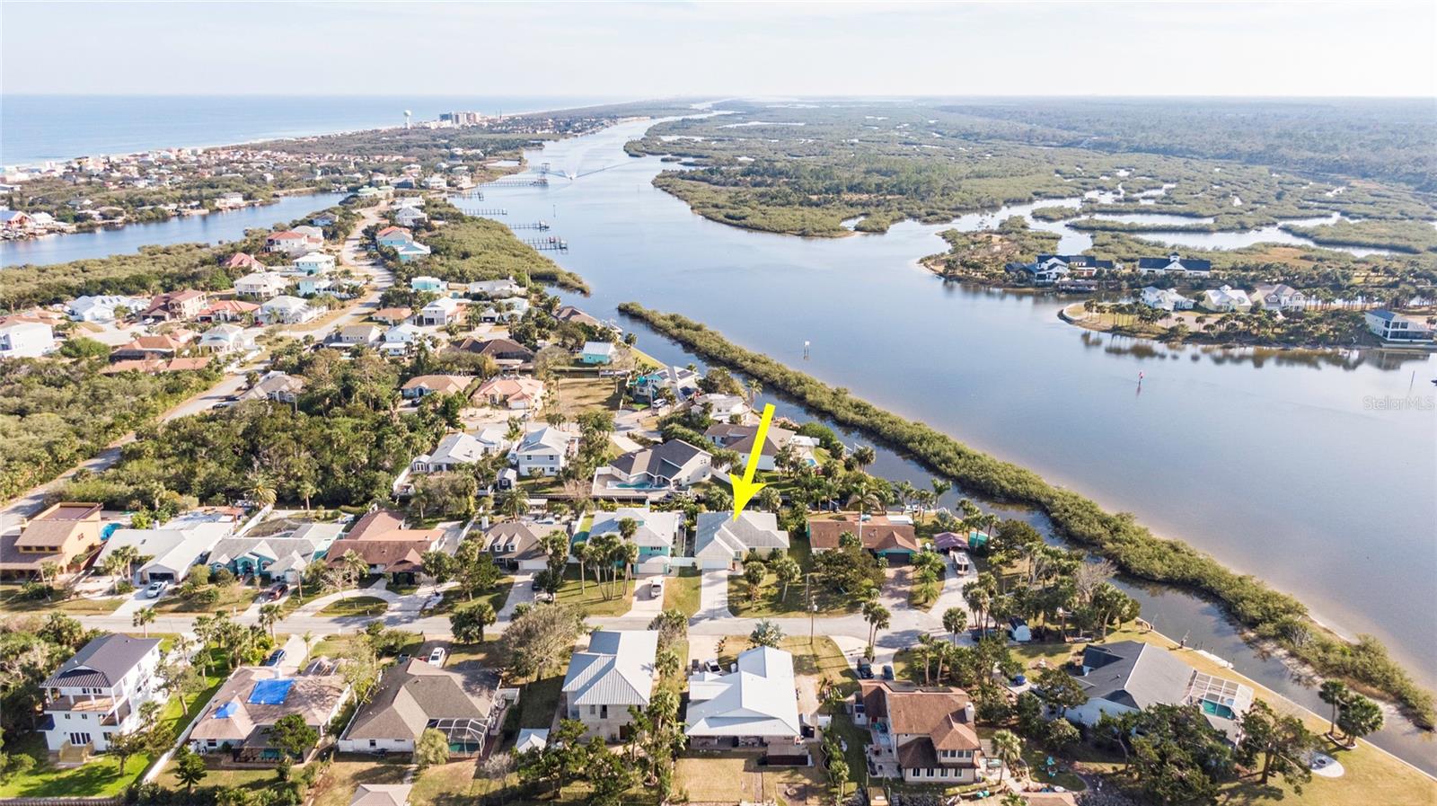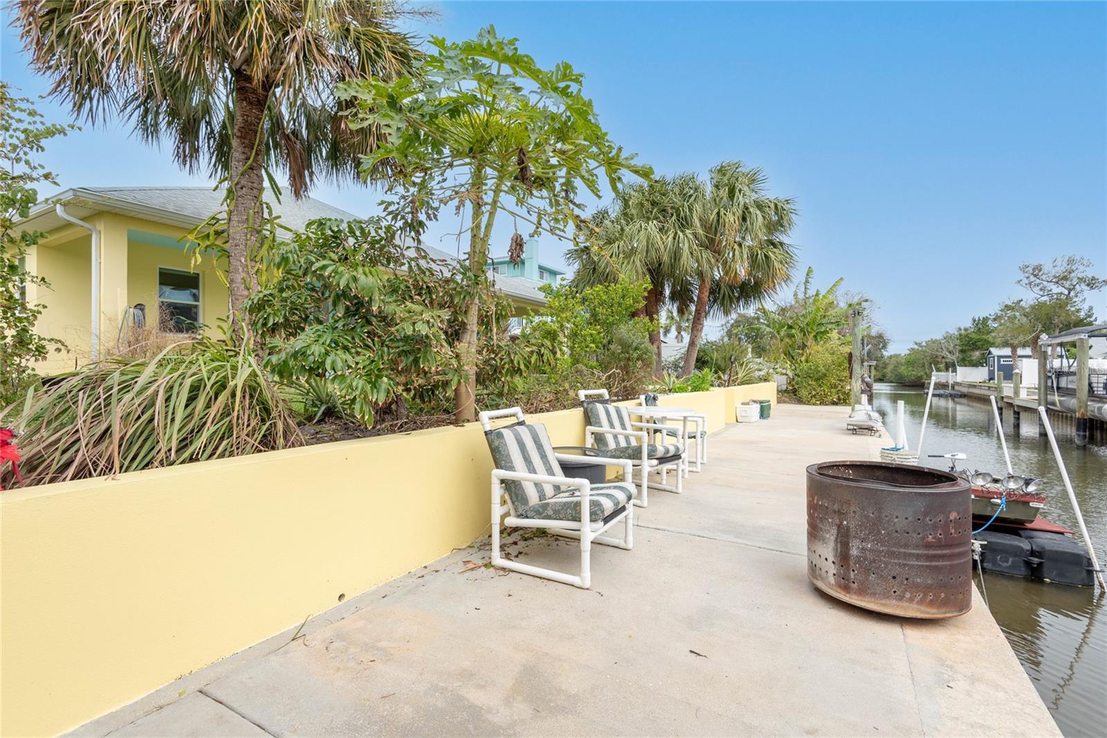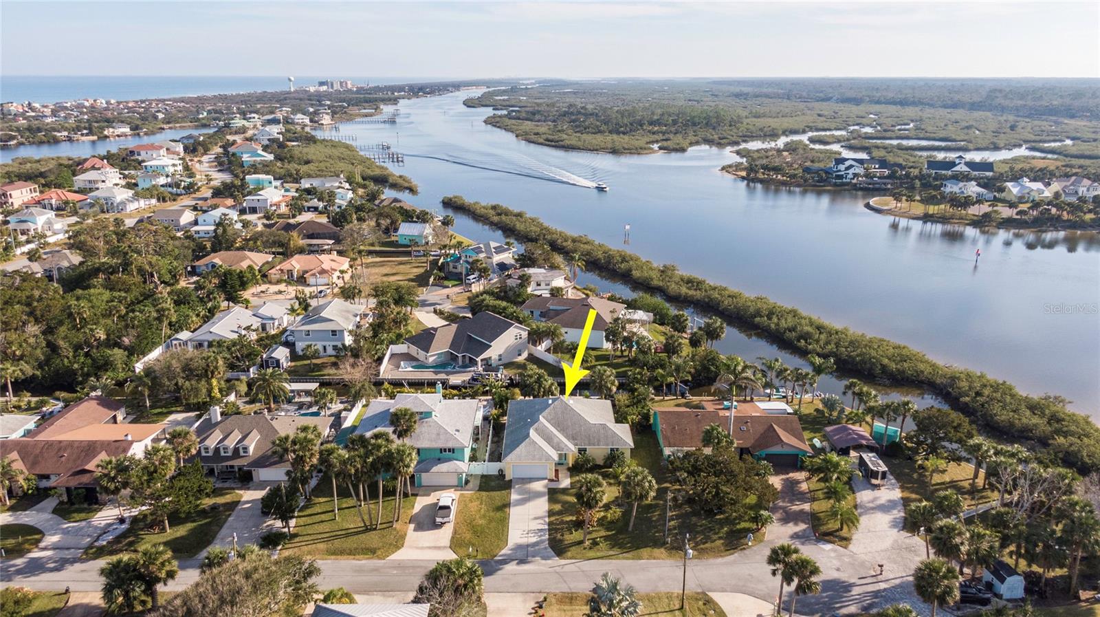 This WELL CARED CUSTOM BUILD 3-bedroom in Flagler Beach, 2-bath home offers 2,013 sq. ft. of living space (3,051 total sq. ft.) and was built in 2015. Located just two houses away from the ICW, this property is in a serene cul-de-sac with low traffic. The oversized 2-car garage and high-and-dry lot provide peace of mind, with no history of flooding and low-cost flood insurance. The open floor plan features a designer kitchen with ample storage, perfect for entertaining. After a long day of work, retreat to a lovely primary bedroom en-suite featuring dual walk-in closets with built in shelving and drawers. Dual vanities and a large tiled walk in shower. Step outside to your private tropical oasis, a nature enthusiast's, gardener's and surfer's paradise surrounded by lush foliage including herbs and fruit trees, ideal for relaxing, birdwatching or hosting guests. A must-see for anyone looking to live the waterfront lifestyle where you can throw a line in your back yard or walk to the beach and of course BOATING FROM YOUR OWN BACKYARD!