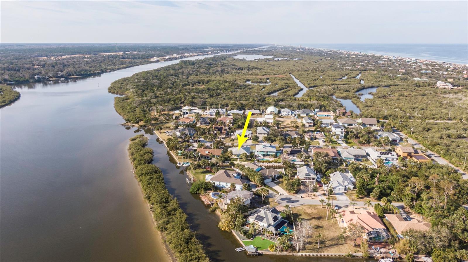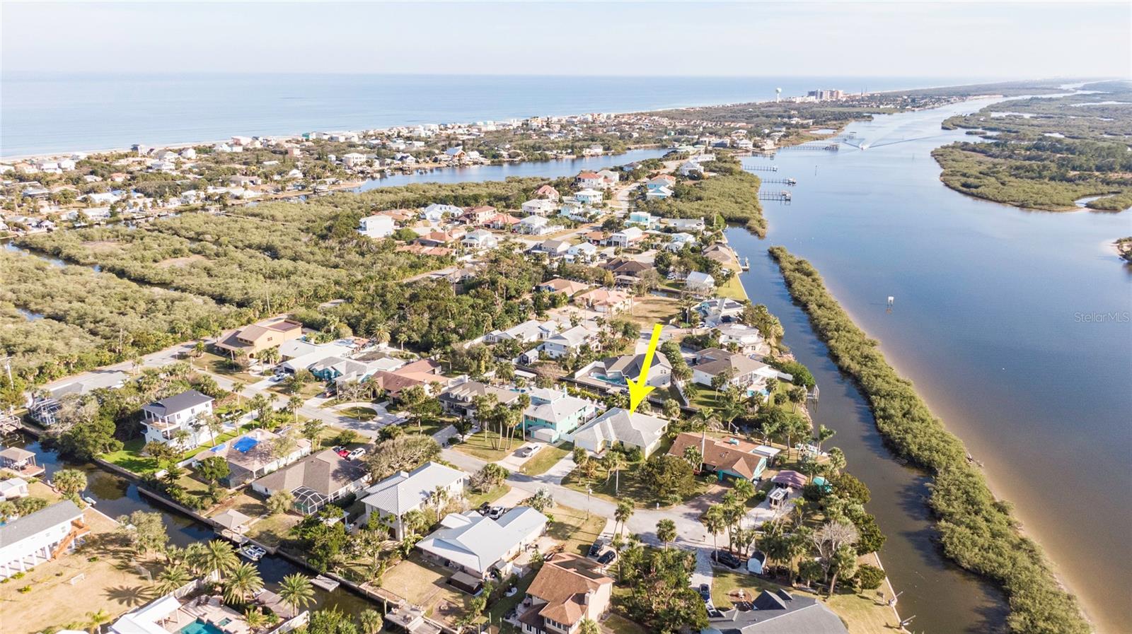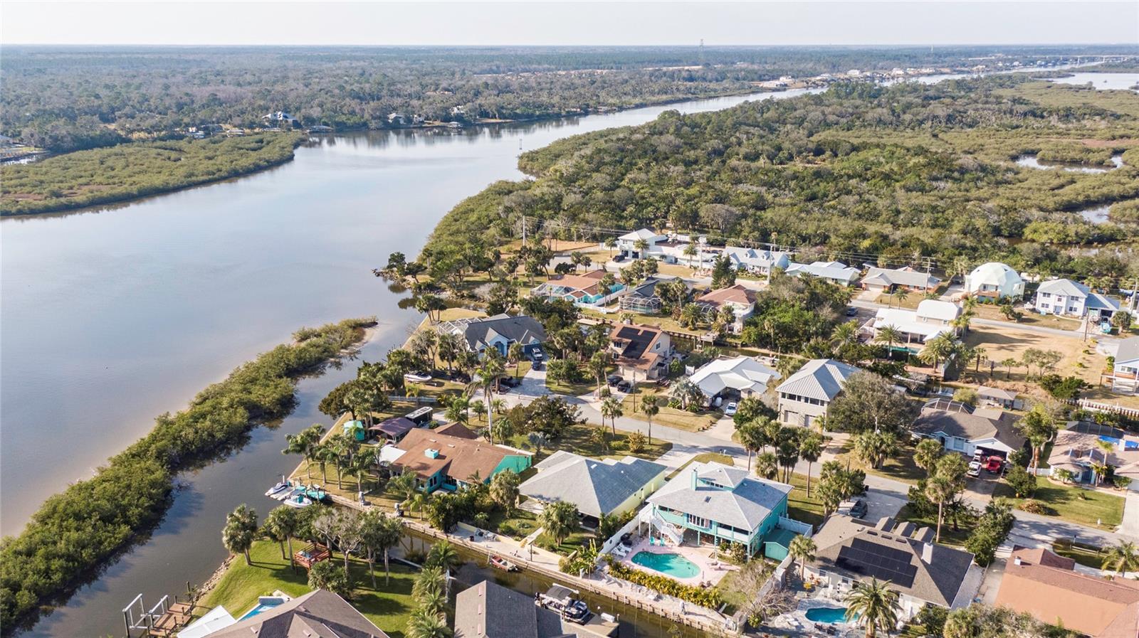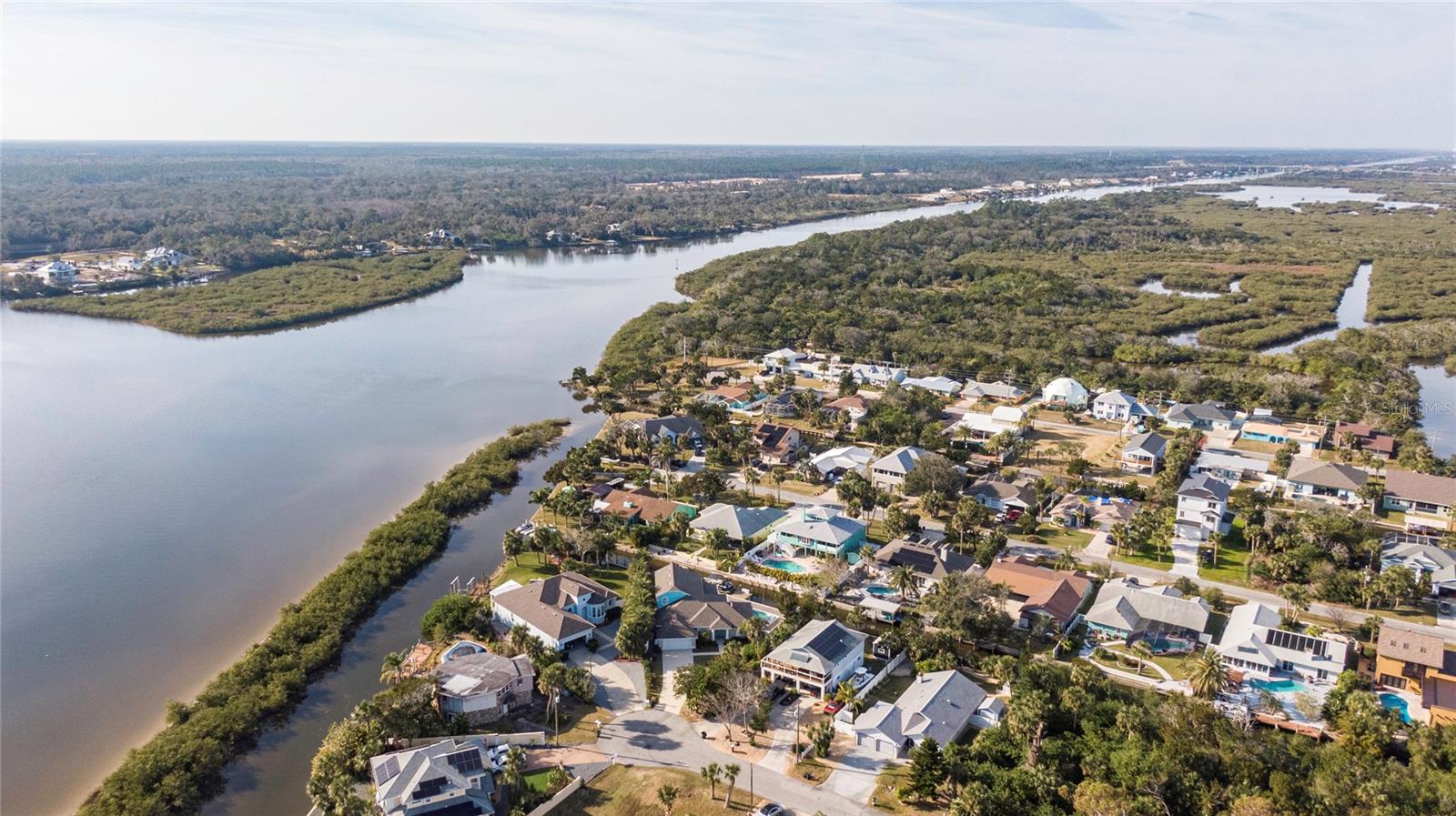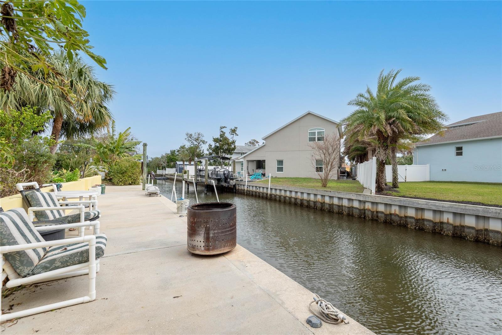 This WELL CARED CUSTOM BUILD 3-bedroom in Flagler Beach, 2-bath home offers 2,013 sq. ft. of living space (3,051 total sq. ft.) and was built in 2015. Located just two houses away from the ICW, this property is in a serene cul-de-sac with low traffic. The oversized 2-car garage and high-and-dry lot provide peace of mind, with no history of flooding and low-cost flood insurance. The open floor plan features a designer kitchen with ample storage, perfect for entertaining. After a long day of work, retreat to a lovely primary bedroom en-suite featuring dual walk-in closets with built in shelving and drawers. Dual vanities and a large tiled walk in shower. Step outside to your private tropical oasis, a nature enthusiast's, gardener's and surfer's paradise surrounded by lush foliage including herbs and fruit trees, ideal for relaxing, birdwatching or hosting guests. A must-see for anyone looking to live the waterfront lifestyle where you can throw a line in your back yard or walk to the beach and of course BOATING FROM YOUR OWN BACKYARD!
