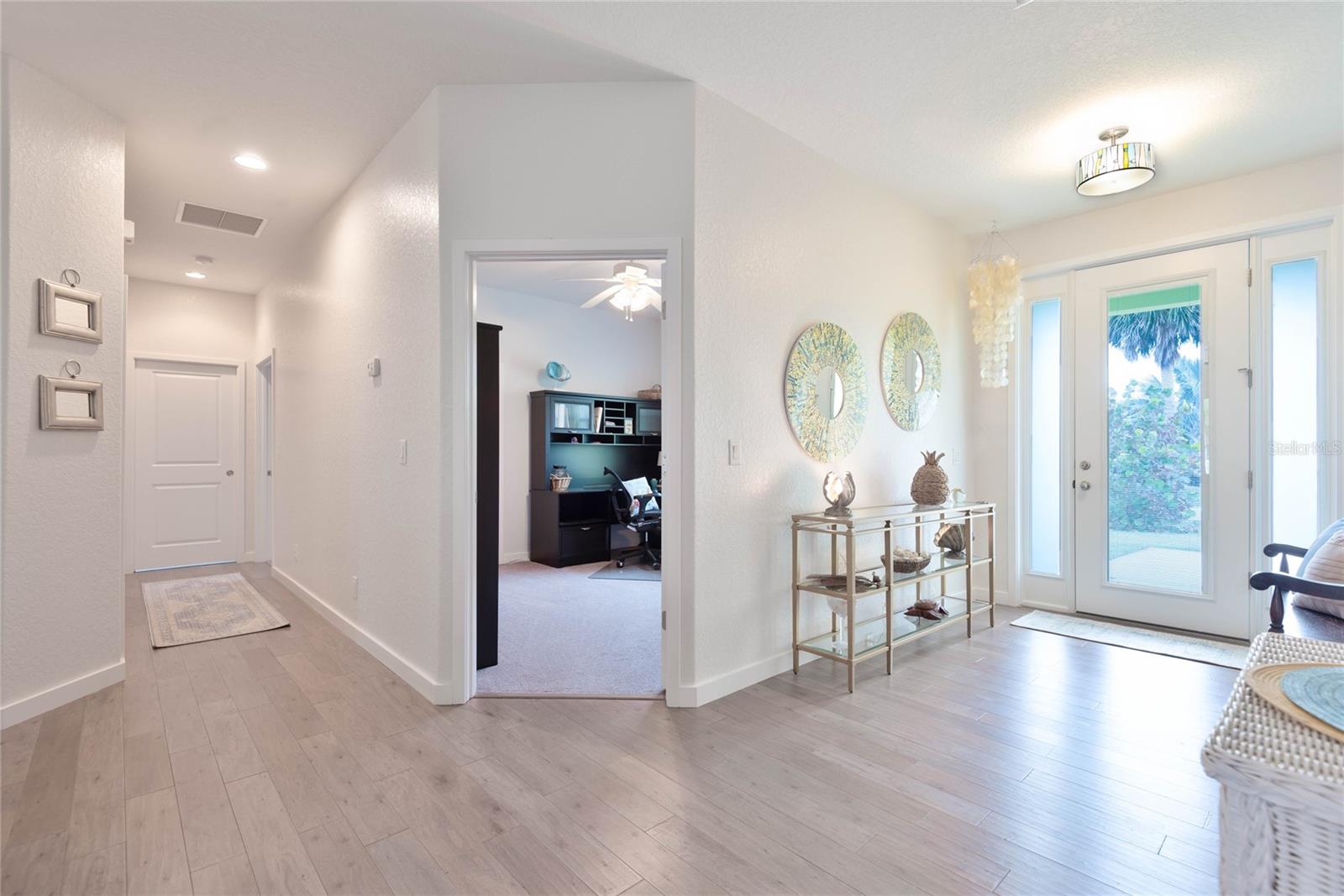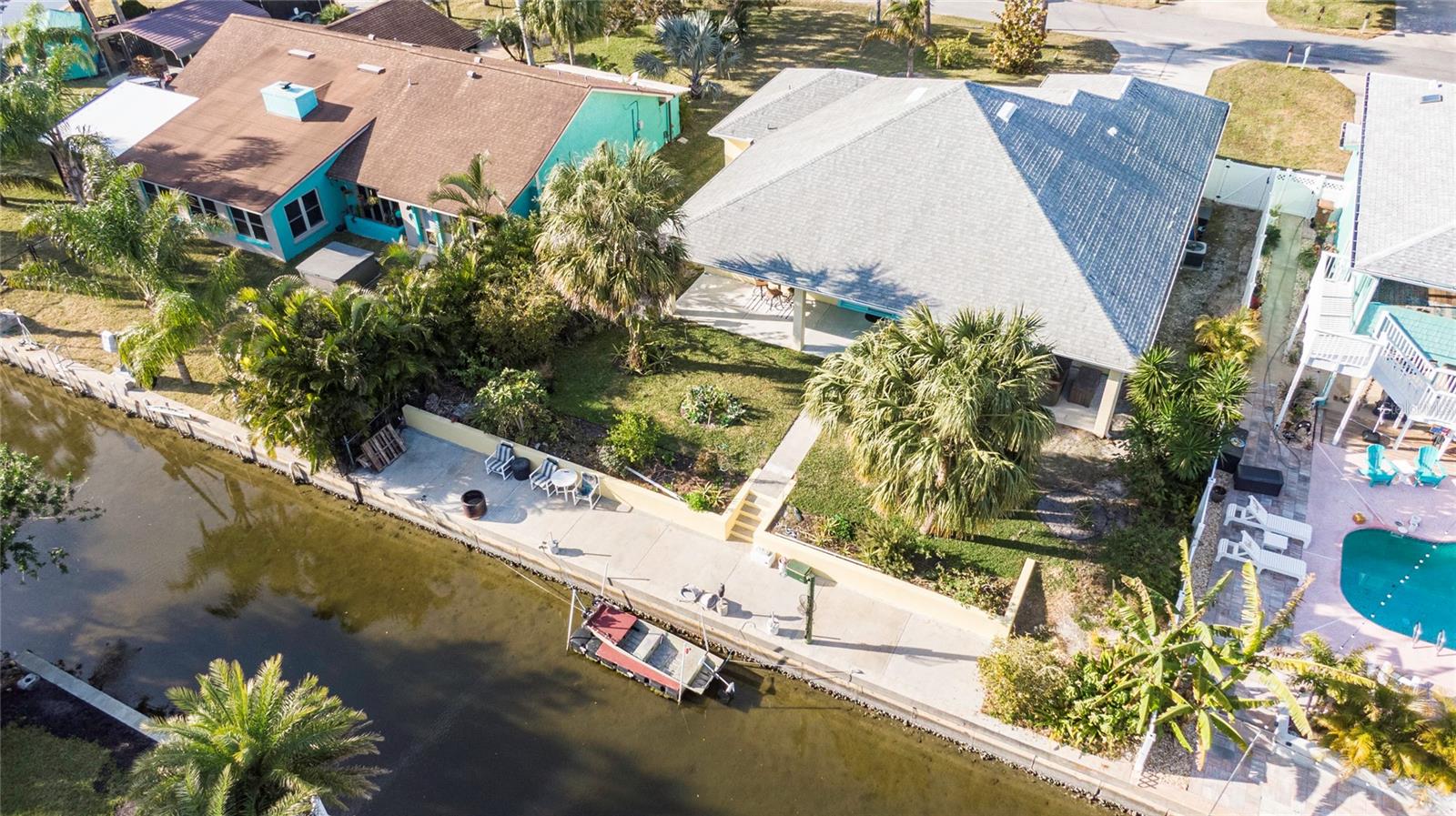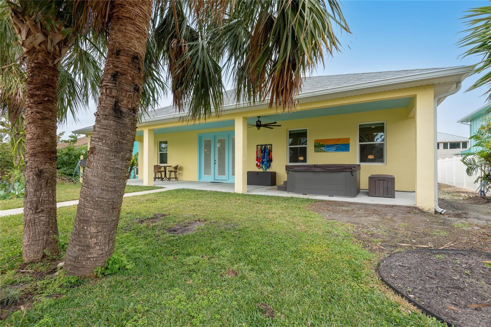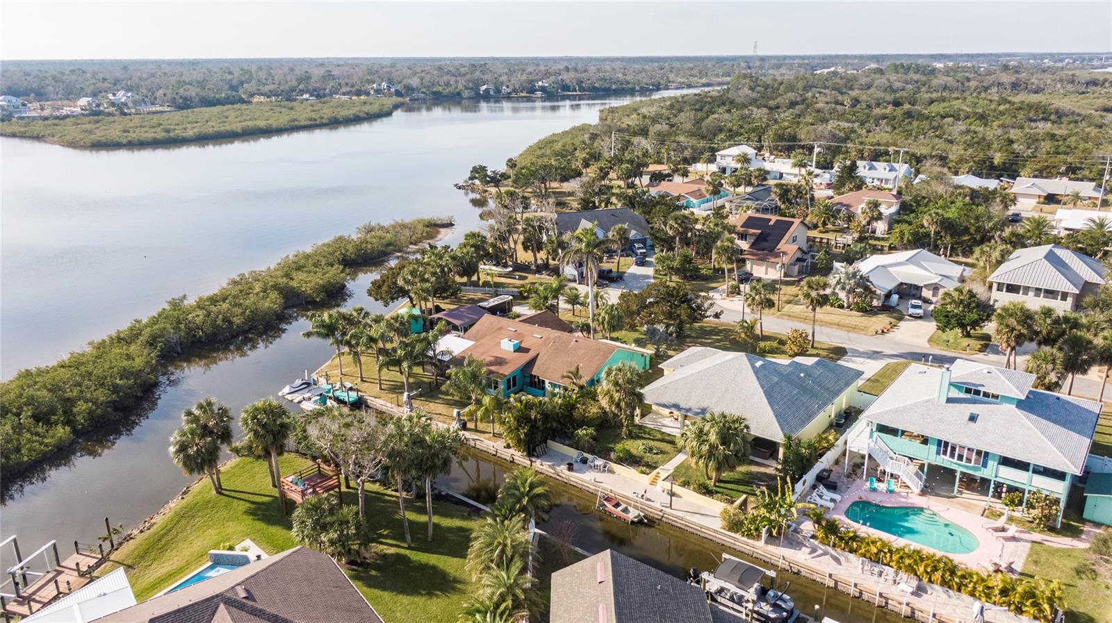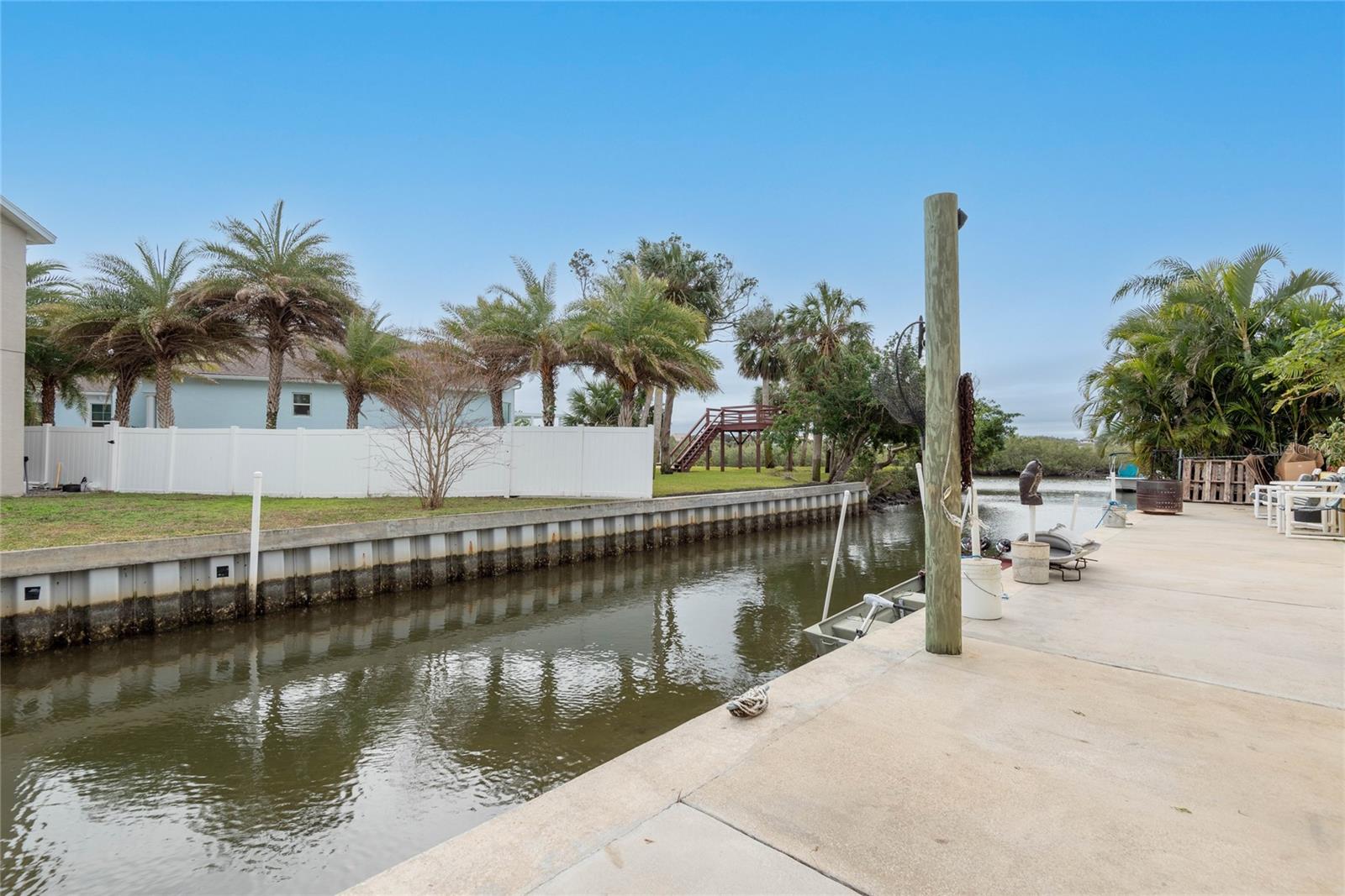 This WELL CARED CUSTOM BUILD 3-bedroom in Flagler Beach, 2-bath home offers 2,013 sq. ft. of living space (3,051 total sq. ft.) and was built in 2015. Located just two houses away from the ICW, this property is in a serene cul-de-sac with low traffic. The oversized 2-car garage and high-and-dry lot provide peace of mind, with no history of flooding and low-cost flood insurance. The open floor plan features a designer kitchen with ample storage, perfect for entertaining. After a long day of work, retreat to a lovely primary bedroom en-suite featuring dual walk-in closets with built in shelving and drawers. Dual vanities and a large tiled walk in shower. Step outside to your private tropical oasis, a nature enthusiast's, gardener's and surfer's paradise surrounded by lush foliage including herbs and fruit trees, ideal for relaxing, birdwatching or hosting guests. A must-see for anyone looking to live the waterfront lifestyle where you can throw a line in your back yard or walk to the beach and of course BOATING FROM YOUR OWN BACKYARD!