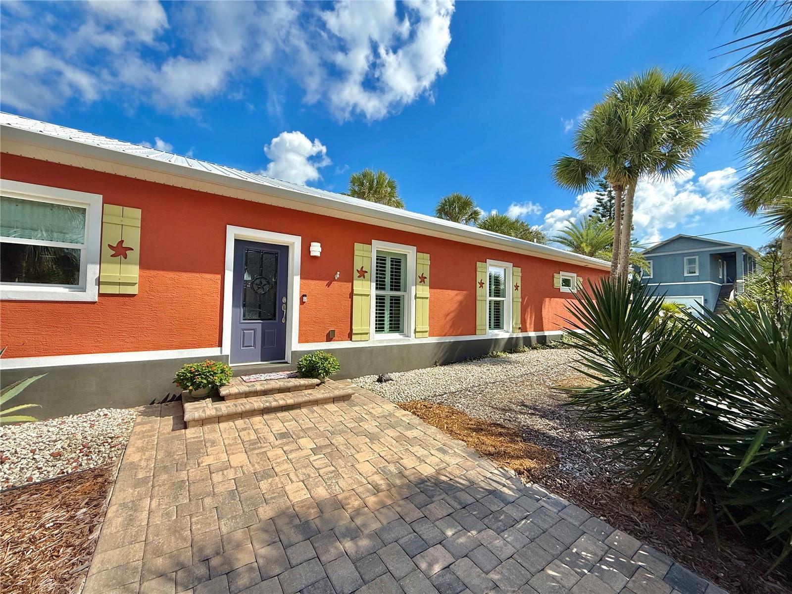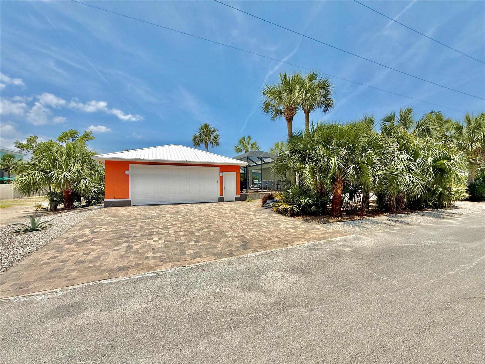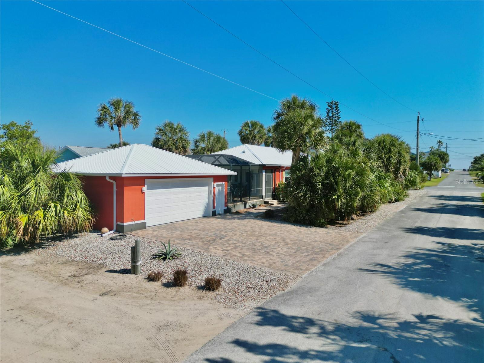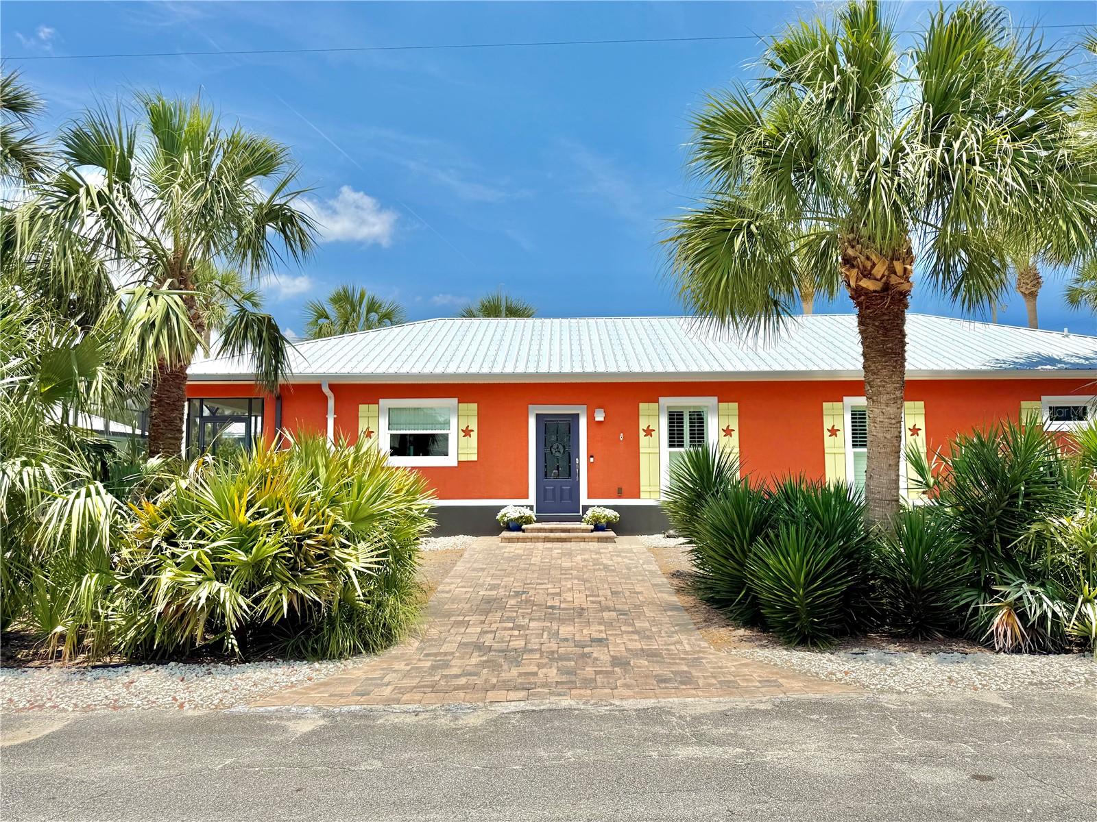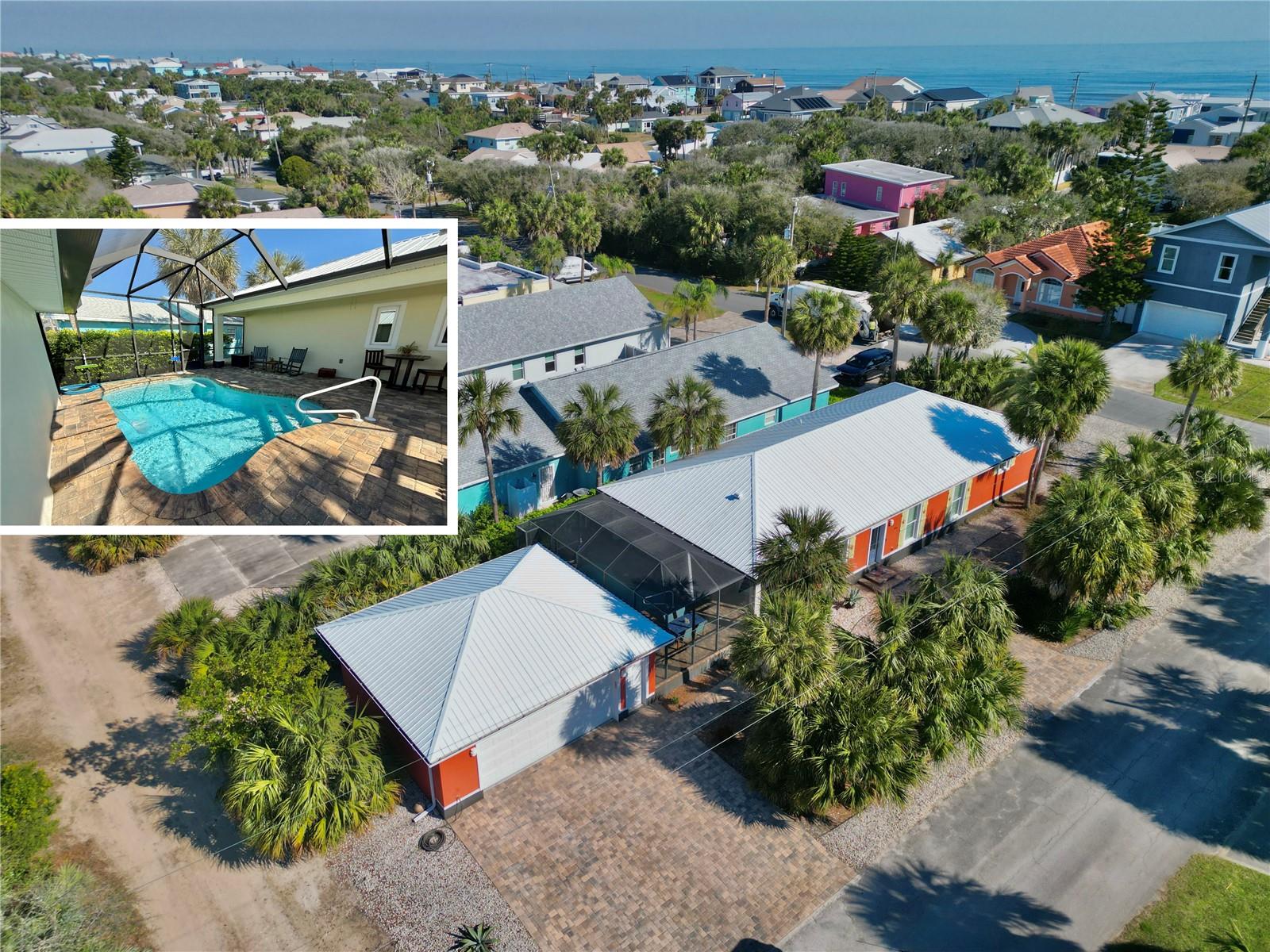 Immaculate Custom Paul Culver Beachside Pool Home – Just 4 Houses from the Beach! Located on a large corner lot, this beautifully maintained concrete block home offers exceptional beachside living with 3 bedrooms, 2.5 bathrooms, office/bonus room, and a split floorplan with 9’ ceilings throughout. Enjoy the Florida lifestyle in your private screened lanai featuring a heated saltwater pool with waterfall, thoughtfully positioned between the home and detached garage for privacy. The spacious chef’s kitchen includes Blue Bahia granite countertops, GE Profile stainless steel appliances, double ovens, gas cooktop, wet bar, and cabinet lighting behind crown molding. A large pantry includes a second refrigerator, sink, and laundry hookups for both gas and electric. The primary suite features a tray ceiling, modern en-suite bathroom, walk-in closet, and two additional 4x9 closets. Bathrooms are finished with granite and quartz countertops and ceramic tile flooring. Built to hurricane-rated codes, the home offers impact windows and doors, metal hip roof, and no flood insurance required. Additional highlights include: Luxury vinyl plank flooring throughout, Central vacuum system, Lots of storage space, Tankless water heater with 3 instant hot water stations, Oversized garage with Shark floor coating, Whole-house GE Advantapure water purification, Buried propane tank & generator hookup,Plantation shutters & ceiling fans throughout, Lush landscaping with pavers, rock, and mulch. Low insurance costs due to solid construction—current premium is under $2,000/year. Don’t miss this rare opportunity to own a move-in ready beachside home with resort-style features! Schedule your private showing today!