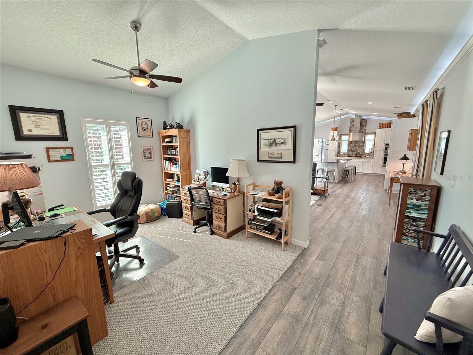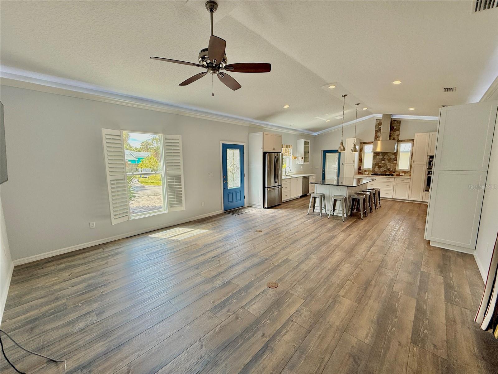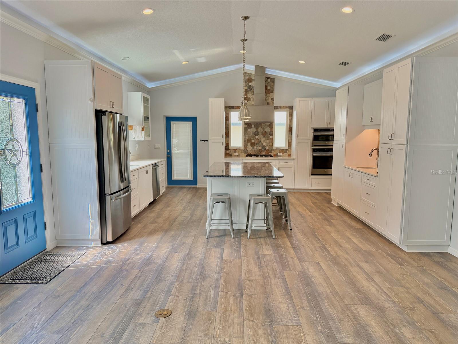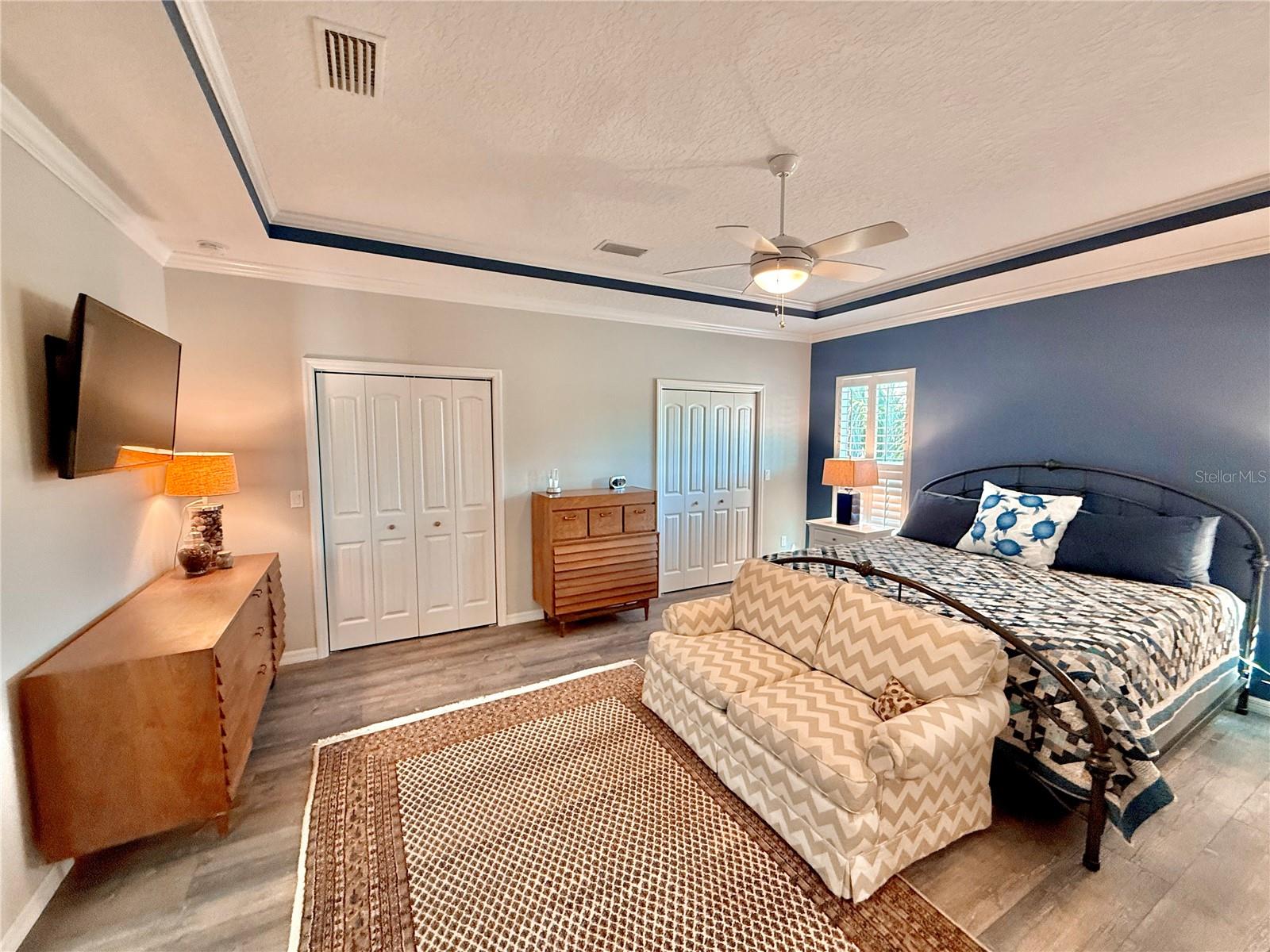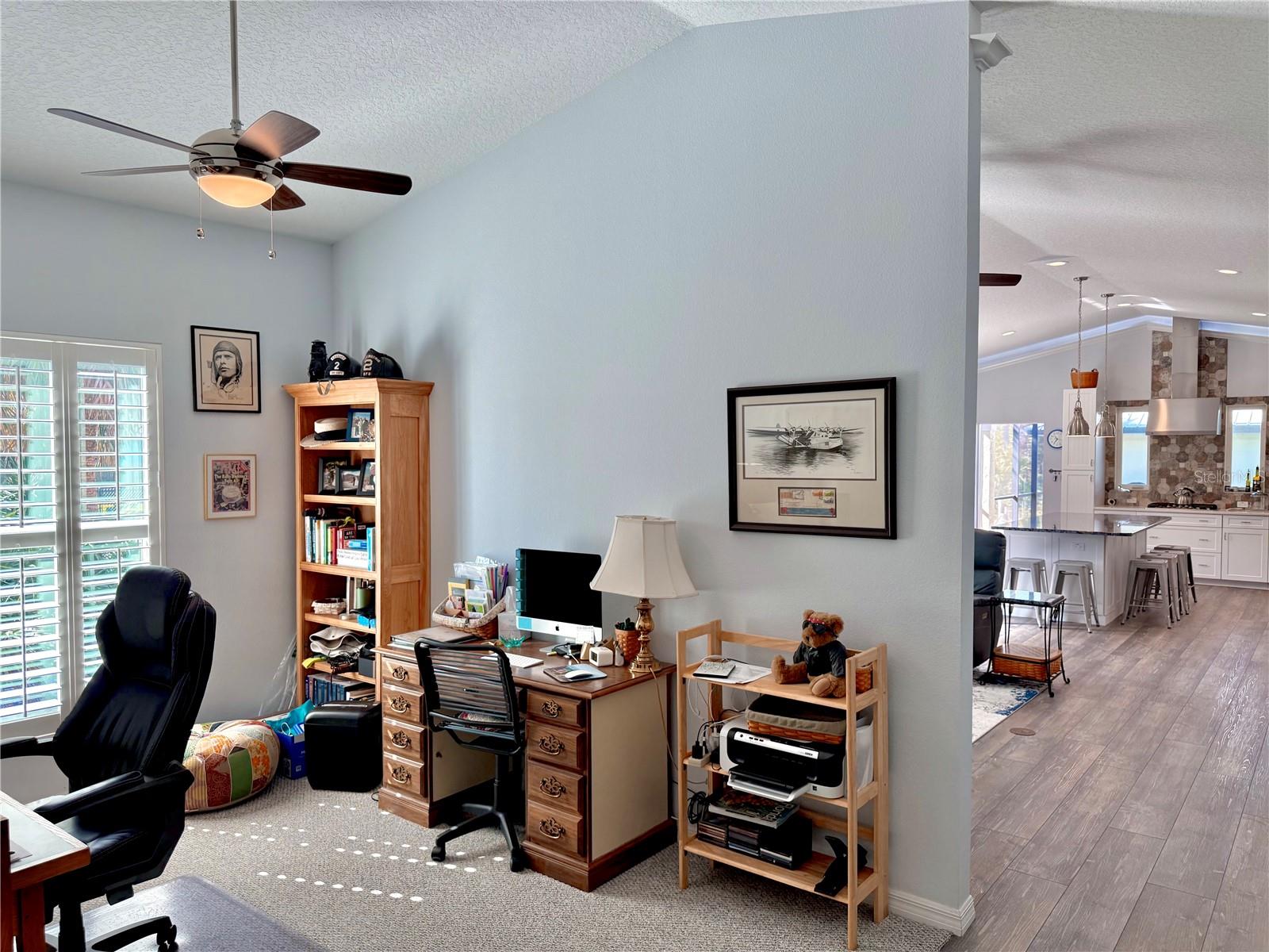 Immaculate Custom Paul Culver Beachside Pool Home – Just 4 Houses from the Beach! Located on a large corner lot, this beautifully maintained concrete block home offers exceptional beachside living with 3 bedrooms, 2.5 bathrooms, office/bonus room, and a split floorplan with 9’ ceilings throughout. Enjoy the Florida lifestyle in your private screened lanai featuring a heated saltwater pool with waterfall, thoughtfully positioned between the home and detached garage for privacy. The spacious chef’s kitchen includes Blue Bahia granite countertops, GE Profile stainless steel appliances, double ovens, gas cooktop, wet bar, and cabinet lighting behind crown molding. A large pantry includes a second refrigerator, sink, and laundry hookups for both gas and electric. The primary suite features a tray ceiling, modern en-suite bathroom, walk-in closet, and two additional 4x9 closets. Bathrooms are finished with granite and quartz countertops and ceramic tile flooring. Built to hurricane-rated codes, the home offers impact windows and doors, metal hip roof, and no flood insurance required. Additional highlights include: Luxury vinyl plank flooring throughout, Central vacuum system, Lots of storage space, Tankless water heater with 3 instant hot water stations, Oversized garage with Shark floor coating, Whole-house GE Advantapure water purification, Buried propane tank & generator hookup,Plantation shutters & ceiling fans throughout, Lush landscaping with pavers, rock, and mulch. Low insurance costs due to solid construction—current premium is under $2,000/year. Don’t miss this rare opportunity to own a move-in ready beachside home with resort-style features! Schedule your private showing today!