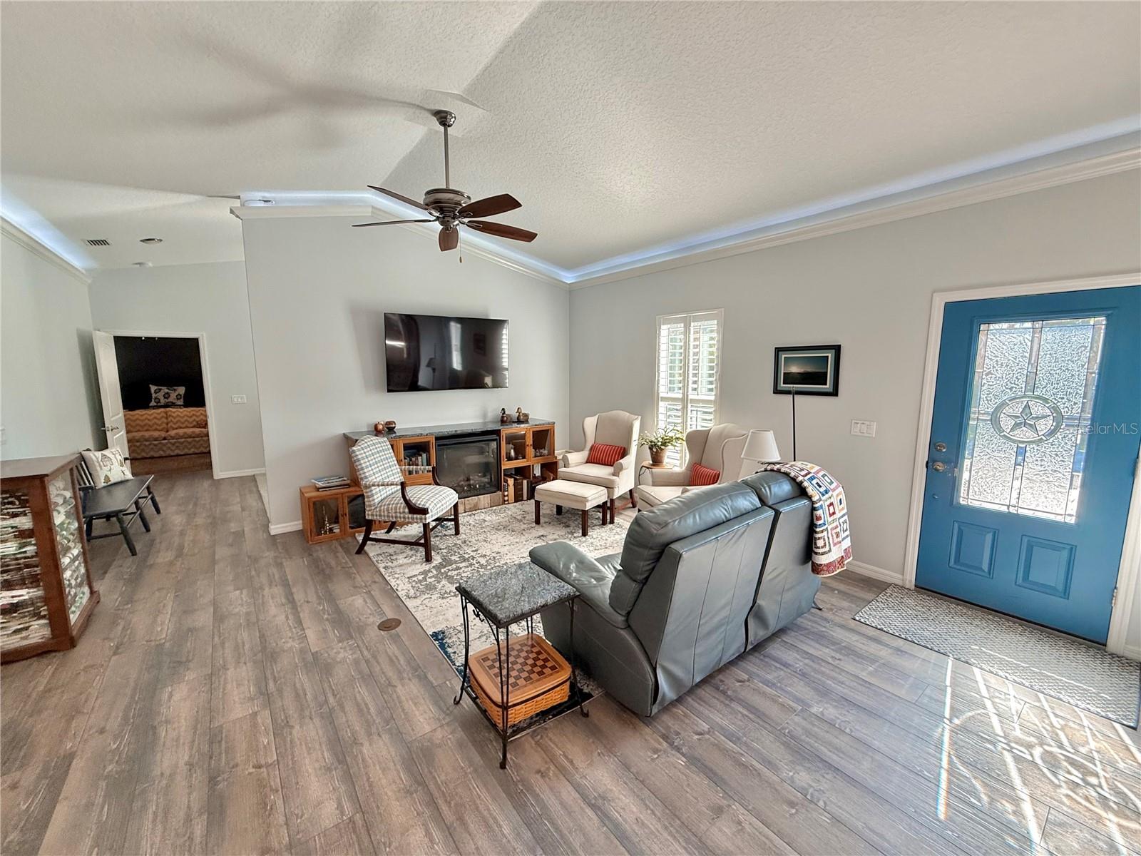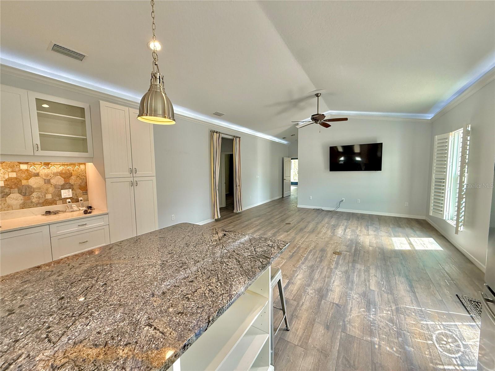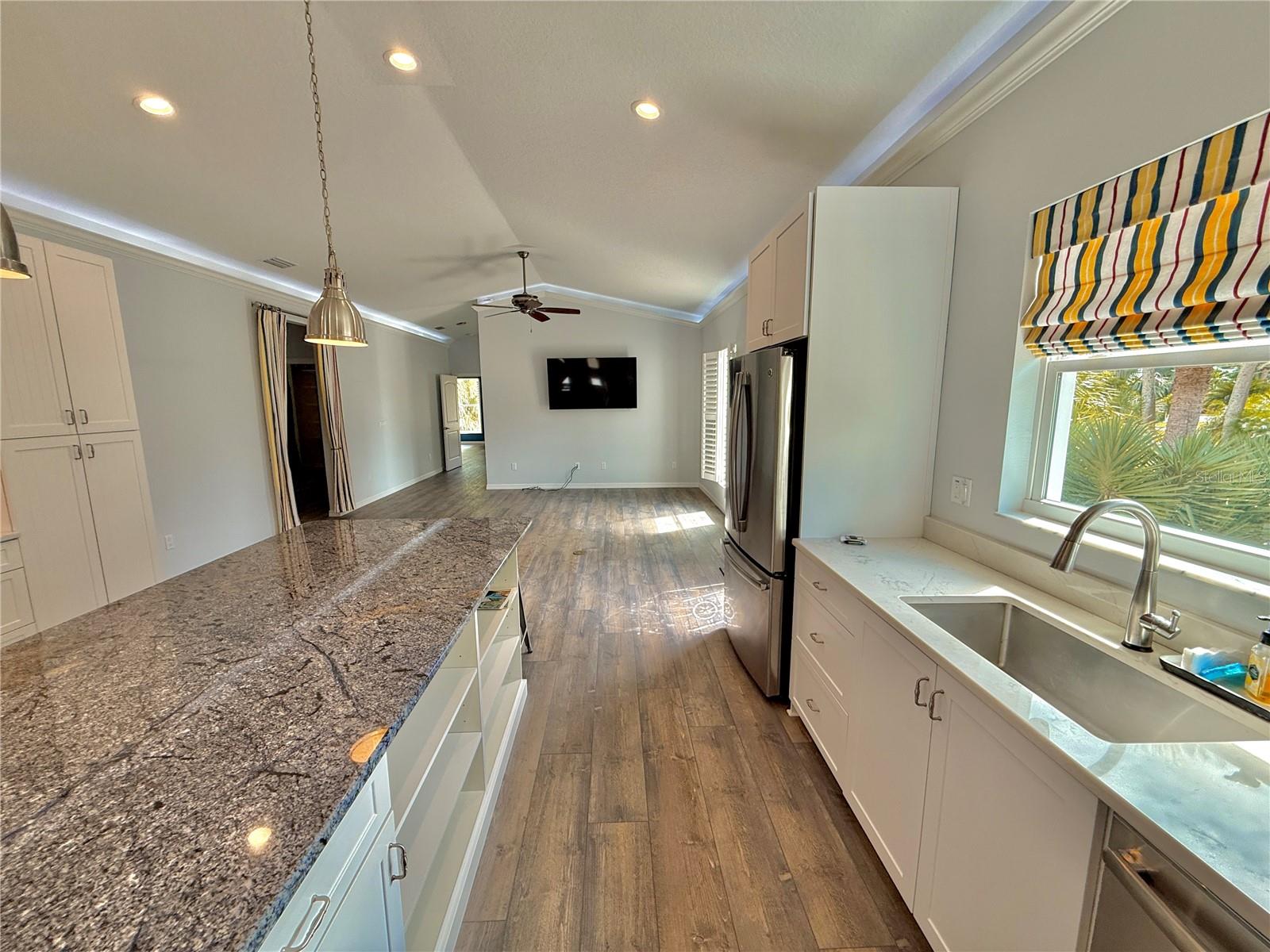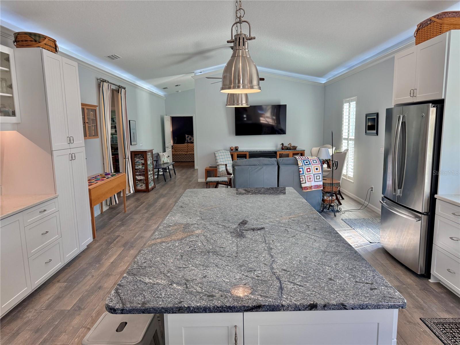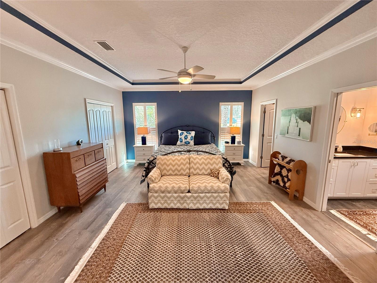 Immaculate Custom Paul Culver Beachside Pool Home – Just 4 Houses from the Beach! Located on a large corner lot, this beautifully maintained concrete block home offers exceptional beachside living with 3 bedrooms, 2.5 bathrooms, office/bonus room, and a split floorplan with 9’ ceilings throughout. Enjoy the Florida lifestyle in your private screened lanai featuring a heated saltwater pool with waterfall, thoughtfully positioned between the home and detached garage for privacy. The spacious chef’s kitchen includes Blue Bahia granite countertops, GE Profile stainless steel appliances, double ovens, gas cooktop, wet bar, and cabinet lighting behind crown molding. A large pantry includes a second refrigerator, sink, and laundry hookups for both gas and electric. The primary suite features a tray ceiling, modern en-suite bathroom, walk-in closet, and two additional 4x9 closets. Bathrooms are finished with granite and quartz countertops and ceramic tile flooring. Built to hurricane-rated codes, the home offers impact windows and doors, metal hip roof, and no flood insurance required. Additional highlights include: Luxury vinyl plank flooring throughout, Central vacuum system, Lots of storage space, Tankless water heater with 3 instant hot water stations, Oversized garage with Shark floor coating, Whole-house GE Advantapure water purification, Buried propane tank & generator hookup,Plantation shutters & ceiling fans throughout, Lush landscaping with pavers, rock, and mulch. Low insurance costs due to solid construction—current premium is under $2,000/year. Don’t miss this rare opportunity to own a move-in ready beachside home with resort-style features! Schedule your private showing today!