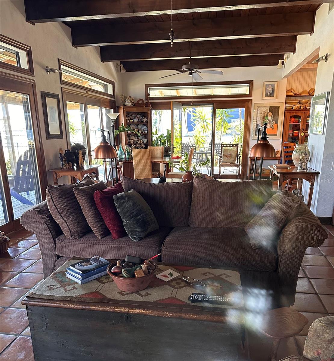 Huge Price reduction. This is a must see home, Beautiful Intracoastal Frontage. This cracker style home features 3 sided wrap around 12' porches underroof. Interior wood features throughout with open beams. Brick fireplace with propane gas line for starting your wood fire. Spanish(Saltillo) style tile floors throughout the first floor. Beautifully crafted open tread wood staircase. Wood cabinets line this spacious kitchen with center island and breakfast bar. Numerous wood patio doors allow for a panoramic view of the Intracoastal Waterway and the boat parade you will view. Mature landscaping for low maintenance. Spacious 2 car garage with storage and laundry. Master suite on second floor offers nice sitting area and balcony outside for viewing the water. Hurricane Shutters for your safety. 2 Carrier Systems new in 2015 and Condensers replaced in 2018. New attic stair. Hot water heater new in 2022. This location is a short walk to the ICW bridge walkway for a nice walk to the Beach which is close by. Additionally the large Wadsworth Park and Shopping are equally close to the West. Only 4 short miles to I-95 for easy access to Daytona Beach or St. Augustine. Lambert Avenue is the premier waterfront location. You owe it to yourself to view this lovely home.