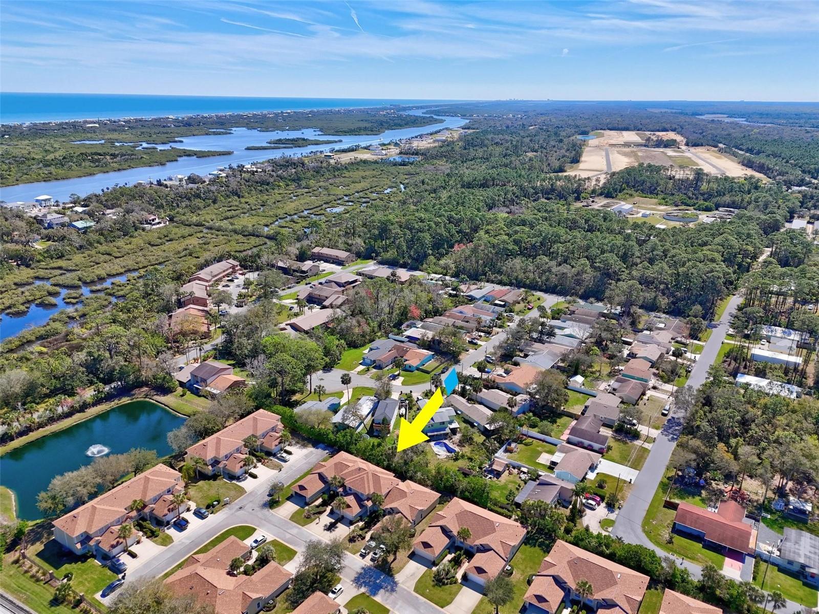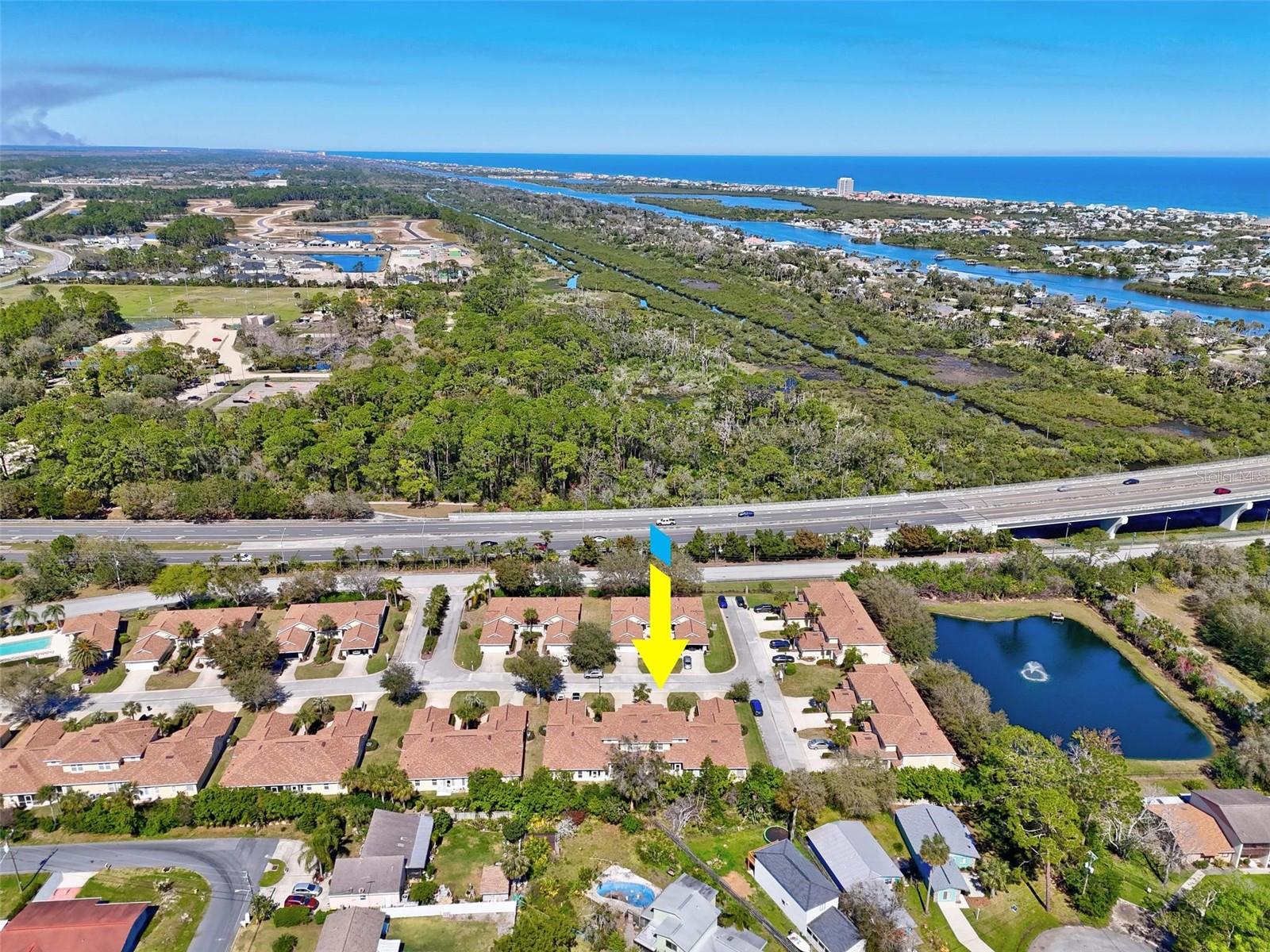One or more photo(s) has been virtually staged. Wonderful 2nd home or investment property! This property is in a small 36 unit community that everyone loves. Within 1 mile of being on the beach and located close to stores, shopping and restaurants in quaint, historic Flagler Beach. The downstairs is your area for entertaining and setting up a nice porch (enclosed) for outdoors. Private road for walking your dog and getting exercise. The community pool and clubhouse are nice amenities in the summer and all year round. Condo fee includes WIFI and cable. New roof in 2022 and exterior painting to be done this year. This unit comes with aluminum shutters for window protection during the storm; they are installed manually. Make this townhome your oasis and enjoy beach living.