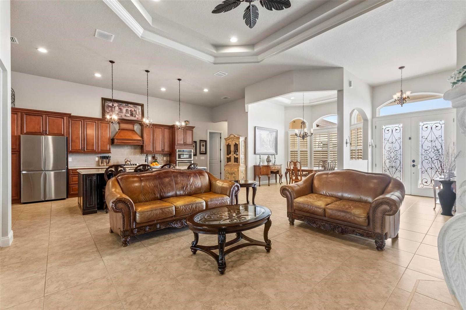 Welcome to your dream home in the Eagle Lakes Community! This stunning residence boasts a spacious 3400 sq ft of luxurious living space, including a remarkable 647 sq ft climate-controlled Florida room, perfect for year-round enjoyment. As you enter, be greeted by the grandeur of 8-foot solid core interior doors, adding a touch of elegance to every room. The open floor plan seamlessly connects the living spaces, providing an inviting atmosphere for gatherings and entertaining. Absolutely fabulous kitchen with large island, 42 inch custom trimmed cabinets and plenty of drawers and cabinet space. Home offers gas range and fireplace. Car enthusiasts will appreciate the climate-controlled 3-car garage, offering both convenience and practicality. The entire home is adorned with spray foam insulation, ensuring energy efficiency and comfort in every season. Stay ahead of the curve with a smart thermostat, allowing you to effortlessly control the climate of your home with just a touch. Whether you're hosting guests or enjoying a quiet evening, this residence is designed to cater to your modern lifestyle. Don't miss the opportunity to make this extraordinary property your home.