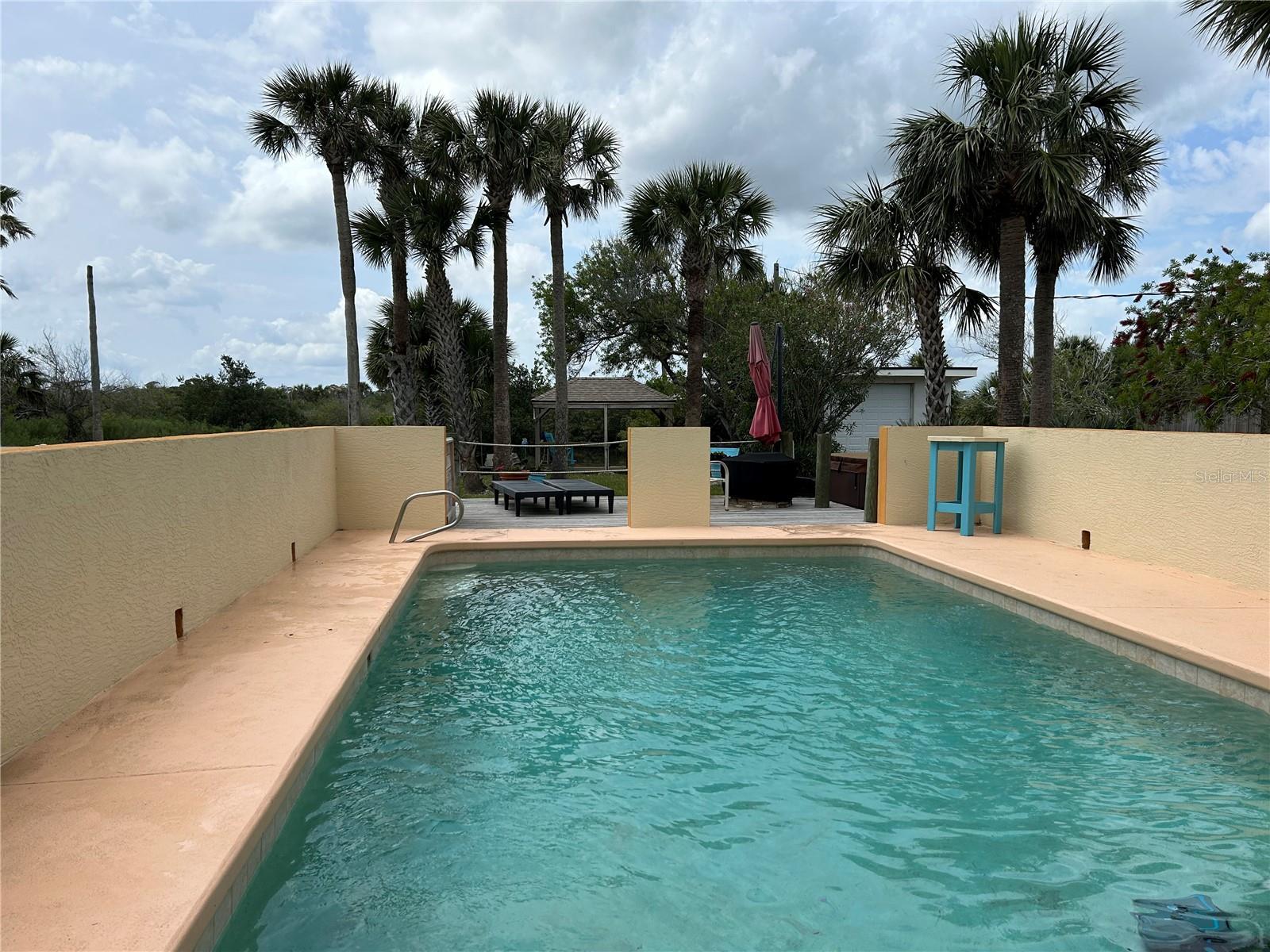 Resort living on the island, this high & dry home has it all! Whether you want the beach for the day, it's only 2 blocks away, or have fun at your own oasis with a the private large inground 24x13 pool, hot tub or waterside cabana! Boat in a john boat or pontoon, paddle board or canoe to Silver Lake connecting you to the intracoastal, from your backyard canal. Breathtaking sunsets from 2 covered (1 screened) porches or take in a moonlight night. Inside, the large open floorplan makes for easy entertaining. The kitchen offers all newer appliances, island and walkin pantry & lots of cabinets for plenty of storage. Primary bedroom has an ensuite with a relaxing soaker tub, walkin shower and dbl vanity & a huge walkin closet! The entry level can be utilized as an In Law Suite if needed with separate living area, full bath and the bedroom also has a lg walkin closet. Plenty of room for everyone! New roof 2/2025, pool pump 2022, HVAC 2020 deck 2021, recently painted. This house has never flooded!
