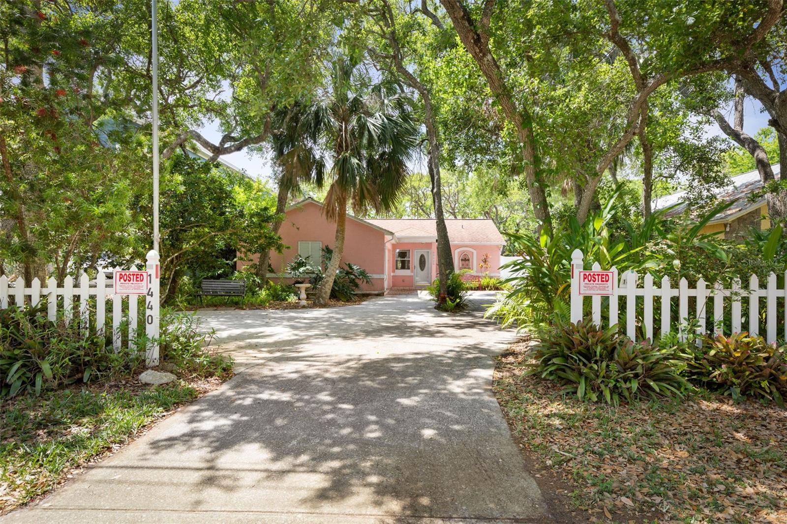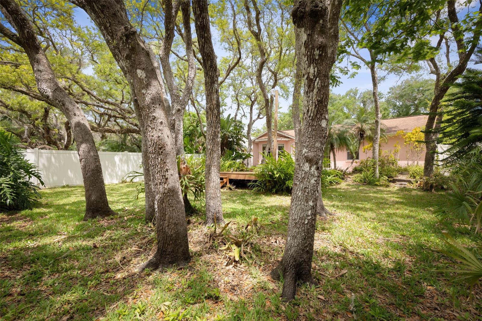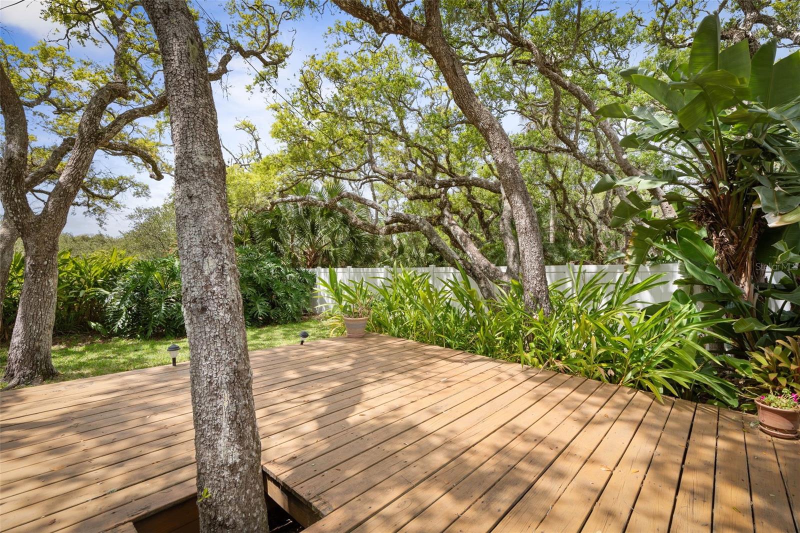 HIGH & DRY Coastal Paradise that HAS NEVER FLOODED Awaits! This charming bungalow captures the essence of beachside living just a short stroll from the beach. Don’t let the size fool you – the smart layout seamlessly blends cozy indoor spaces withOLDE FLORIDA landscaping. Double French doors open to a spacious deck framed by lush gardens and twinkling lights, backing up to a serene preserve. Set your table on the patio, swing open the automatic awning shade, and soak up the salty breeze. Inside, the extended primary bedroom space is a true oasis with surround windows featuring sunlit sitting area perfect for relaxing after a day in the sand. Fully fenced and wrapped in tropical greenery and backs up to the preserve for no neighbors, this slice of paradise promises privacy and peaceful beachside bliss! All tile floors- AC 2022, Hot water heater 2021 Roof 2013.