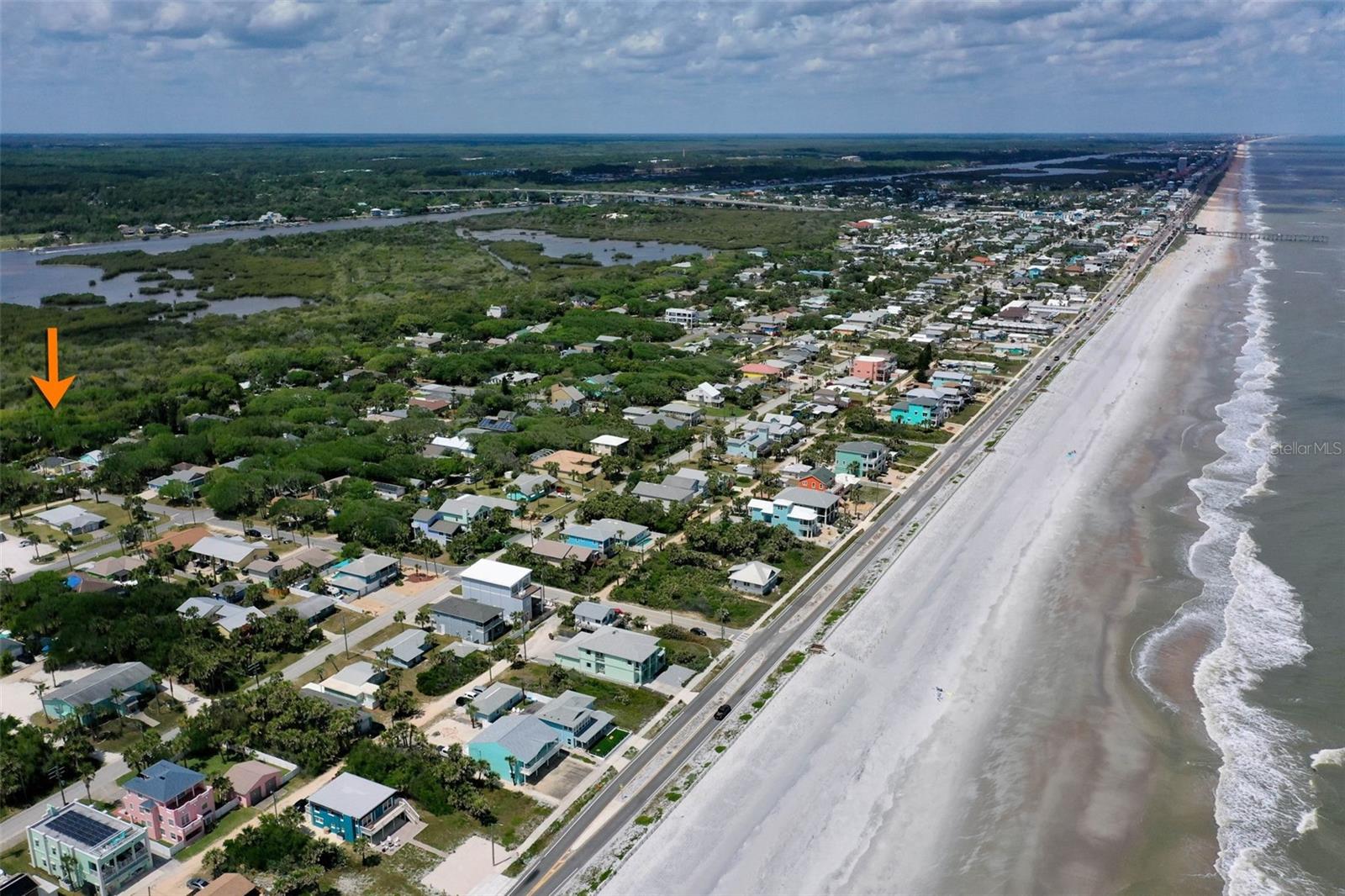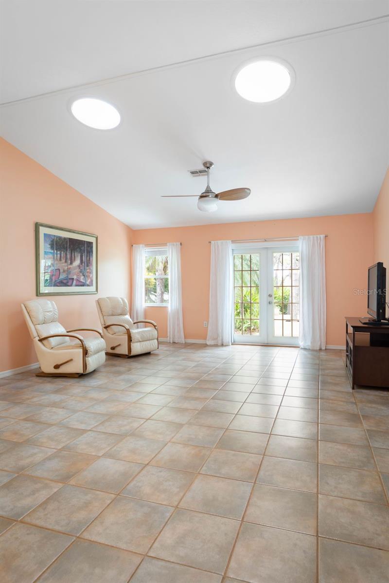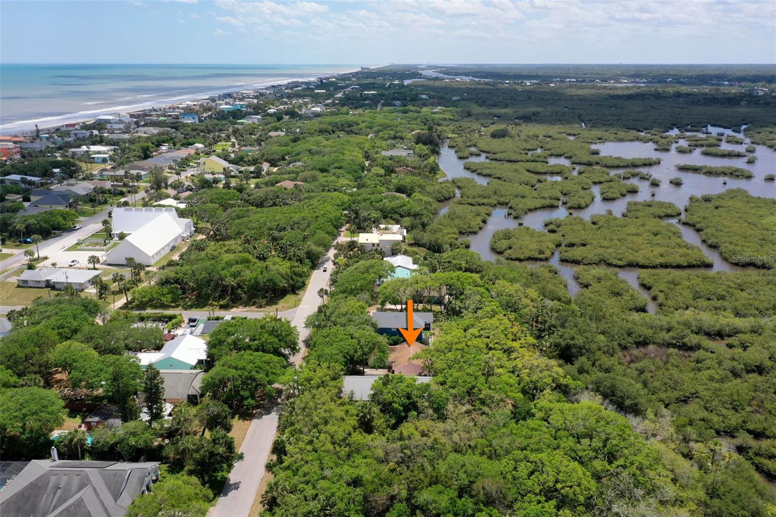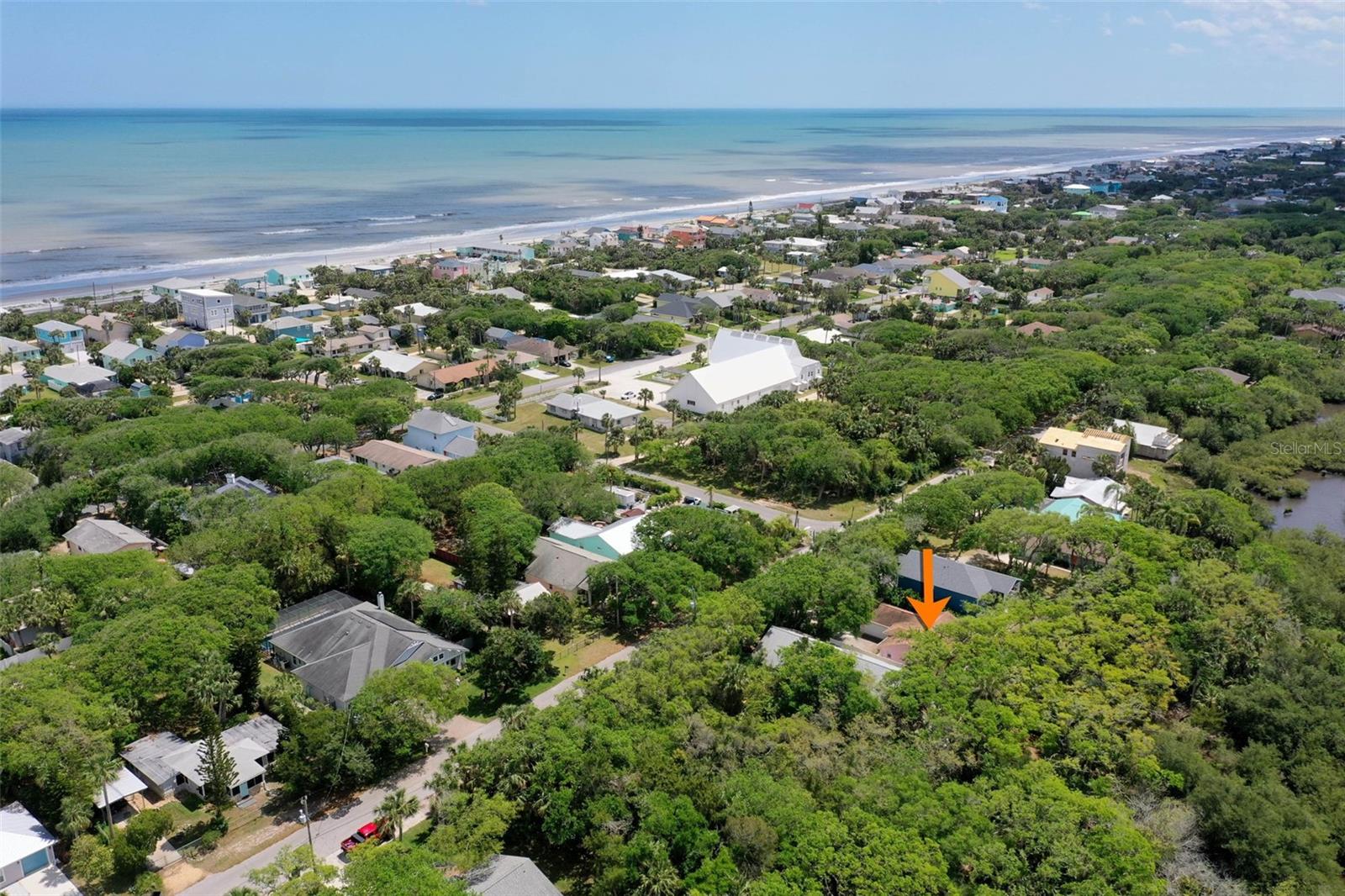 HIGH & DRY Coastal Paradise that HAS NEVER FLOODED Awaits! This charming bungalow captures the essence of beachside living just a short stroll from the beach. Don’t let the size fool you – the smart layout seamlessly blends cozy indoor spaces withOLDE FLORIDA landscaping. Double French doors open to a spacious deck framed by lush gardens and twinkling lights, backing up to a serene preserve. Set your table on the patio, swing open the automatic awning shade, and soak up the salty breeze. Inside, the extended primary bedroom space is a true oasis with surround windows featuring sunlit sitting area perfect for relaxing after a day in the sand. Fully fenced and wrapped in tropical greenery and backs up to the preserve for no neighbors, this slice of paradise promises privacy and peaceful beachside bliss! All tile floors- AC 2022, Hot water heater 2021 Roof 2013.