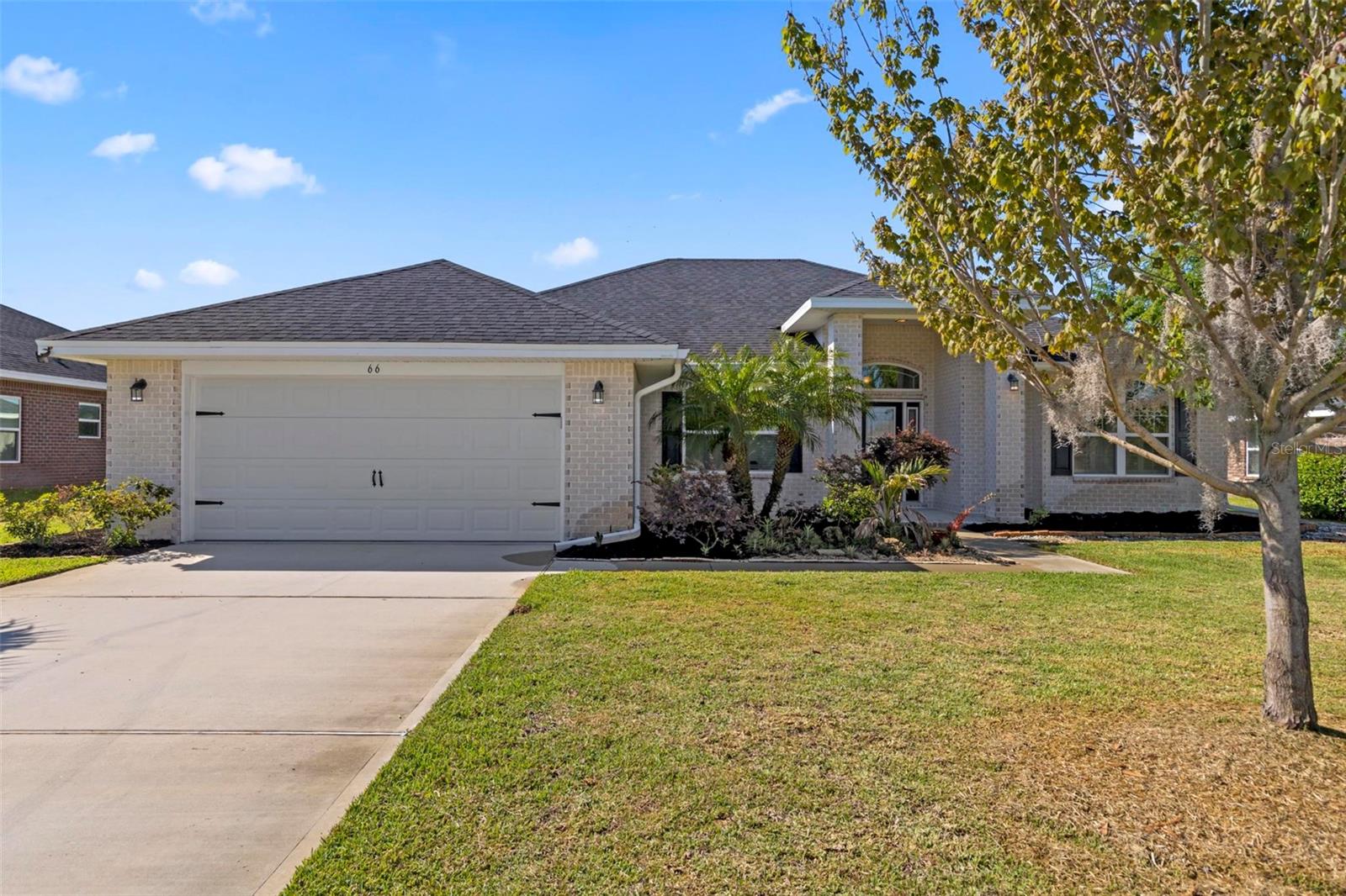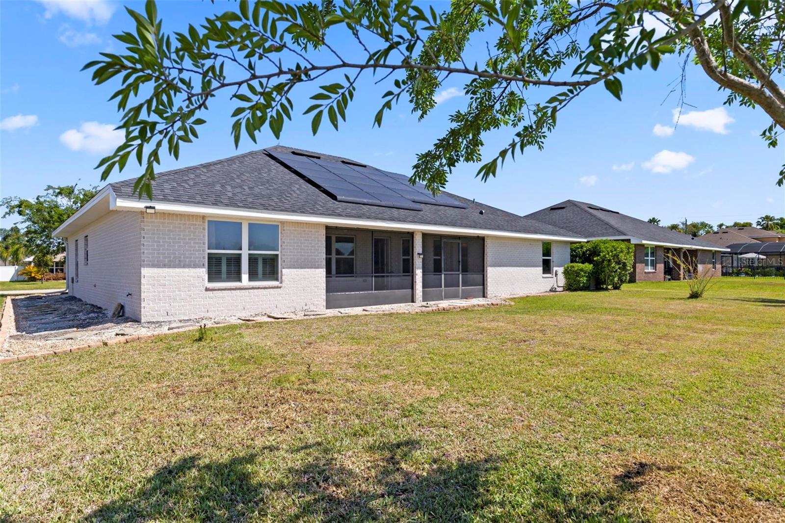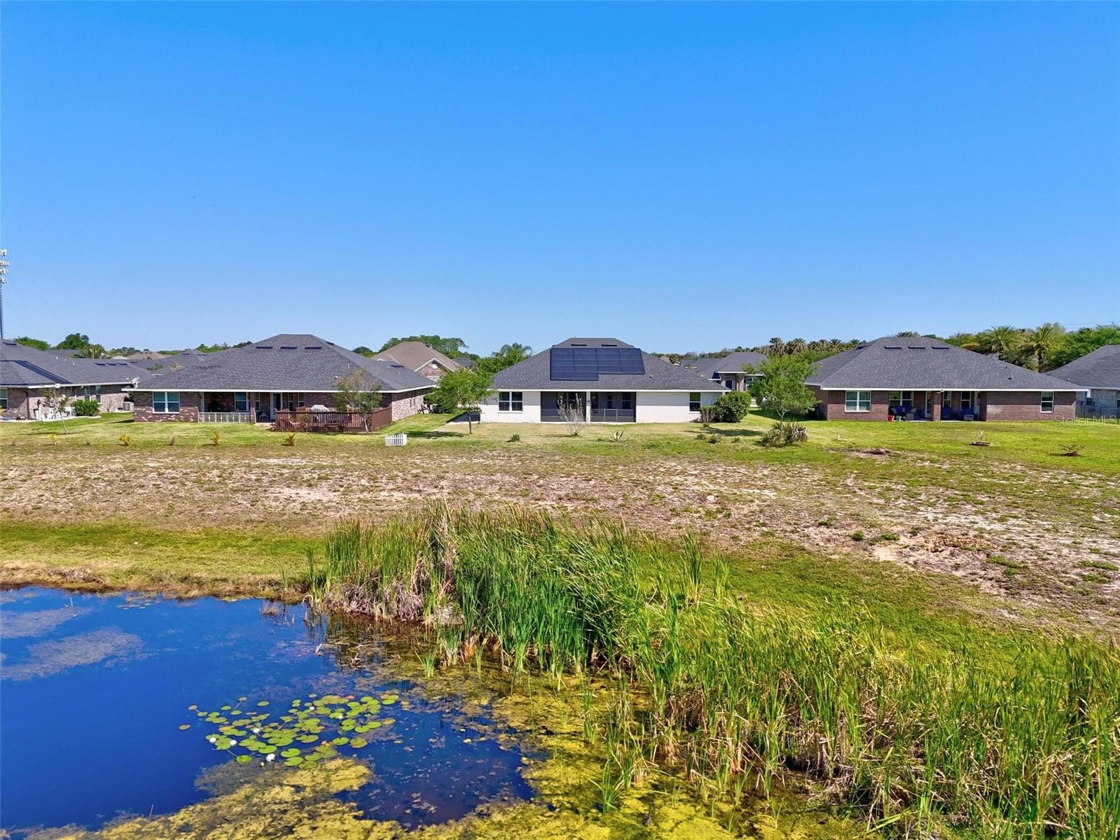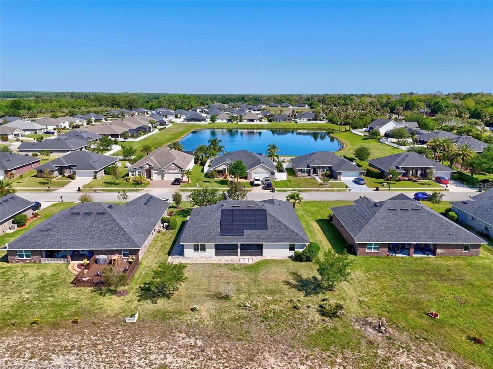 Welcome to this beautifully updated 4-bedroom home in the sought-after Eagle Lakes subdivision in Flagler Beach! Just a short drive to the beach, this home is perfectly situated on a tranquil pond, offering remarkable water views and peaceful Florida living. Enjoy a charming front elevation with fresh landscaping, sidewalks throughout the community, and underground utilities for a clean, well-kept neighborhood feel. Inside, you’ll find a spacious split floorplan with vaulted ceilings and beautiful tile flooring in all main living areas. A large flex room offers versatility as a home office, playroom, or additional living space. The open kitchen and family room are filled with natural light and provide stunning views of the serene pond through plentiful windows. The primary suite features his-and-hers closets, dual vanities, and a newly remodeled bathroom with floor-to-ceiling tile and a frameless glass shower. The guest bath is also updated with a double-sink vanity, tiled shower, and convenient access to the covered/screened lanai—perfect for entertaining or relaxing outdoors. Enjoy HUGE energy savings with a whole-home solar panel system—keeping your monthly energy bill under $130! Step outside to your private lanai and take in the natural beauty and wildlife that make this home truly special. Don't miss your chance to own this stunning property in a prime location—schedule your private showing today!