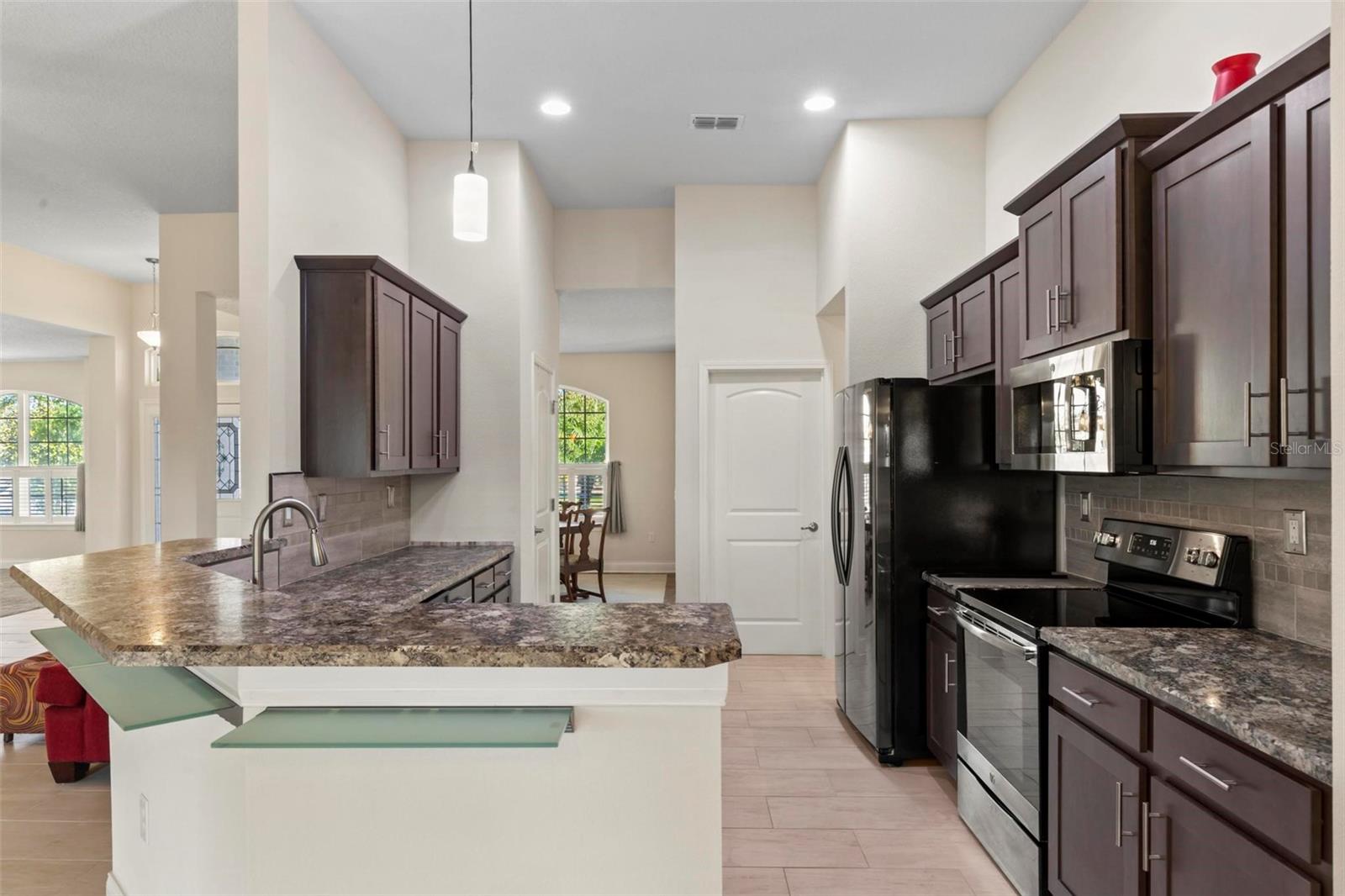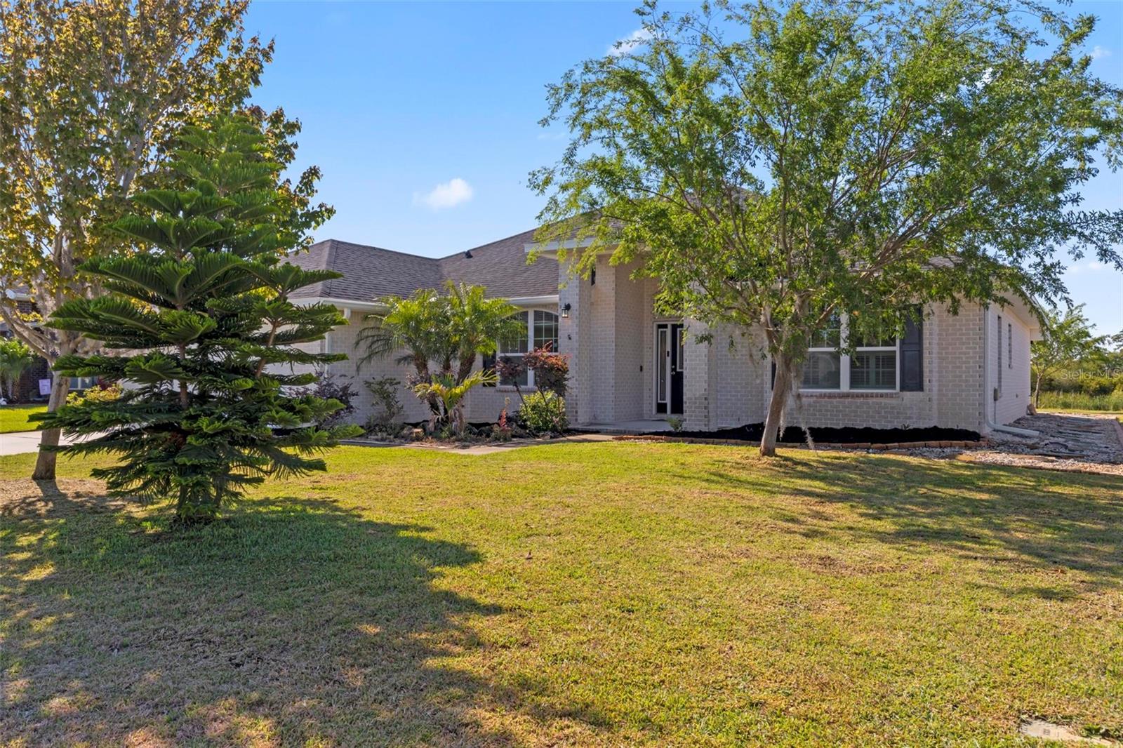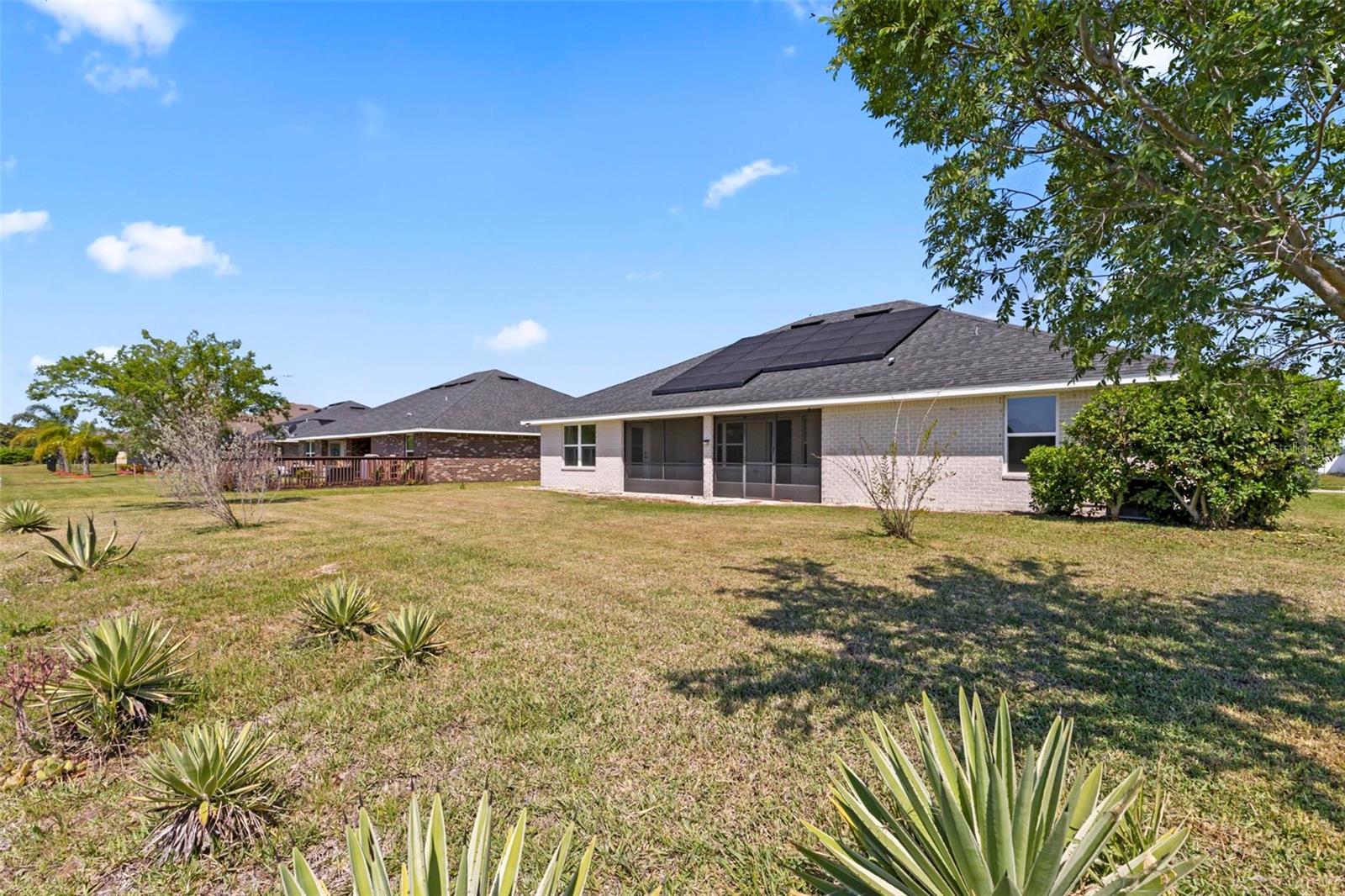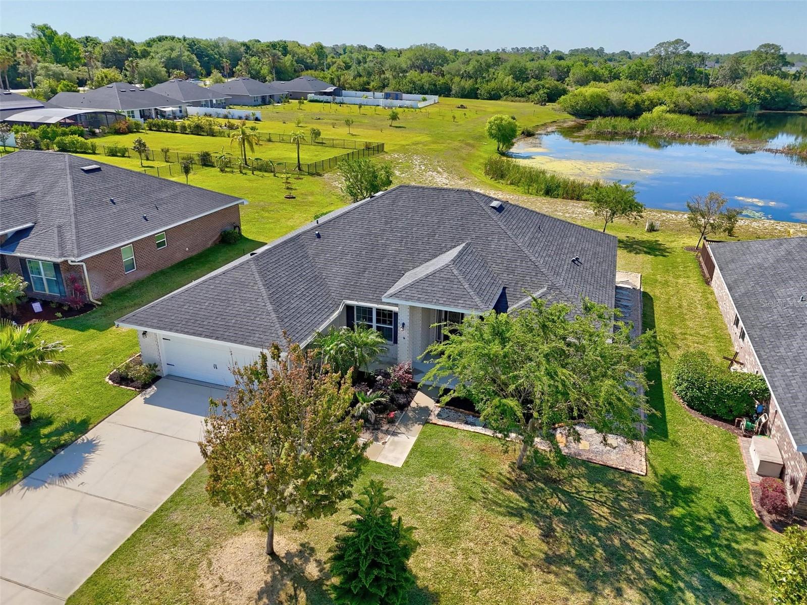 Welcome to this beautifully updated 4-bedroom home in the sought-after Eagle Lakes subdivision in Flagler Beach! Just a short drive to the beach, this home is perfectly situated on a tranquil pond, offering remarkable water views and peaceful Florida living. Enjoy a charming front elevation with fresh landscaping, sidewalks throughout the community, and underground utilities for a clean, well-kept neighborhood feel. Inside, you’ll find a spacious split floorplan with vaulted ceilings and beautiful tile flooring in all main living areas. A large flex room offers versatility as a home office, playroom, or additional living space. The open kitchen and family room are filled with natural light and provide stunning views of the serene pond through plentiful windows. The primary suite features his-and-hers closets, dual vanities, and a newly remodeled bathroom with floor-to-ceiling tile and a frameless glass shower. The guest bath is also updated with a double-sink vanity, tiled shower, and convenient access to the covered/screened lanai—perfect for entertaining or relaxing outdoors. Enjoy HUGE energy savings with a whole-home solar panel system—keeping your monthly energy bill under $130! Step outside to your private lanai and take in the natural beauty and wildlife that make this home truly special. Don't miss your chance to own this stunning property in a prime location—schedule your private showing today!