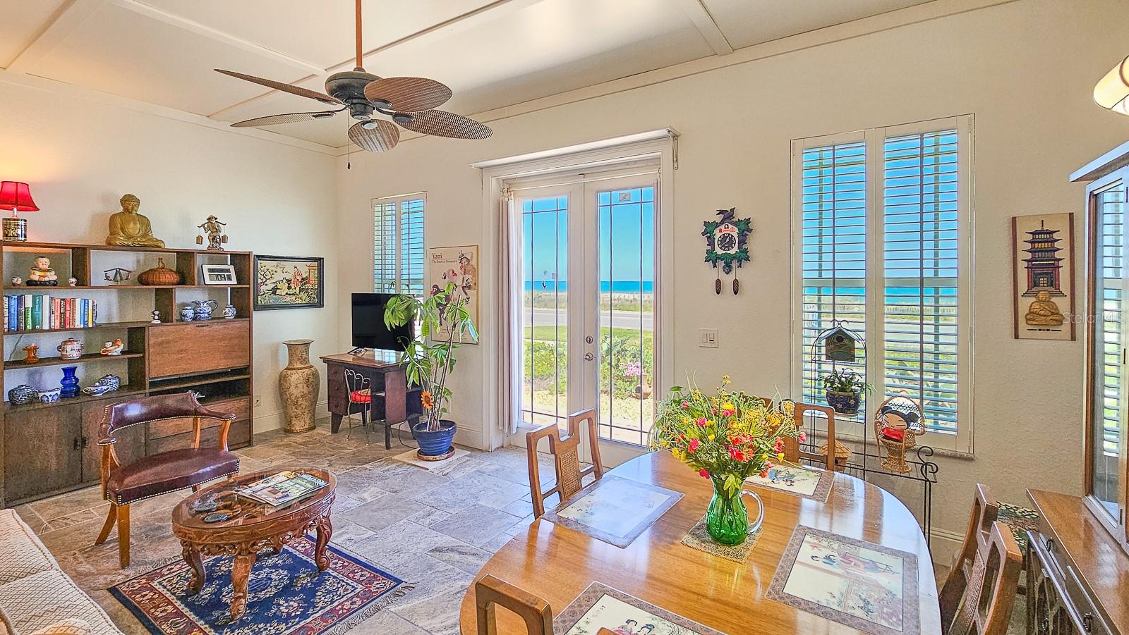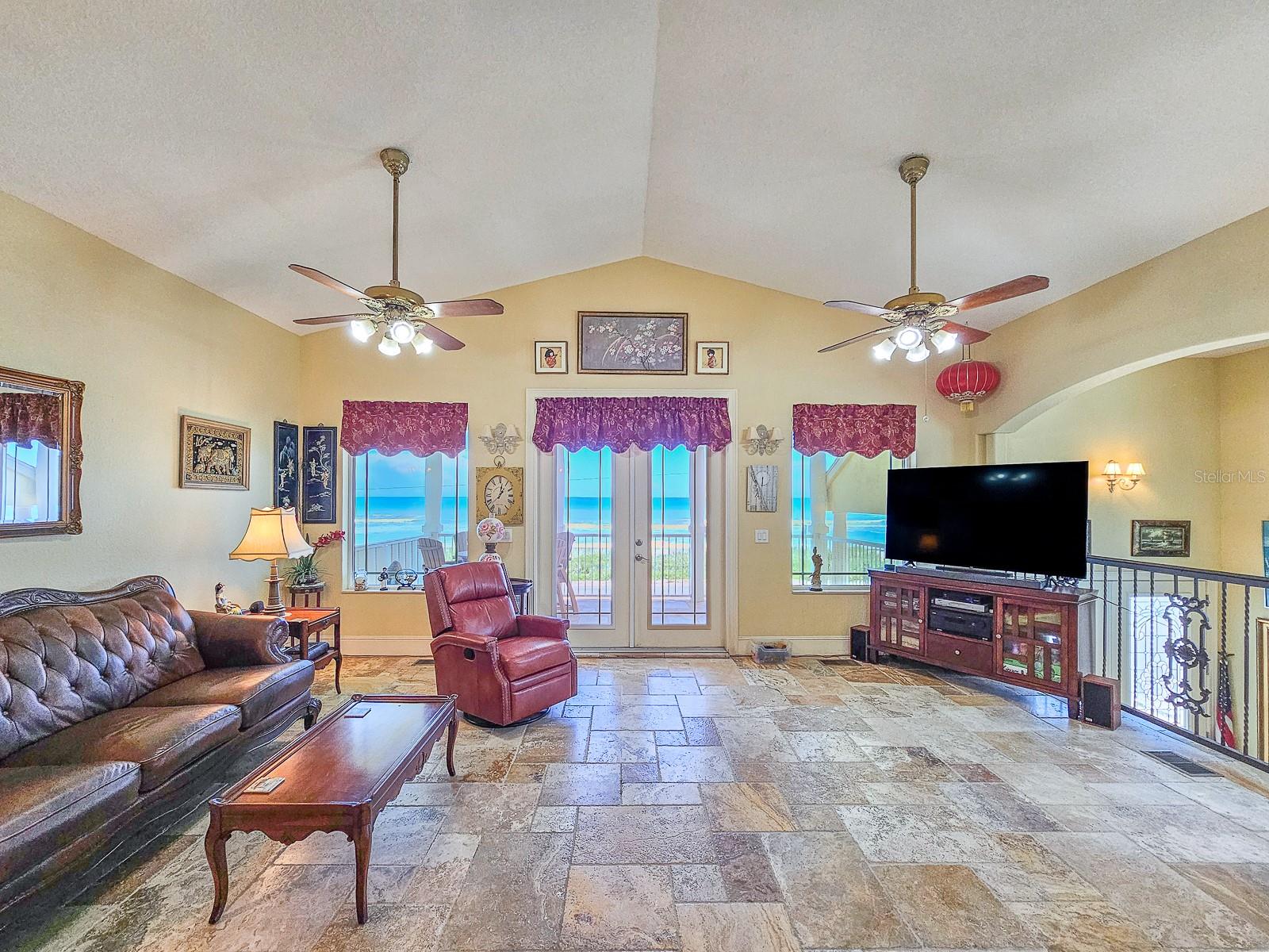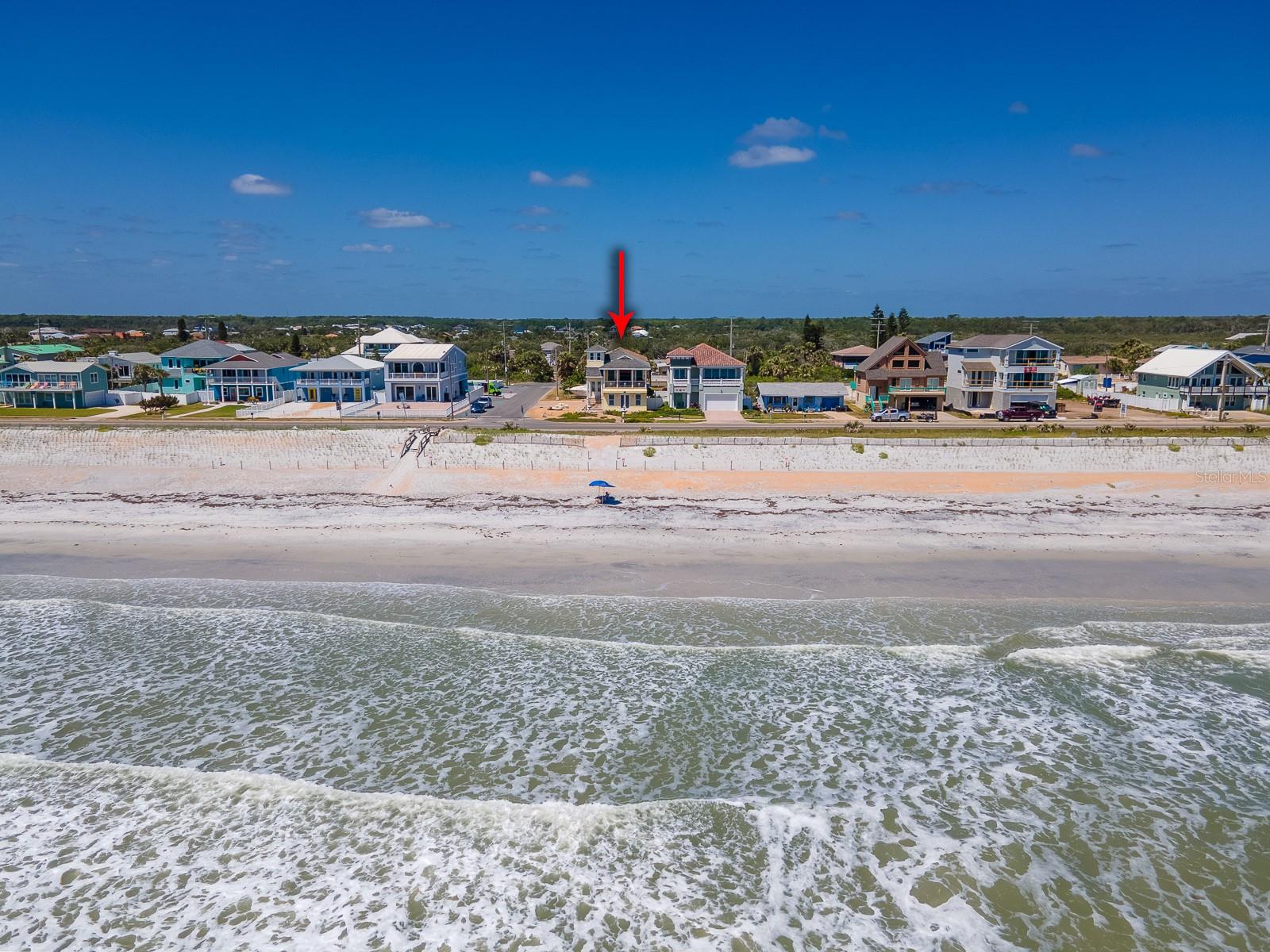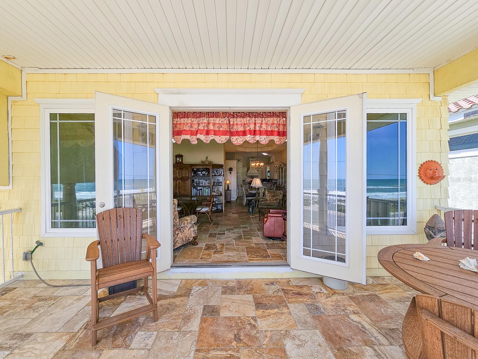OCEANFRONT FLAGLER BEACH HOME with Littoral Rights. and a 1st rate separate guest suite with a 3.5 car garage! Absolutely stunning views with beach access virtually steps away. This well-built 2014 home sits proudly on a rare corner lot. Florida native landscaping beds nestled in pebble stone and a paved cobblestone drive and walk-ways make yard maintenance a breeze. Enter through the lovely leaded glass French doors to the second floor, main living space of this home. You can also access your home from a side door or from inside the garage. Natural light floods into the open floorplan with high ceilings and beautiful travertine flooring. Step out onto the covered balcony for panoramic views of the ocean and the soothing sound of the waves and whale watching. The kitchen and baths showcase deluxe, soft-close hardwood cabinetry and granite countertops. While entertaining and preparing lovely meals you will see that ocean views are abundant. Moonrises on the ocean are something to behold. The primary bedroom is enhanced by an en-suite bath with a large linen closet. Laundry hook-ups are conveniently located in a separate primary bedroom closet that will accommodate a full-size stackable washer and dryer. The second bedroom on the main living space is charmingly accessed by a spiral staircase and affords bird’s eye views of the beach. The spacious 854 square foot suite on the ground level will accommodate additional family, visitors and guests. The beautiful suite has its own kitchen, dining and living space, with a private entrance, one bedroom and a full bath, also features glass French doors opening to a patio just steps from the beach. This suite has great ocean views as well. A 2-door, 3.5 car side entrance garage with Raynor doors and a half bath completes this magnificent home. Premium 50-year shingle roofing, premium 50-year vinyl siding, radiant heat barrier system, a new Carrier HVAC system and PGT hurricane impact windows and door glass provide security and comfort. Perfectly situated to take advantage of all that Flagler Beach has to offer, the location has easy access to local restaurants, boutique shops, and the Flagler Beach Pier. For outdoor enthusiasts, there are scenic biking and walking trails, world-class fishing, boating, and kayaking opportunities nearby. Flagler Beach is located just 3 miles east of I-95, between St. Augustine and Daytona Beach, offering endless dining, entertainment, and cultural experiences. Schedule your private tour today and start living the coastal dream in this prime location!