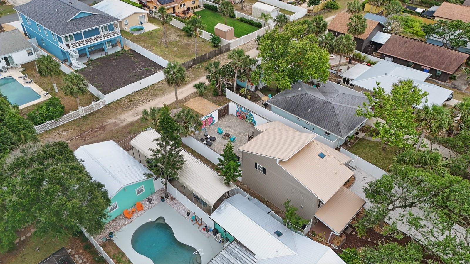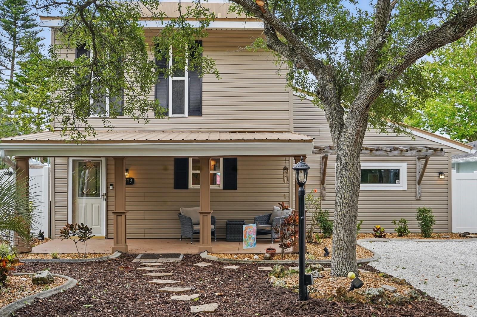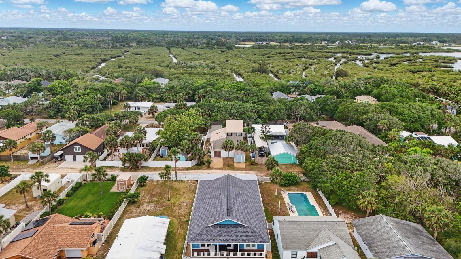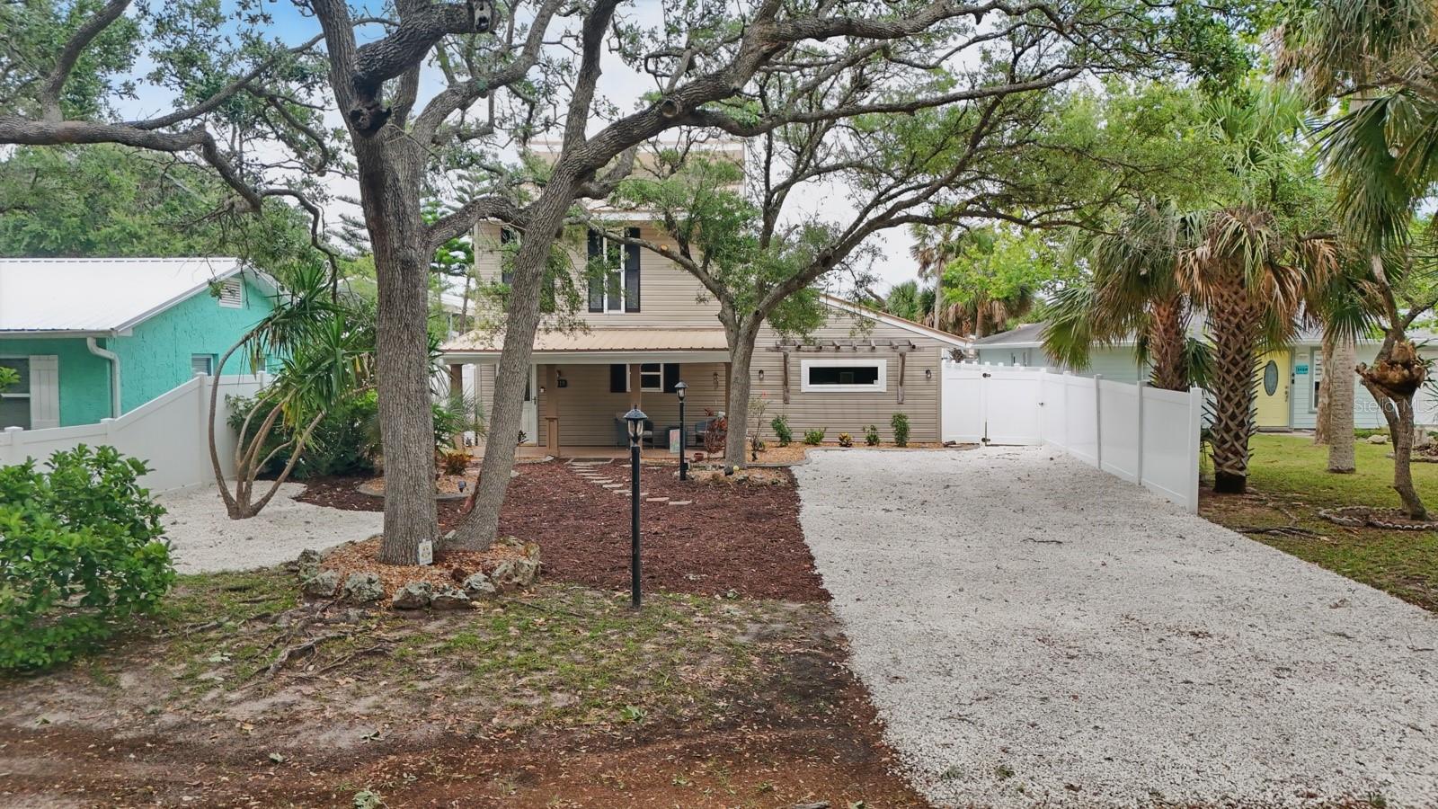Coastal Retreat Just 3 Blocks from the Beach – Fully Renovated & Move-In Ready! Located in desirable X Zone and tucked down a private drive, this beautifully updated 3-bedroom, 2-bath home offers modern upgrades and timeless charm just minutes from the shoreline. Recent improvements include fresh interior and exterior paint, updated landscaping, new patio pavers (2022), and custom mural work by a local Flagler artist. Enjoy peace of mind with a new AC (2021), hot water heater (2022), newer windows, LED recessed lighting, and a termite/pest control plan in place. Additional highlights: Custom barn doors for added storage Enclosed outdoor shower Alarm system & Ring doorbell Tile in bedrooms (2025), guest bath fully updated (2025) Tongue & groove ceiling + skylight in third bedroom Master suite features new fan, outlets, built-in closet, skylight, and new vanity All stainless steel Samsung appliances Carlton-built shed (2019) Potential for carport (front or back) Lot large enough for a pool or freestanding jacuzzi Furniture negotiable Inside, a chef’s kitchen (2018) with granite countertops, center island cooktop, and bar seating flows into a light-filled great room with soaring ceilings and sliding glass doors. The fully enclosed patio is ideal for entertaining or relaxing in privacy, and mature trees create a serene, coastal vibe throughout.