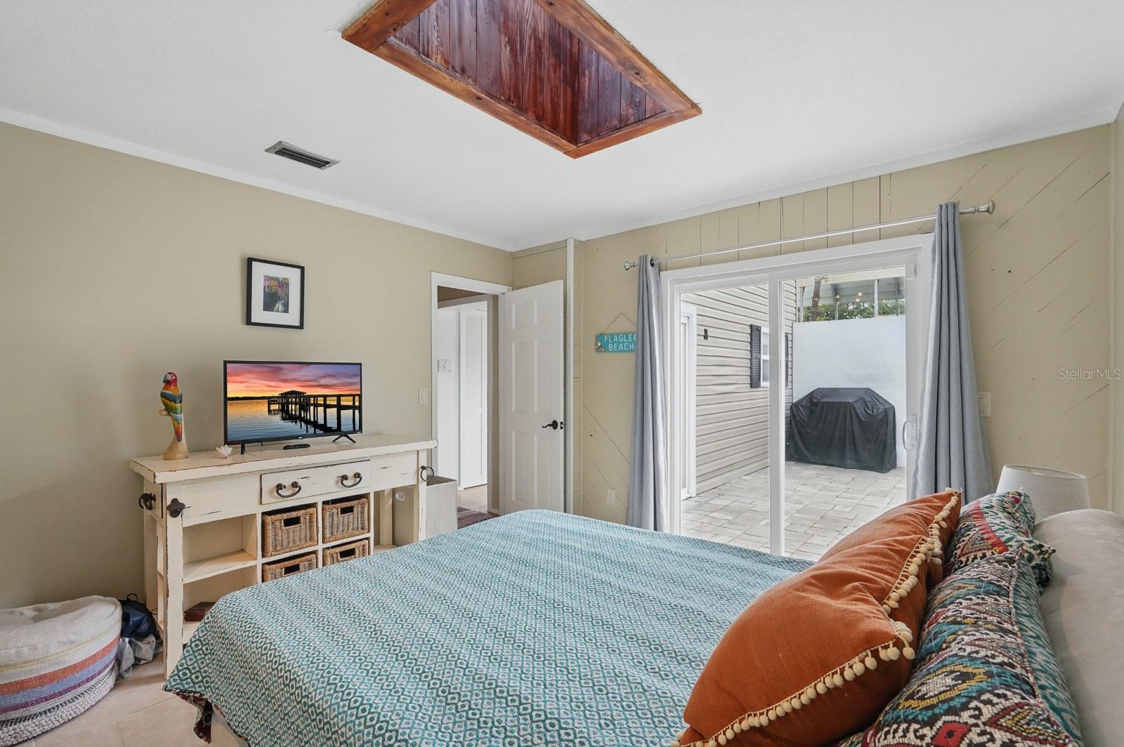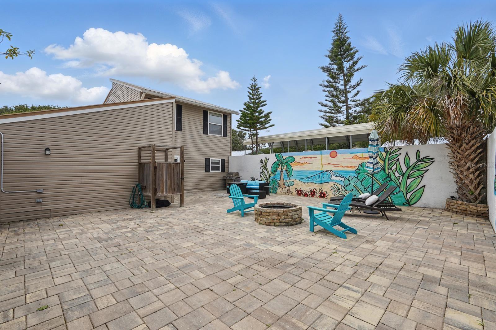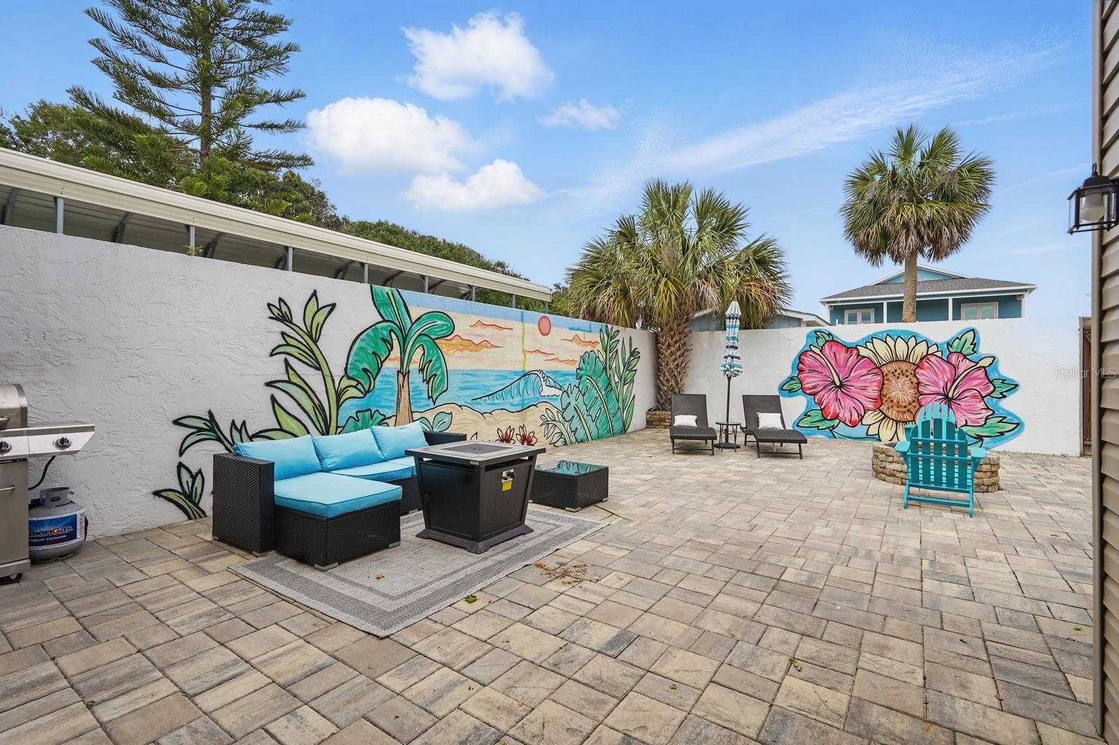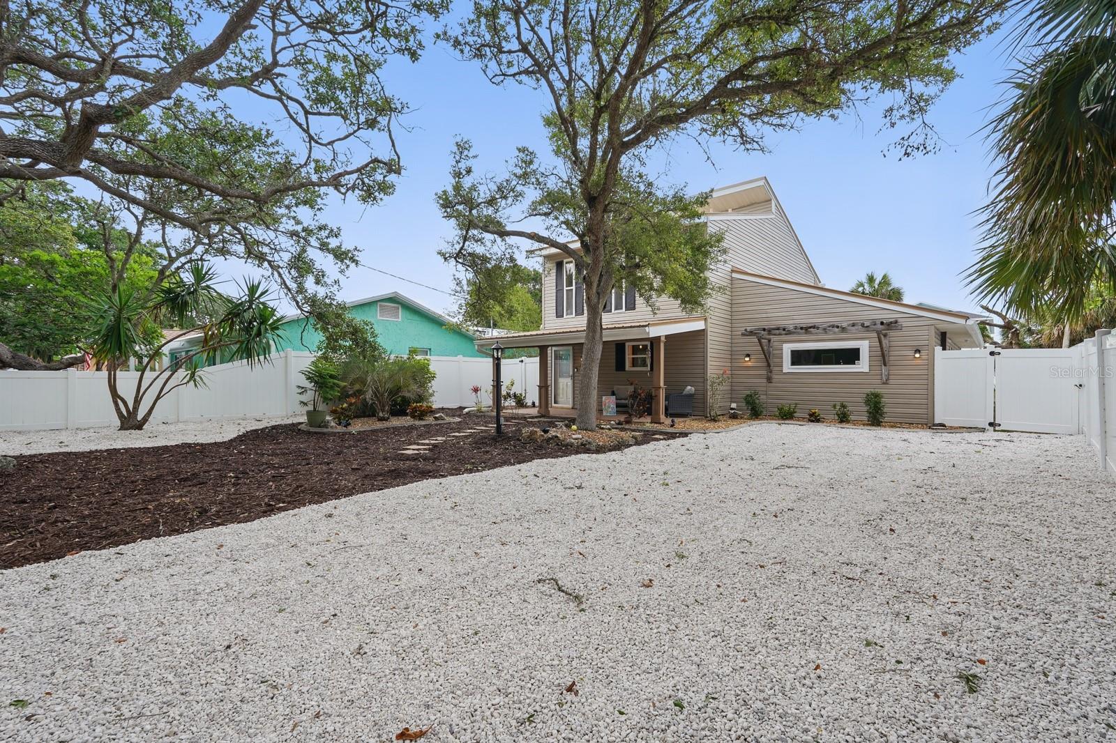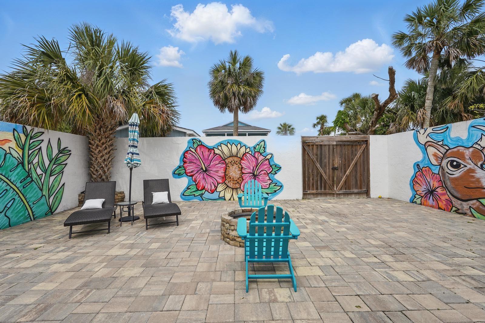 Coastal Retreat Just 3 Blocks from the Beach – Fully Renovated & Move-In Ready! Located in desirable X Zone and tucked down a private drive, this beautifully updated 3-bedroom, 2-bath home offers modern upgrades and timeless charm just minutes from the shoreline. Recent improvements include fresh interior and exterior paint, updated landscaping, new patio pavers (2022), and custom mural work by a local Flagler artist. Enjoy peace of mind with a new AC (2021), hot water heater (2022), newer windows, LED recessed lighting, and a termite/pest control plan in place. Additional highlights: Custom barn doors for added storage Enclosed outdoor shower Alarm system & Ring doorbell Tile in bedrooms (2025), guest bath fully updated (2025) Tongue & groove ceiling + skylight in third bedroom Master suite features new fan, outlets, built-in closet, skylight, and new vanity All stainless steel Samsung appliances Carlton-built shed (2019) Potential for carport (front or back) Lot large enough for a pool or freestanding jacuzzi Furniture negotiable Inside, a chef’s kitchen (2018) with granite countertops, center island cooktop, and bar seating flows into a light-filled great room with soaring ceilings and sliding glass doors. The fully enclosed patio is ideal for entertaining or relaxing in privacy, and mature trees create a serene, coastal vibe throughout.