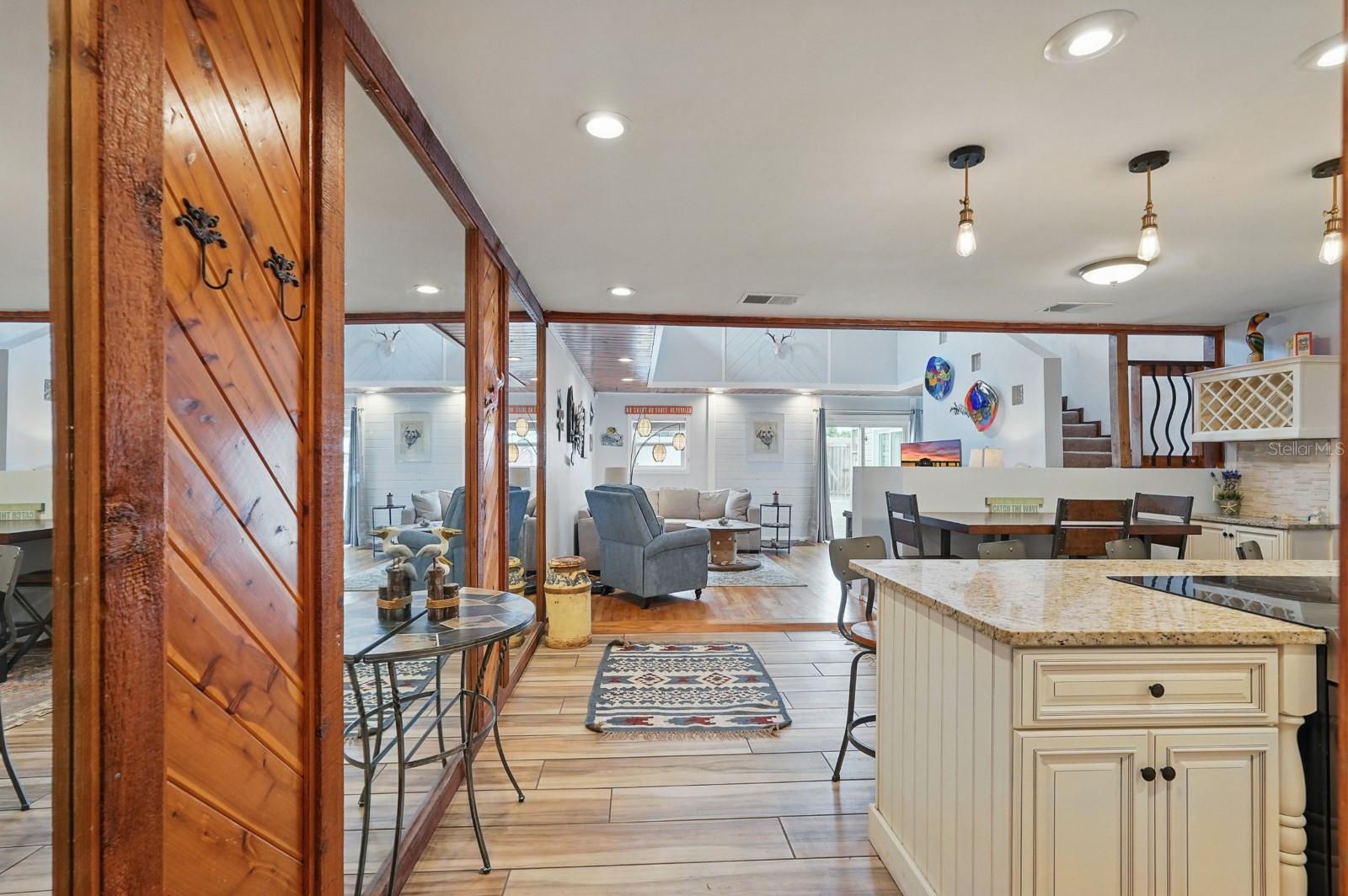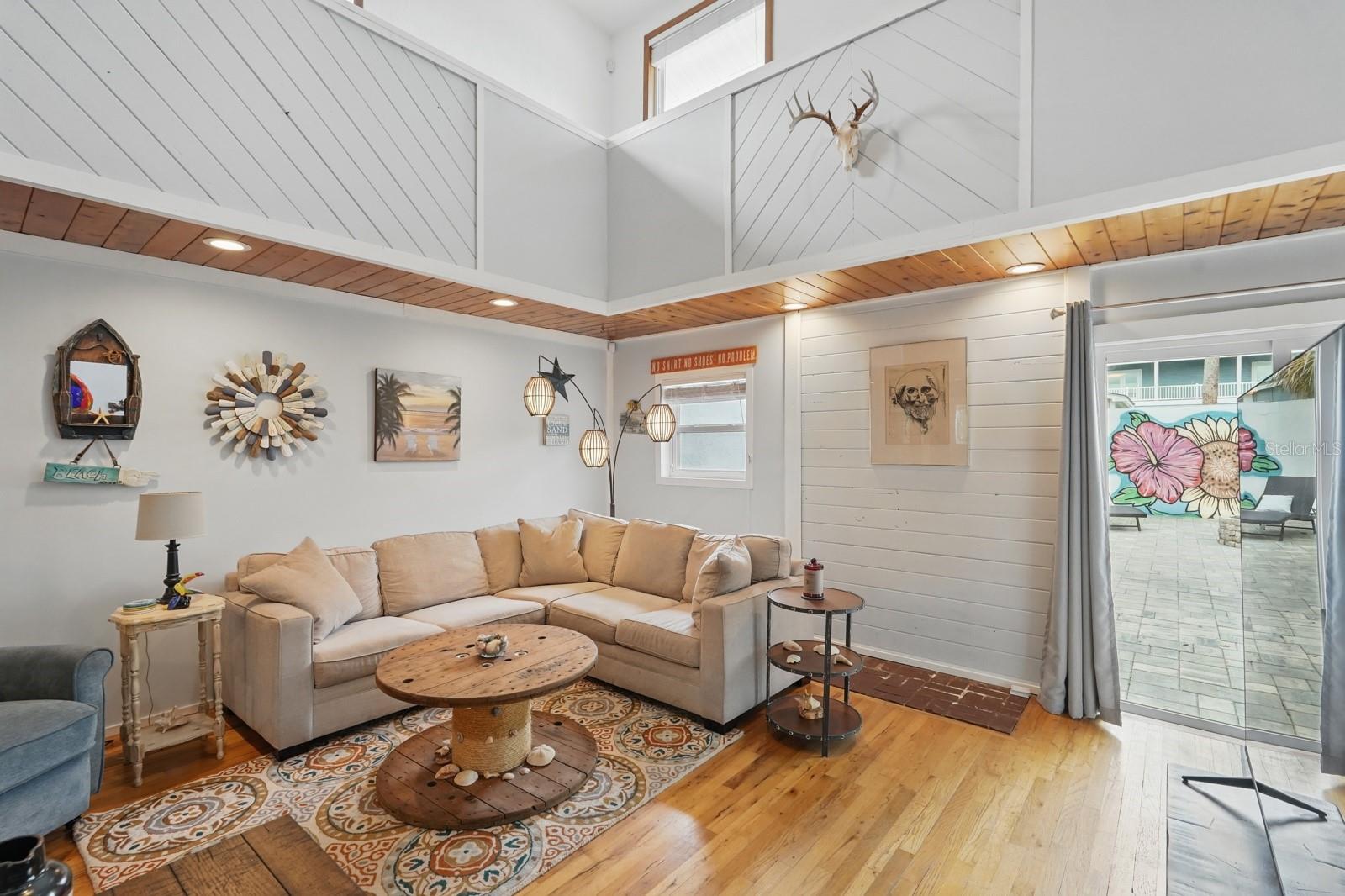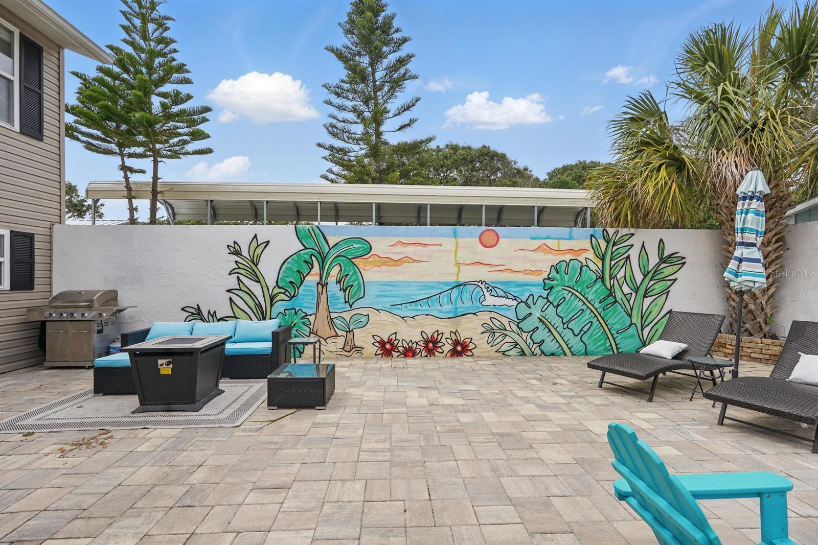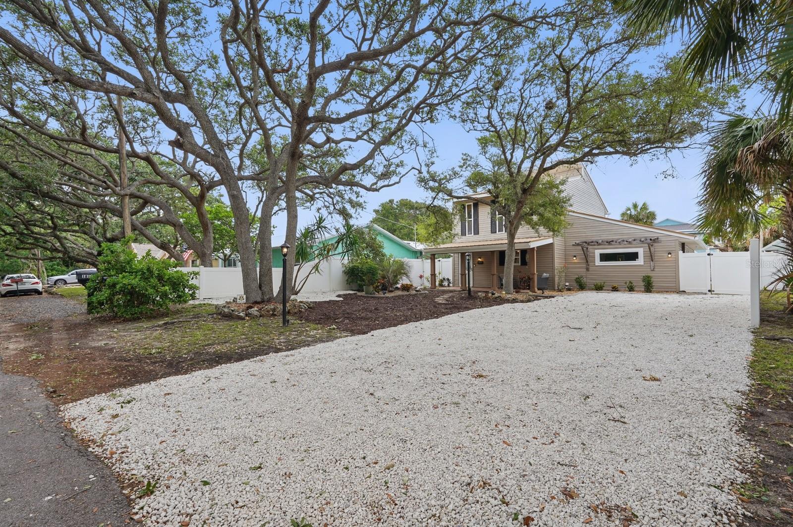 Coastal Retreat Just 3 Blocks from the Beach – Fully Renovated & Move-In Ready! Located in desirable X Zone and tucked down a private drive, this beautifully updated 3-bedroom, 2-bath home offers modern upgrades and timeless charm just minutes from the shoreline. Recent improvements include fresh interior and exterior paint, updated landscaping, new patio pavers (2022), and custom mural work by a local Flagler artist. Enjoy peace of mind with a new AC (2021), hot water heater (2022), newer windows, LED recessed lighting, and a termite/pest control plan in place. Additional highlights: Custom barn doors for added storage Enclosed outdoor shower Alarm system & Ring doorbell Tile in bedrooms (2025), guest bath fully updated (2025) Tongue & groove ceiling + skylight in third bedroom Master suite features new fan, outlets, built-in closet, skylight, and new vanity All stainless steel Samsung appliances Carlton-built shed (2019) Potential for carport (front or back) Lot large enough for a pool or freestanding jacuzzi Furniture negotiable Inside, a chef’s kitchen (2018) with granite countertops, center island cooktop, and bar seating flows into a light-filled great room with soaring ceilings and sliding glass doors. The fully enclosed patio is ideal for entertaining or relaxing in privacy, and mature trees create a serene, coastal vibe throughout.