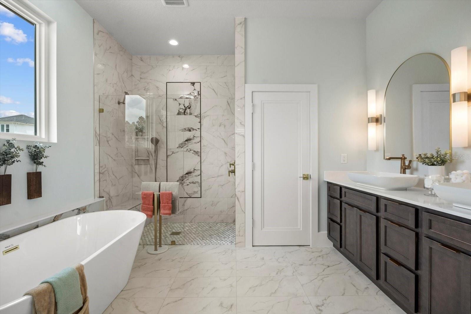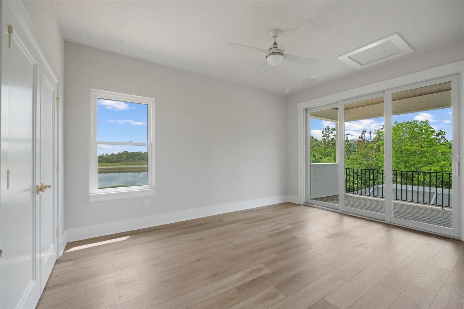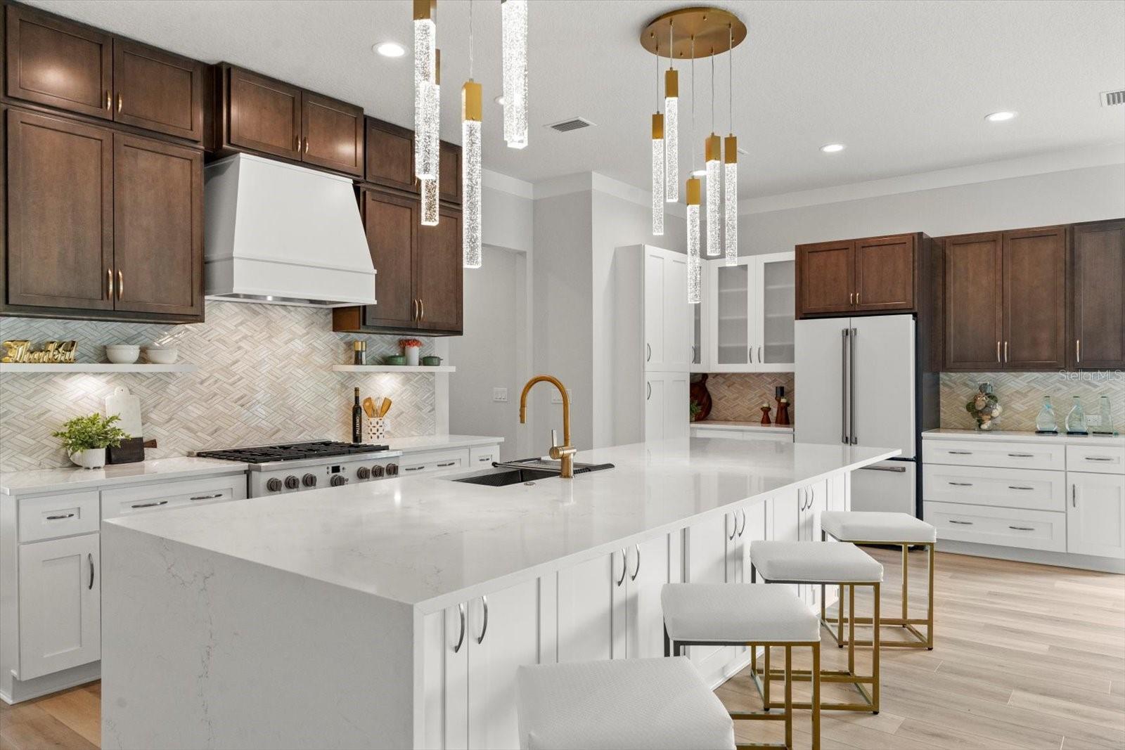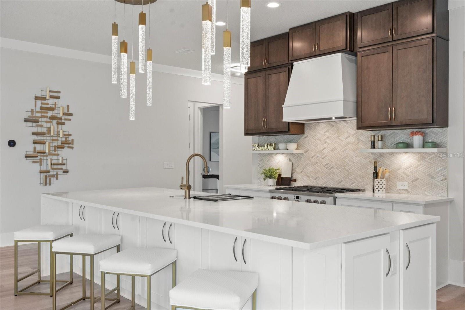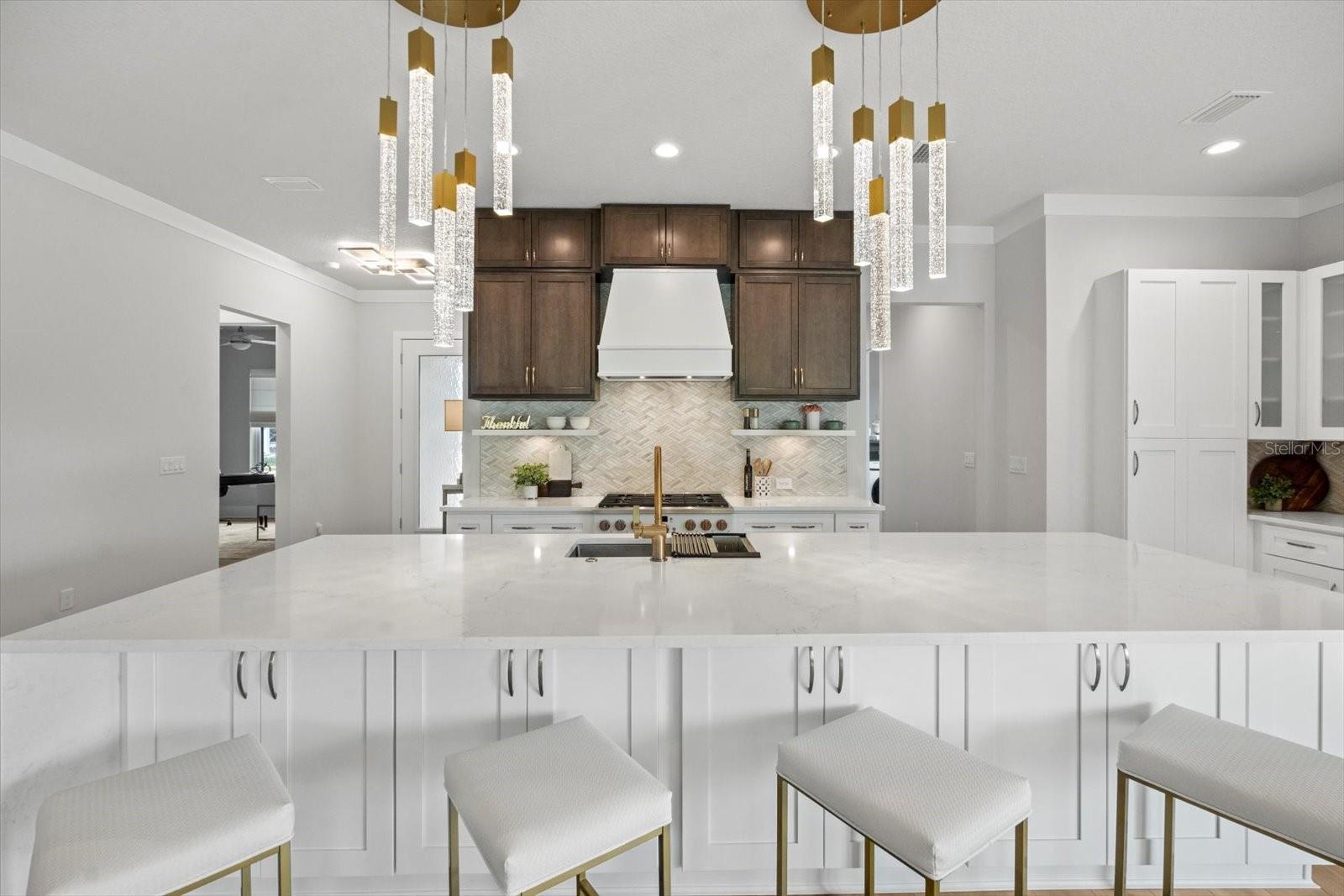 This stunning Hulbert Homes model in Veranda Bay isn’t just beautifully designed—it’s thoughtfully built with purpose and luxury in mind. Every finish, fixture, and layout choice reflects the ease and elegance of coastal living, all set on a spacious 60x130 lot with a heated saltwater pool by Collins Built Pools. On the main level, you’ll find an open-concept kitchen with a hidden pantry, Matte finish and rose gold accent Cafe Appliances, and a gas stove powered by a buried 250-gallon propane tank—perfect for serious cooks. The living and dining areas flow seamlessly beneath 10-foot ceilings with a custom 8-inch stepped ceiling and inlay detail. Sliders lead out to a peaceful outdoor space ideal for entertaining. The primary suite is privately tucked off the main living area and includes dual closets, brushed gold fixtures, and a luxurious en suite with a separate soaking tub and shower. A home office and convenient first-floor laundry (with washer and dryer included) round out the downstairs. Upstairs, enjoy a versatile loft or game room with access to a private balcony, along with two additional bedrooms, a full bath, and a dedicated wine room for that perfect touch of indulgence. You'll also find real wood stairs and landing, LVP and porcelain tile flooring, ventilated wood shelving, and hurricane impact windows and sliders throughout. This home is currently being used as the builder’s model and includes a 12-month leaseback—giving you the opportunity to secure your future home now while the builder continues to maintain it. Veranda Bay is a gated waterfront community where golf carts are part of daily life and the Intracoastal is just steps away. Enjoy access to the community pool now, with a future clubhouse, fitness center, and private marina on the way. Shared docks are available between select homesites, with flexible options for ownership and use. This is more than a home—it’s a lifestyle. Come see it for yourself and start imagining your next chapter in Veranda Bay.
