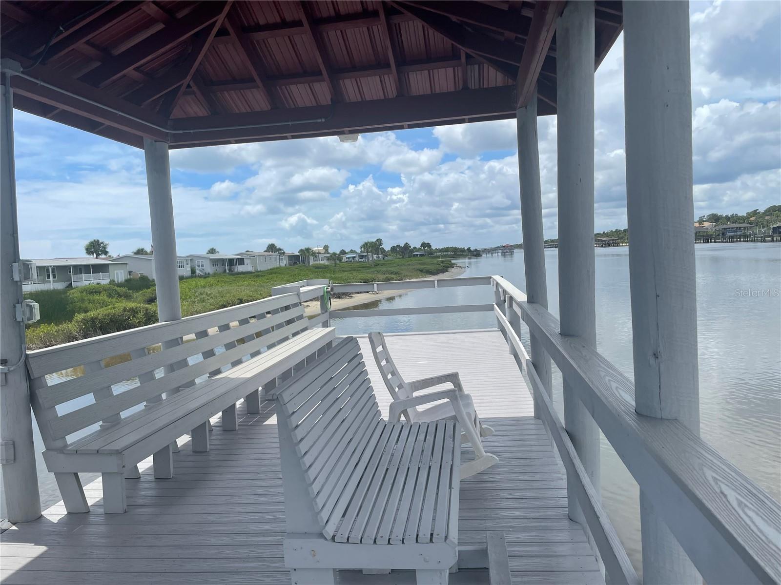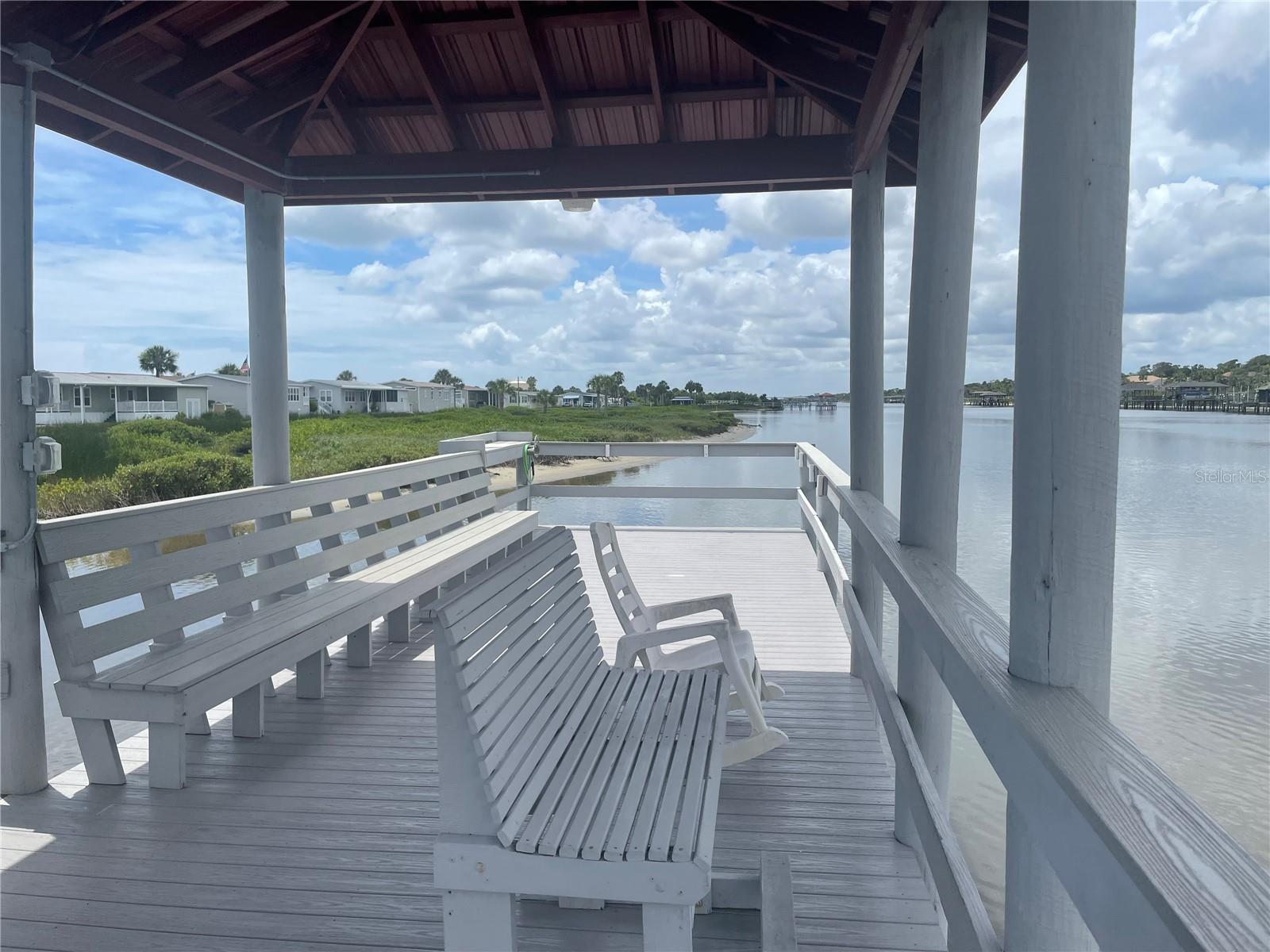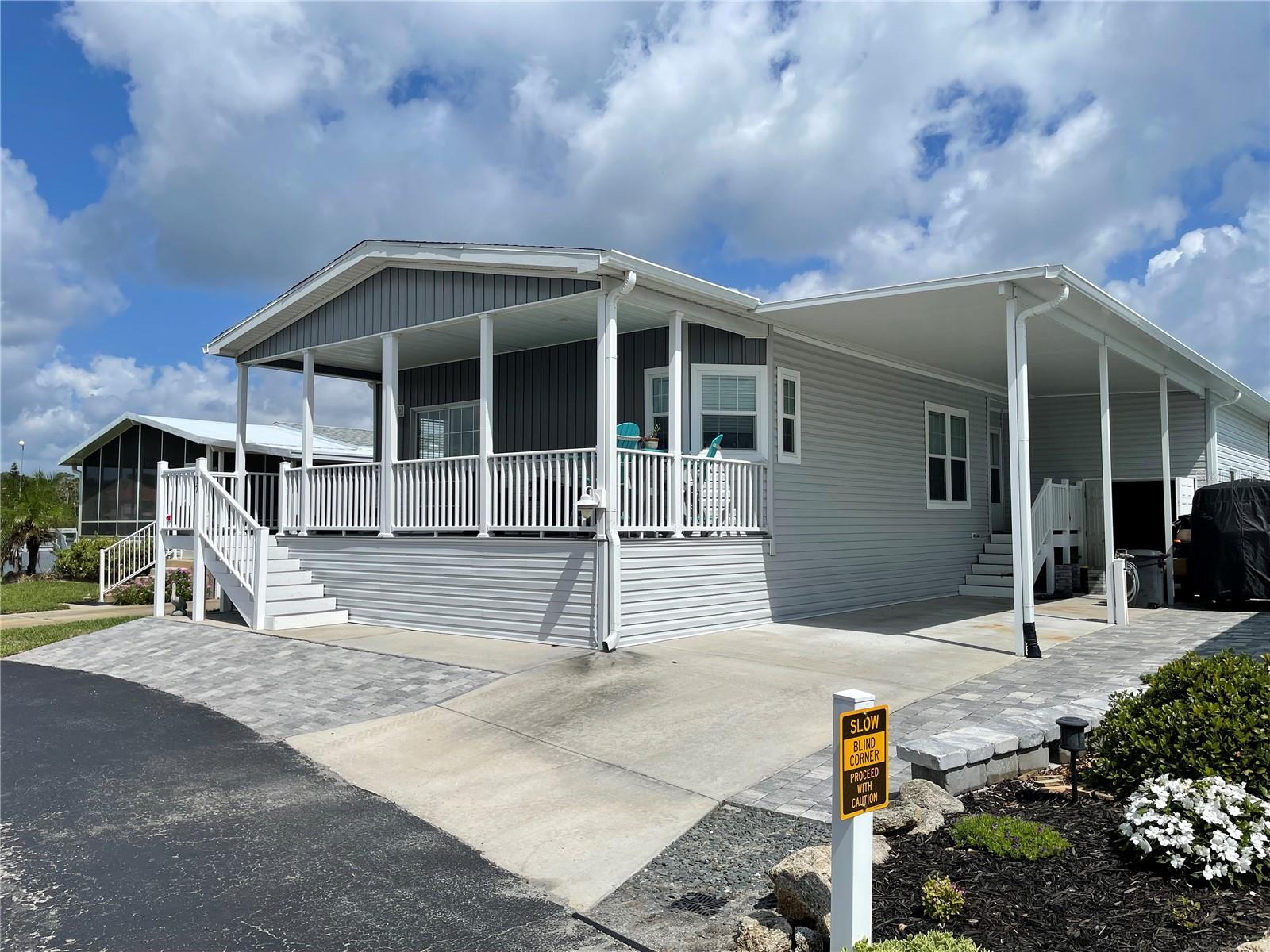 INTRACOASTAL VIEWS from the front balcony and the rear courtyard! HOT TUB! HIGH and DRY!! Beautiful 2 Bedroom 2 Bath Home High Ceilings Crown Molding Coffee Bar Lovely Porches! Laundry in Home! GIANT STORAGE AREA! Decorative Pavers ALL AROUND! This well sought after 55 plus community has sooooo much to Enjoy! There is a gorgeous pool that has wheelchair access and is heated in the winter and cooled in the summer! In the Clubhouse, there are Billiards and Bingo, a Library, Fitness Room, Large Screen TV’s, Commercial Grade Kitchen, Dance Floor, an Elevator to the top deck! River’s edge find the two fishing piers, gazebo, and grills large enough to accommodate the Annual Picnic! There is kayak storage and doggie bins! Egrets, Great Blue Heron, Pelicans and more add to the serene setting! There is Public Beach Access directly behind the Beverly Beach Town Hall located right across Oceanshore Blvd. MUST SEA!